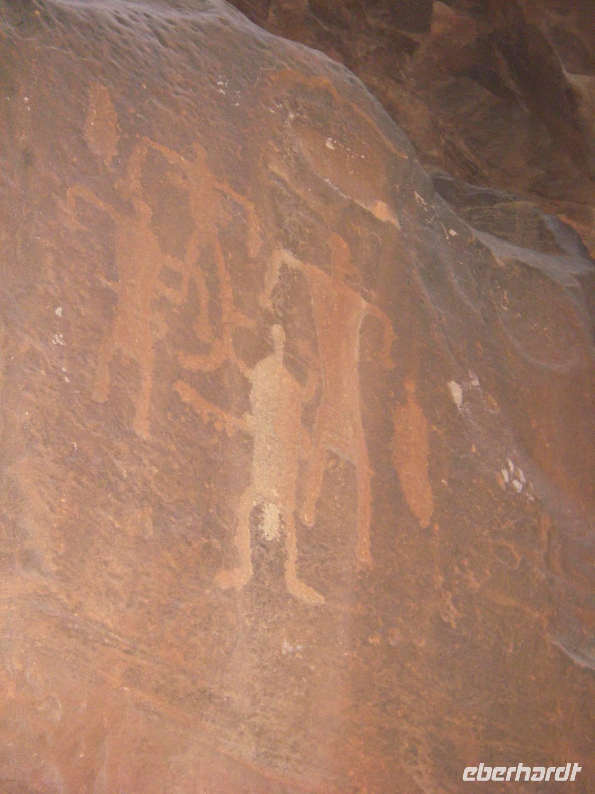 Nachdem wir wieder unsere Koffer gepackt haben, brechen wir auf in Richtung Süden zu einer weiteren einzigartigen Landschaft auf unserer Reise durch Jordanien - dem Wadi Rum. Dieses legendäre breite Flussbett mit seinen eindrucksvollen Sandsteinbergen, die sich aus hellem, rosafarbenem oder auch rotbraunen Sand auftürmen, ist von seltener Schönheit und erscheint uns wie aus einem Bilderbuch. Angekommen im Besucherzentrum steigen wir von unserem Bus auf Jeeps um, welche sich als Pick-ups mit Sitzbänken auf der Ladefläche entpuppen. Nachdem alle den Aufstieg auf die Fahrzeuge gemeistert haben, beginnen wir unsere Tour durch das Wadi Rum an den „Sieben Säulen der Weisheit". Zunächst fahren wir auf einer befestigten Straße bis in das Beduinendorf Rum, wo wir schließlich die Wüste erreichen, die vor ca. 30 Mio. Jahren entstanden ist. Unseren ersten Stopp legen wir an der Lawrence-Quelle ein. Hier gibt es über 2600 Jahre alte Inschriften zu bestaunen, welche höchstwahrscheinlich von Karawanenbegleitern erstellt wurden. Weiter geht es mit den Jeeps durch die eindrucksvolle Landschaft bis zu der Felsformation „Chazali", welche wie herunterlaufender Zuckerguss von einer Torte aussieht. In einem Beduinencamp lädt uns Mahmoud zu einem köstlichen Tee mit Salbei und Kardamon ein. Anschließend spazieren wir durch den feinen roten Sand zu einem Siq, wo Jahrtausende alte Felszeichnungen, wie Tiere, Menschenfiguren oder Fußabdrücke, zu entdecken sind. Von hier fahren einige mit dem Jeep bis zu einer roten Düne, andere lassen es sich nicht nehmen und legen den Weg zu Fuß zurück. Wie schön diese Landschaft doch ist. Nachdem wir mit den Jeeps wieder das Dorf Rum erreicht haben, setzen wir unsere Fahrt nach Aqaba, der Stadt am Roten Meer, fort. In einem nettem Fischrestaurant essen wir zu Mittag und lassen uns den frischen Fisch (Red Snapper) mit unserem allseits beliebten Zitronensaft mit frischer Minze schmecken. Dann geht es auch schon zu unserem Hotel Marina Plaza, welches sich ca. 15 km südlich von Aqaba befindet. Sofort werden die Badesachen ausgepackt und sich in die Fluten des Roten Meeres gestürzt. Nach dieser erholsamen Erfrischung sehen wir uns alle am Abend zu unserem gemeinsamen Essen wieder.