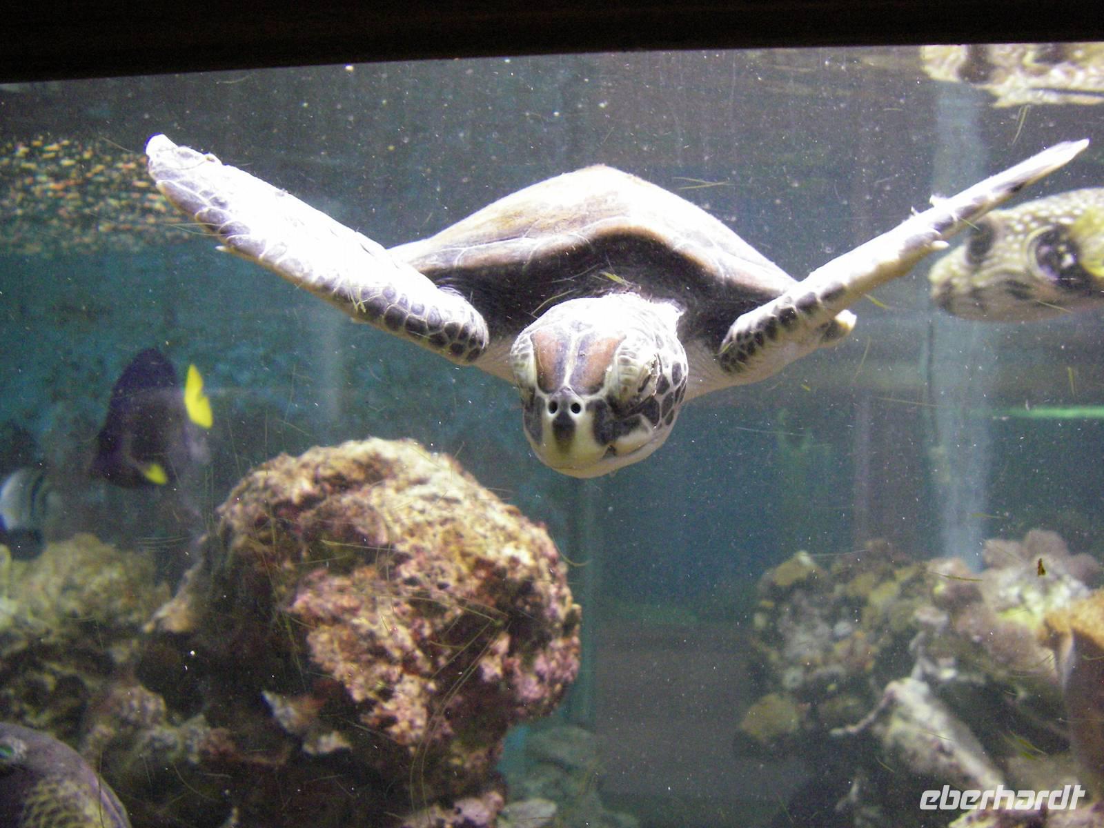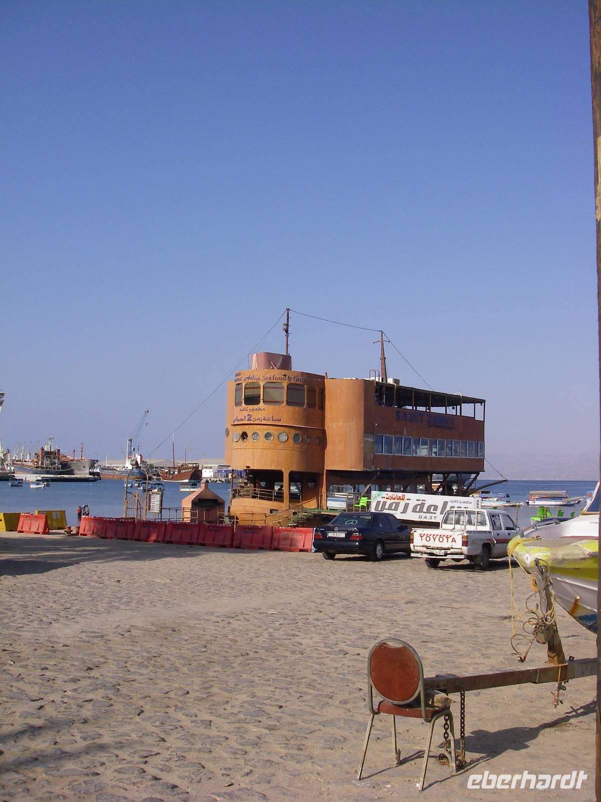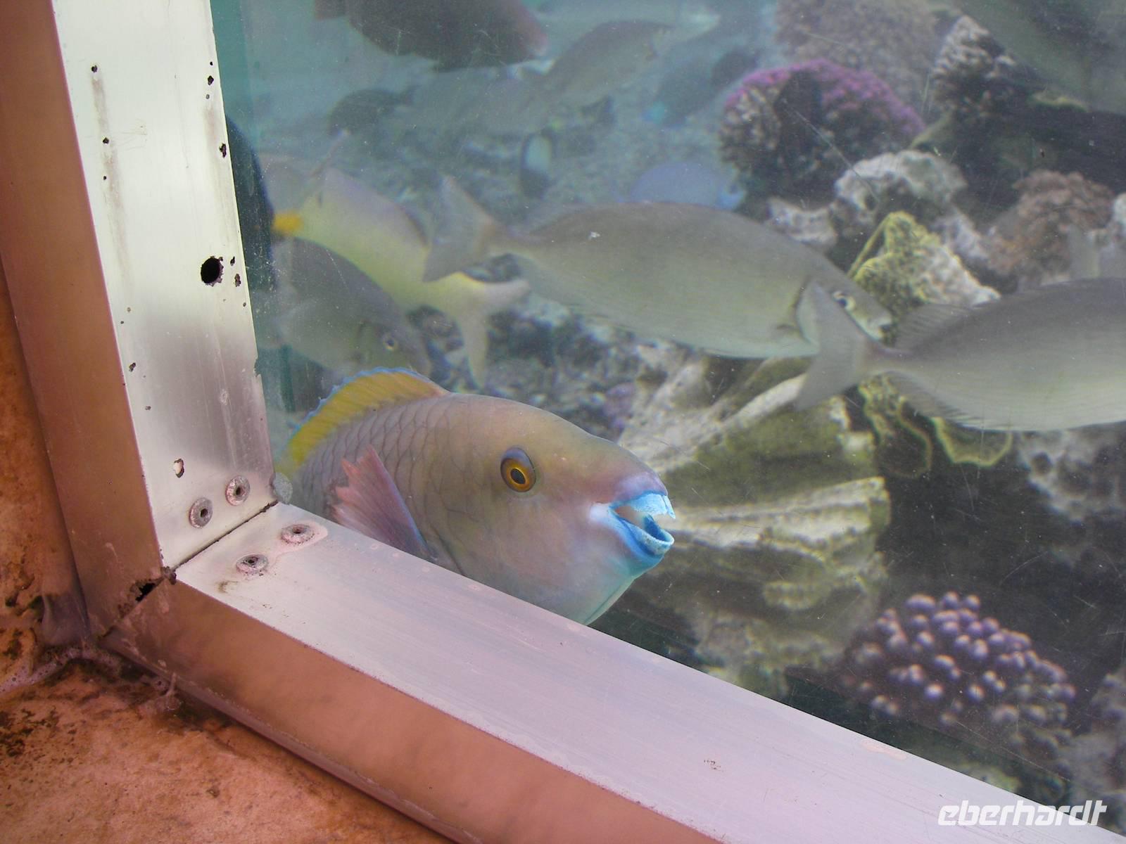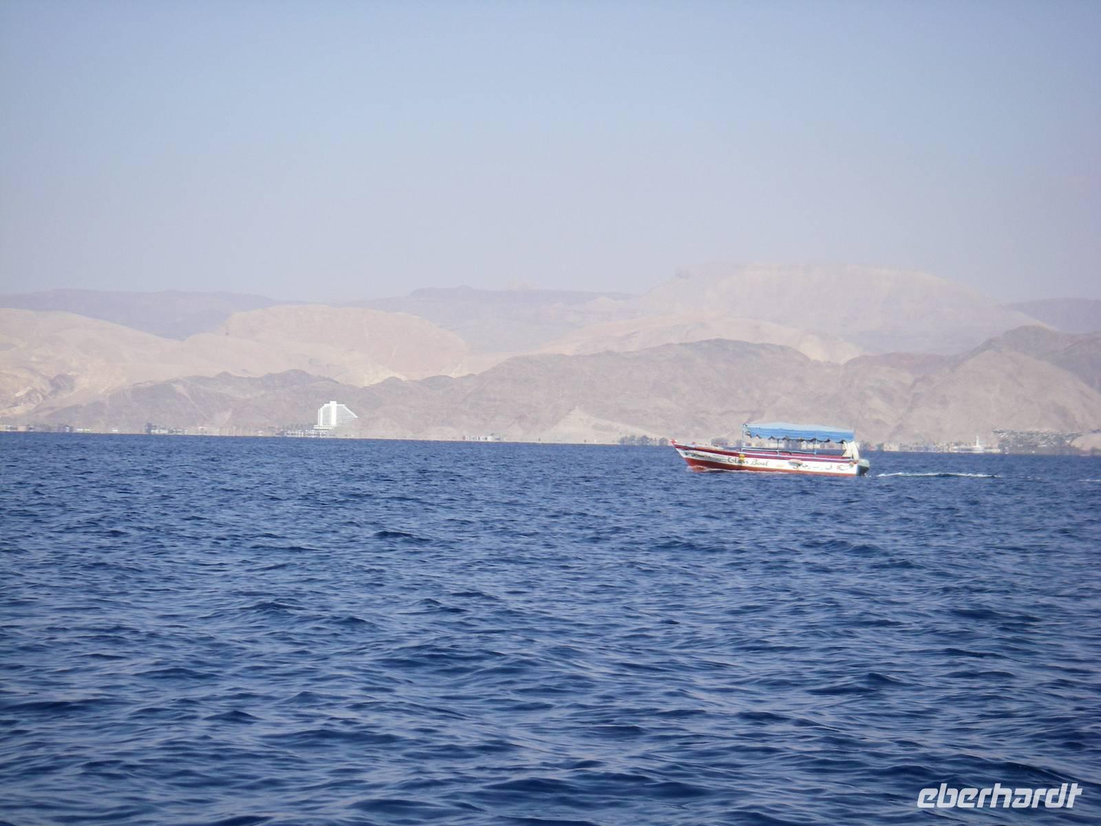 Der heutige Tag steht zur freien Verfügung. Wer jedoch trotzdem etwas unternehmen möchte, für den besteht die Möglichkeit gemeinsam mit Mahmoud und mir die Unterwasserwelt des Roten Meeres zu erkunden. Dafür fahren wir mit einem Bus bis nach Aqaba, wo wir in kleines Glasbodenboot umsteigen. Dieses weist im mittleren Teil ein Fenster auf, durch welches man den Meeresgrund sehen kann. Das Meer ist ruhig und wir legen bei herrlichem Sonnenschein ab. Auf der anderen Seite des Meeres sehen wir in der Ferne auch schon Israel und Ägypten. Nach einiger Fahrzeit wird das Boot allmählich langsamer und farbenfrohe Korallen und Fische sind durch das Fenster im Boot zu erkennen. Um jedoch die große Vielfalt des Roten Meeres kennen zu lernen, besuchen wir ein Aquarium. Wir sind für den Augenblick die einzigen Gäste und werden von einem Guide, welcher uns viele interessante Informationen gibt, durch das kleine aber sehr schöne Aquarium geführt. Wir sind beeindruckt von dieser vielfältigen Unterwasserwelt mit den zahlreichen bunten Fischen und Schildkröten, welcher wir sogar füttern dürfen. Nachdem wir mit dem Boot wieder in Aqaba angelegt haben, laufen wir noch etwas durch die Stadt. In einem kleinen Gewürzladen kaufen wir frisch gemahlenen Kaffee und lassen unseren heutigen Ausflug anschließend mit einem arabischen Kaffee ausklingen. Wieder im Hotel angekommen, nutzen wir die Zeit uns zu entspannen und schwimmen zu gehen. Nachdem Abendessen fahre ich mit einigen Gästen mit dem Shuttlebus nochmals nach Aqaba. Bei einem gemütlichen Bummel durch die Stadt beobachten wir die Moslems beim Beten, besuchen wir eine typische Bäckerei, gehen erneut in den kleinen Gewürzladen und kaufen Souvenirs für die Daheimgebliebenen.