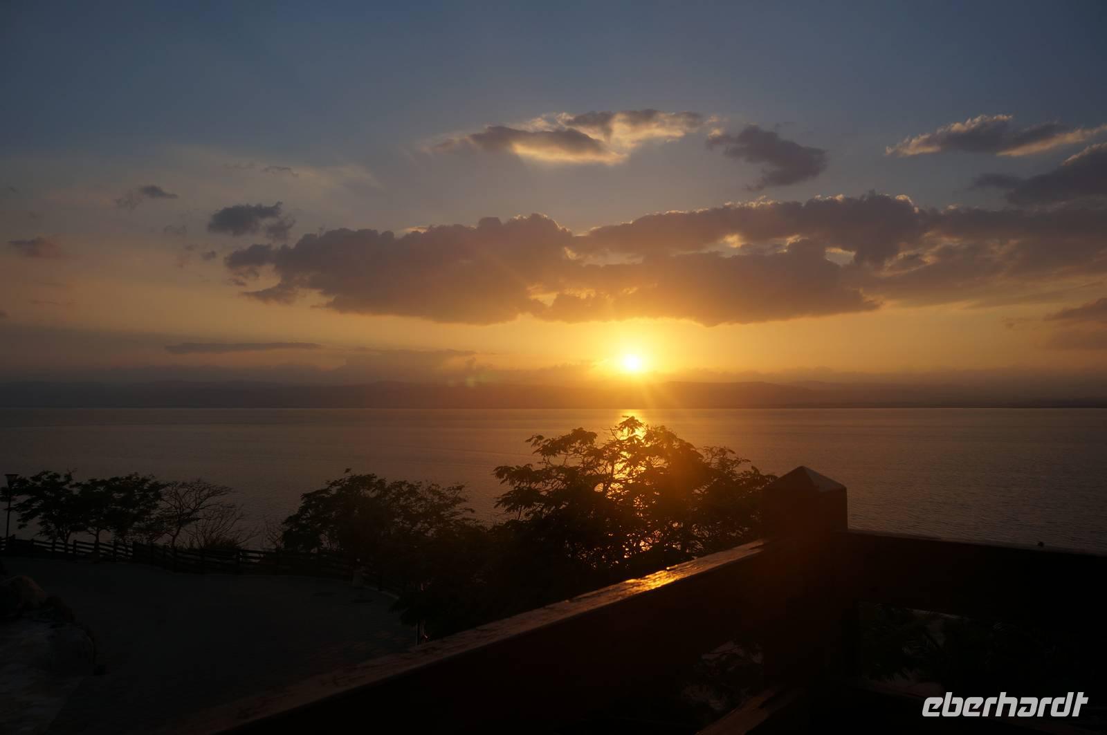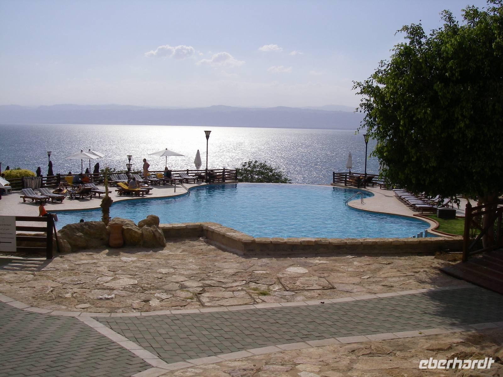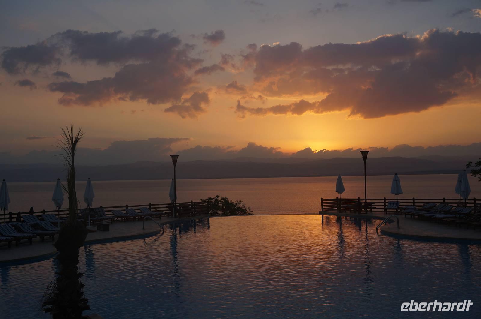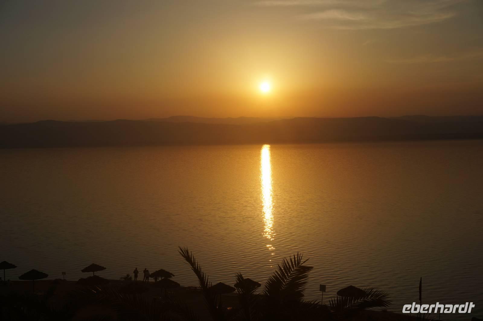 Am Nachmittag erreichen wir unser 5-Sterne-Hotel „Jordan Valley Marriott Resort & Spa", wo wir uns erst einmal von Mahmoud verabschieden und zügig unsere Zimmer beziehen. Das Hotel hat einen direkten Zugang zum Toten Meer, so dass wir uns sofort auf den Weg dorthin machen. Bevor wir uns natürlich in die Wellen stürzen, schmieren wir uns mit dem schwarzen Seeschlamm aus dem Toten Meer, welcher übrigens eine hohe Heilkraft gegen Rheuma und Hauterkrankungen aufweist, ein und gehen anschließend komplett „geteert" ins Meer. Schwebend aufgrund dieses hohen Salzgehaltes genießen wir das einzigartige Erlebnis und kommen anschließend mit Baby weicher Haut aus dem Wasser heraus. Bei unserem gemeinsamen Abendessen tauschen wir unsere Erfahrungen des heutigen Tages aus.