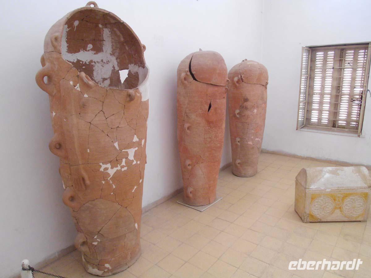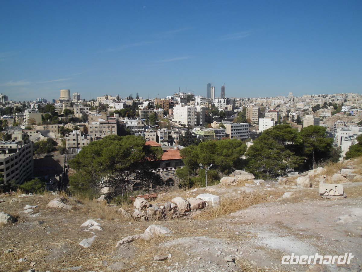 Nach gutem Schlaf werden wir mit einem wohlschmeckenden Frühstücksbüffet verwöhnt. Es mangelt an nichts. Danach fahren zuerst durch die Neustadt Ammans um danach die Zitadelle von Amman zu besuchen. Von dort oben haben wir eine gute Aussicht über die Stadt und das aus griechischer Zeit stammende Theater. Wir bekommen eine Menge zur Geschichte erklärt und besuchen das Archäologische Museum mit verschiedenen Funden aus Jordanien. So erfahren wir, dass die heutige Stadt Amman die erste auf der Welt war, welche den Namen Philadelphia trug. Aber es war auch die Hauptstadt der Ammoniter, deren alter Name Ammon hieß, von dem sich Amman ableitet. Aber auch 6500 Jahre alte menschliche Darstellungen aus Ton sind hier zu bestaunen. Nun geht es nach Westen in die Wüste um die