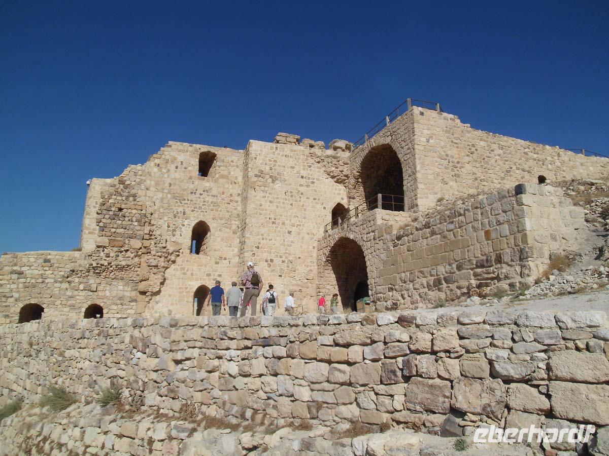 Weiter fahren wir fast zwei Stunden bis Al-Karak. Über der Altstadt befindet sich die teilweise restaurierte Burg der Kreuzritter aus dem 12. Jh. Errichtet wurde sie um den Handels- und Pilgerverkehr zwischen Damaskus und Mekka zu kontrollieren. Die Überfälle des Burgherrn auf die Karawanen und die Entführung einer seiner Schwestern erregten den Zorn Saladins und er ließ die Burg mehrfach belagern. Schließlich fiel die Burg im Jahre 1188 nach 8-monatiger Belagerung und Saladin enthauptete den Burgherrn eigenhändig. Mit einer kurzen Pause unterwegs fuhren wir dann nach Petra weiter, wo wir die nächsten drei Nächte im Hotel Beit Zaman übernachten und zwei Tage Zeit haben uns die Nabatäerstadt Petra anzusehen.