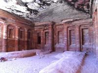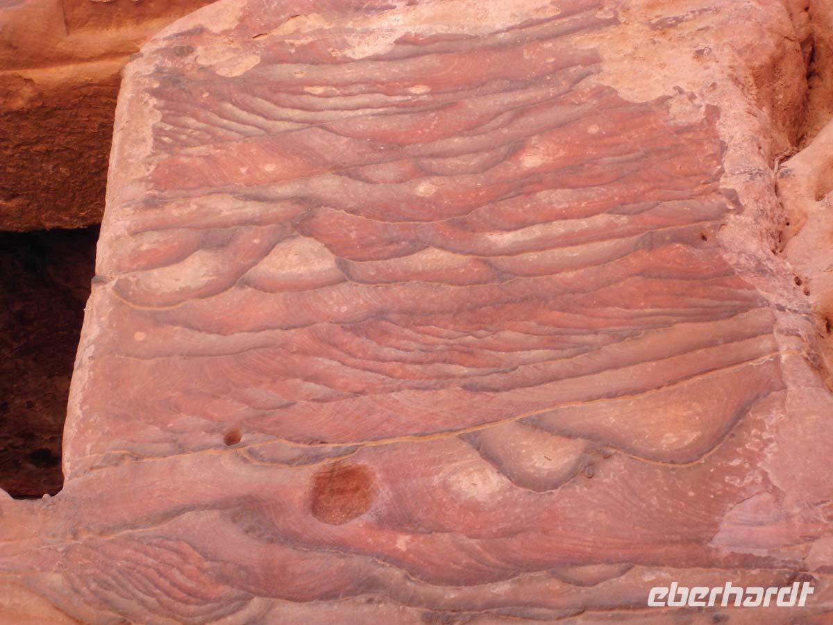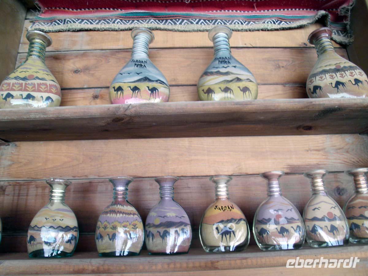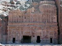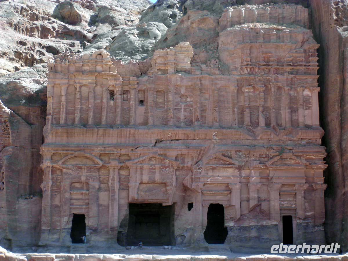 Nach dem reichhaltigen Frühstück begeben wir uns nochmals nach Petra. Der Aufenthalt heute ist zwar individuell, doch nehmen alle dankbar Mahmouds Angebot an, heute auf den Opferplatz über der Stadt zu gehen. Zunächst jedoch geben auf der Post alle ihre Ansichtskarten ab und man kann hier auch noch einmal Geld tauschen. Für Gäste, denen von gestern noch die Knie weh tun, gibt es die Möglichkeit, mit einer Pferdekutsche durch den Siq bis zum Schatzhaus zu fahren. Und auch bis zum Opferplatz, zu dem es 800 Stufen hinauf geht, kann man sich einen Esel mieten. Die Aussicht von hier oben auf die Nekropole und die Wohnstadt ist überwältigend. Erst von hier oben, wo heute ein starker Wind weht, kann man die riesige Ausdehnung der alten Stadt erfassen. Als Rückweg nehmen wir eine andere Strecke, abseits des Haupttouristenpfads. Auch hier kommen wir noch einmal an den prächtigsten Gräbern vorbei und sehen bunte Sandsteinformationen, die wie gemalt aussehen. In der Nekropole begeben wir uns zu einer wohlverdienten Pause wieder in das Cafe, in dem wir auch gestern schon geminzten Tee, oder Fruchtsäfte und den türkischen Kaffee genossen haben. So ausgeruht machen wir uns langsam auf den Rückweg und kommen zu dem Ergebnis, das die heutigen Eindrücke denen von gestern in keiner Weise nachstehen. Beim reichhaltigen Abendmenü in unserem Hotel beschließen wir den zweiten Tag in Wadi Musa, wie die Stadt nahe des antiken Petra heißt.