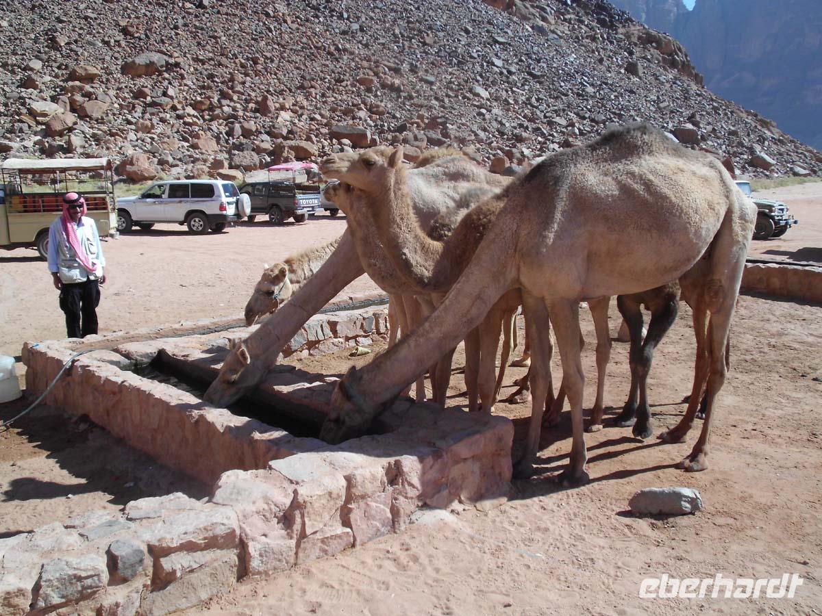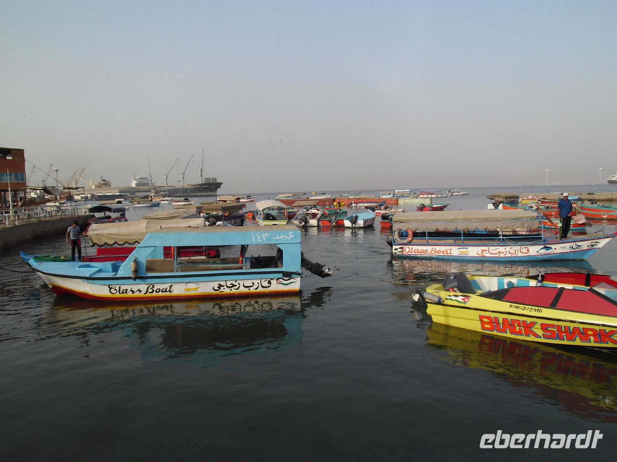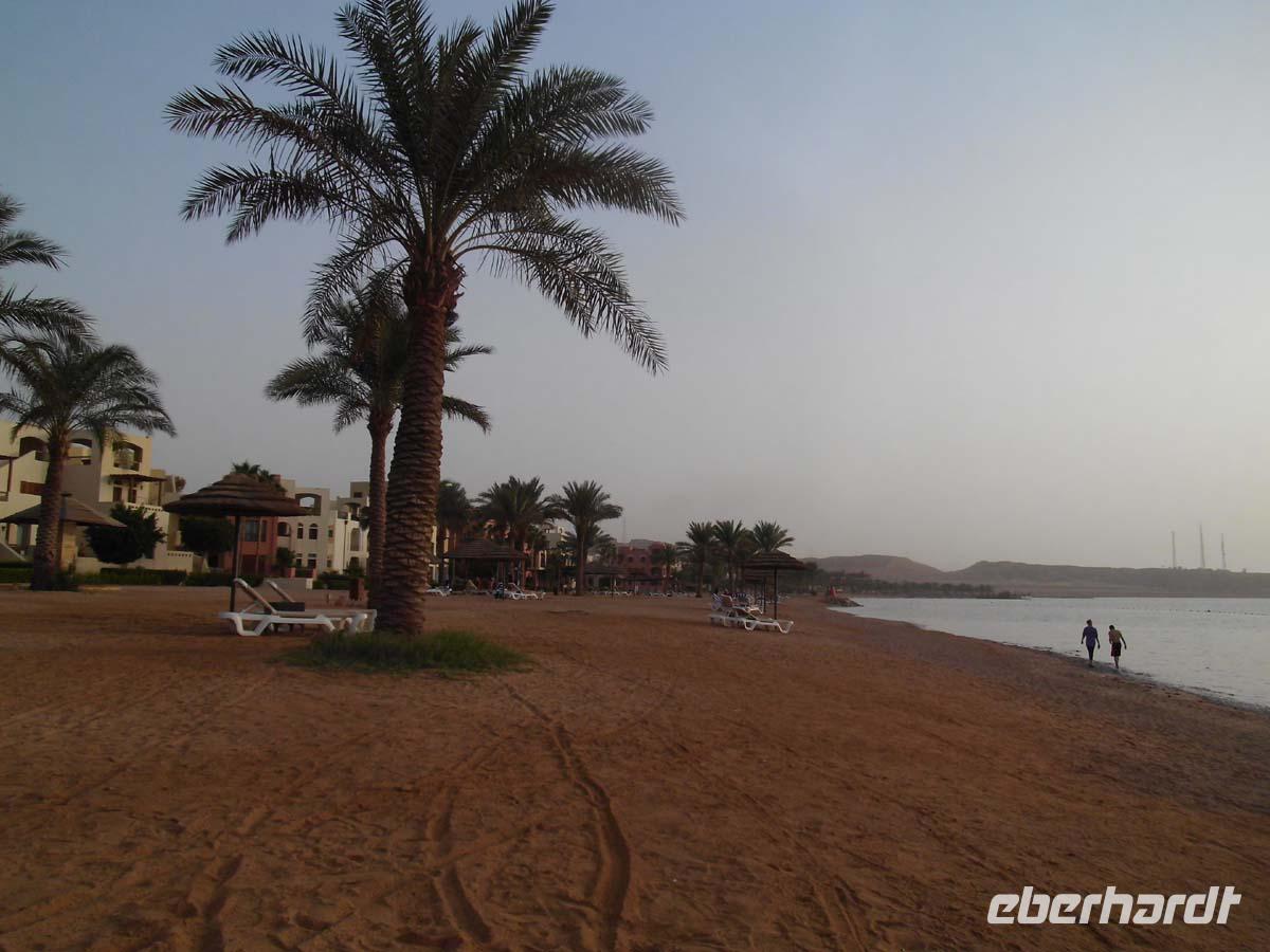 Heute ist individuelle Freizeit. Wer möchte kann es ich den ganzen Tag am Strand gut gehen lassen. Viele von uns sind aber unternehmenslustig und fahren in einem Shuttlebus nach Aqaba hinein. Andere unternehmen einen Ausflug zu den Korallenriffs vor der Küste. Mit einem Glasbodenboot geht es hinaus aufs Meer und schon bald kommen die ersten Korallen in Sicht. Sie leuchten in allen Farben und auch viele knallbunte Fische sind zu sehen. Vor dem städtischen Aquarium landen wir an und bestaunen in den Glasbecken nun die Tiere, welche sich bisher vor uns versteckt hielten. Auf der Rückfahrt mit dem Glasbodenboot erblicken wir sogar noch einen prächtigen Rotfeuerfisch zwischen den Korallen. Wieder an Land spazieren wir noch etwas durch die Stadt mit den quirligen Ladenstraßen. Fisch, Fleisch Gemüse und alles was man sonst so zu Leben braucht, oder auch nicht, wird hier feil geboten. Wir kehren in einen Gewürzladen ein, wo wir zunächst mit einem Glas Tee empfangen werden. Hier lassen wir und die Kräuter und Gewürze erklären und man einer kauft auch eine Kleinigkeit. Den Abschluss unseres Rundgangs bildet ein Besuch in einem Kaffeehaus, wo wir uns noch ein wenig Ruhe gönnen, bevor uns unser Shuttlebus wieder zum Hotel bringt. Bei einem üppigen Abendmenü lassen wir den Tag ausklingen.