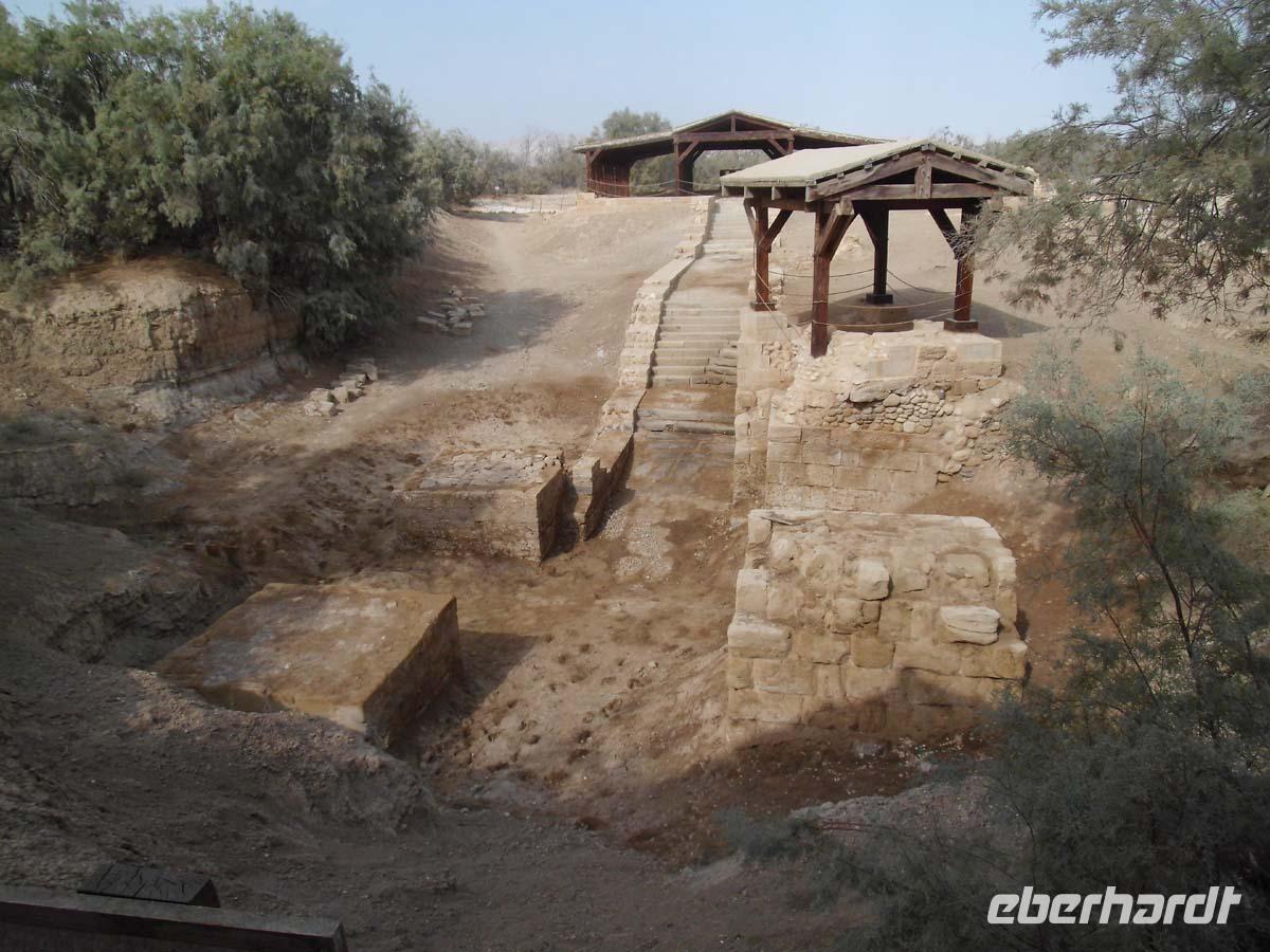 Noch einmal haben wir einen freien Tag. Doch nur den Bauch in die Sonne strecken ist unsre Sache nicht. Es bietet sich ein Besuch der Taufstelle Jesu an. Nur 20 min Fahrt sind es bis dorthin und ich habe gestern schon zwei Minivans mit Chauffeuren organisiert. Seit 1994 wurde dort direkt am Jordan ausgegraben und man hat tatsächlich ein Taufbecken gefunden, das die Wirkungsstätte Johannes des Täufers gewesen sein soll. Auch alte Schriftquellen belegen diese Stelle. Drei Kirchen baute man in den folgenden Jahrhunderten daran, die man heute an den Fundamenten wieder erkennen kann. Seit Papst Johannes Paul II im Jahr 2000 diesen Ort besucht hat, können auch Touristen eine geführte Tour unternehmen. Doch es sind auch überall Soldaten, denn das Gelände liegt im militärischen Sperrgebiet. Noch ein paar Schritte und wir stehen direkt am Jordan, der hier die Grenze zu Israel bildet. Auf der anderen Seite weht die Flagge mit dem Davidstern, aber in Jordanien spricht man ausschließlich von Palästina. Wir sehen viele Christen, die in weißen Gewändern in das Jordanwasser steigen und dreimal untertauchen. Der Ort hat schon etwas Mystisches und sollte eigentlich eine frohe, friedliche Botschaft ausstrahlen. Es ist schon ein Widerspruch, dass dieser Landstrich so unfriedliche Zeiten erlebt. Nach der Rückkehr in unser Hotel genießen wir den freien Nachmittag, das hervorragende Abendessen und erwarten in der Nacht unseren Fahrer Sahib und Mahmoud. Gegen 23.00 Uhr sind wir ausgecheckt und treten unsere Heimreise an.