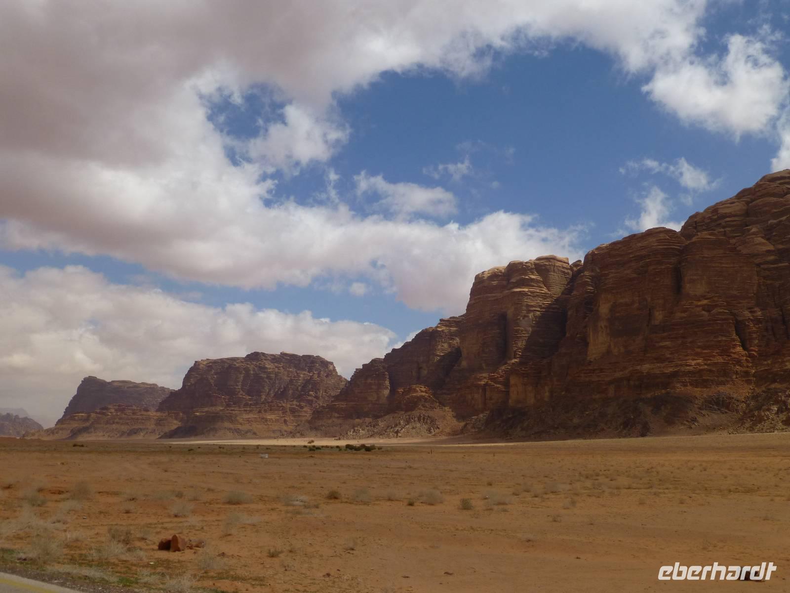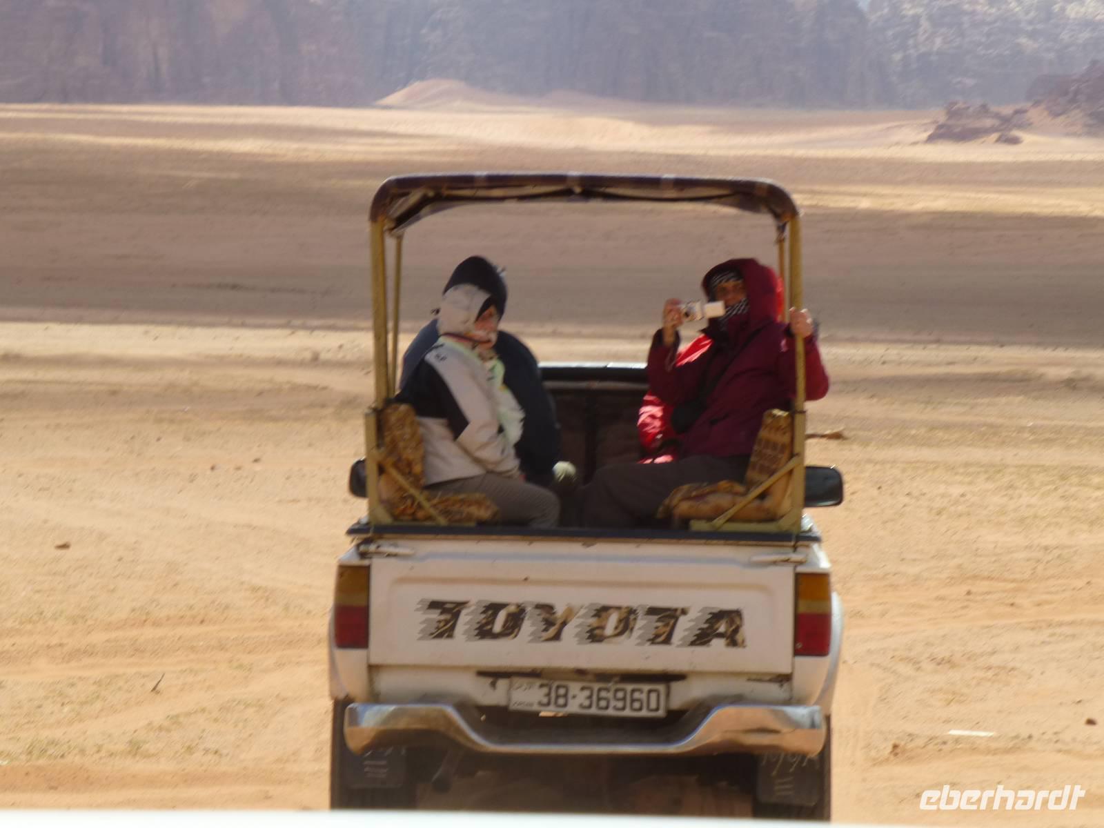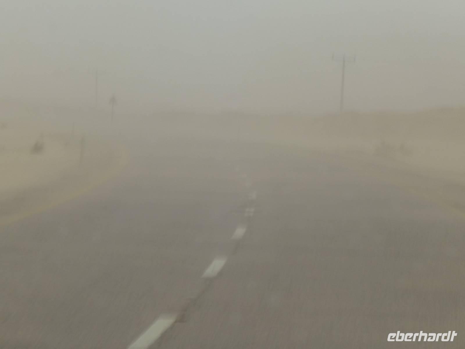 Heute hieß es Abschied nehmen von Petra. Bereits gestern Abend begann es erheblich kälter zu werden. Auf der Fahrt Richtung Wadi Rum geht es durch die Berge, jedoch sehen wir vor Nebel kaum etwas von der Landschaft. Erst mit erreichen der Autobahn wird es besser.