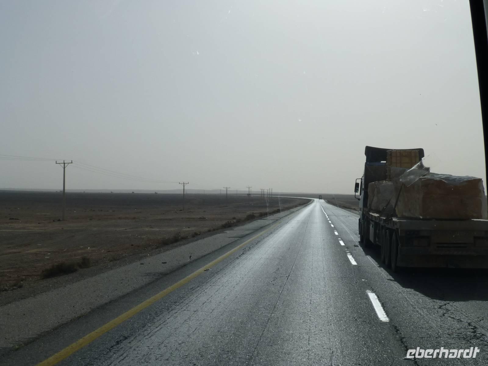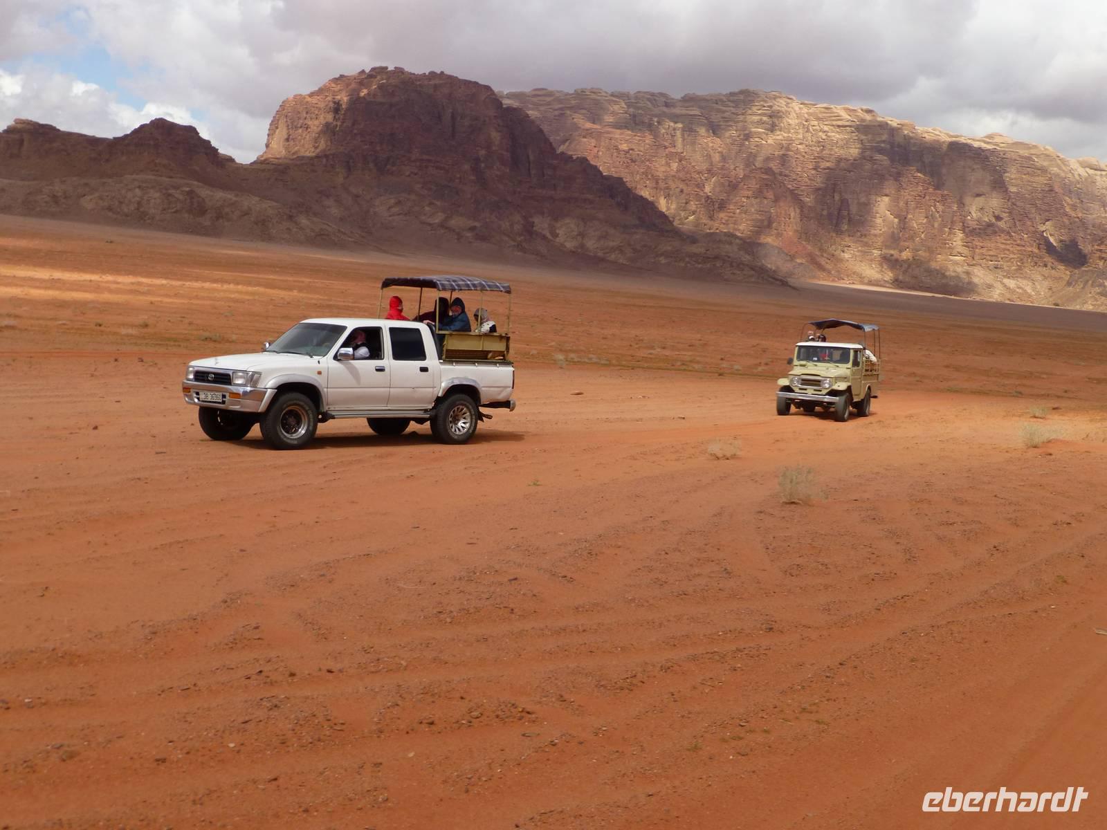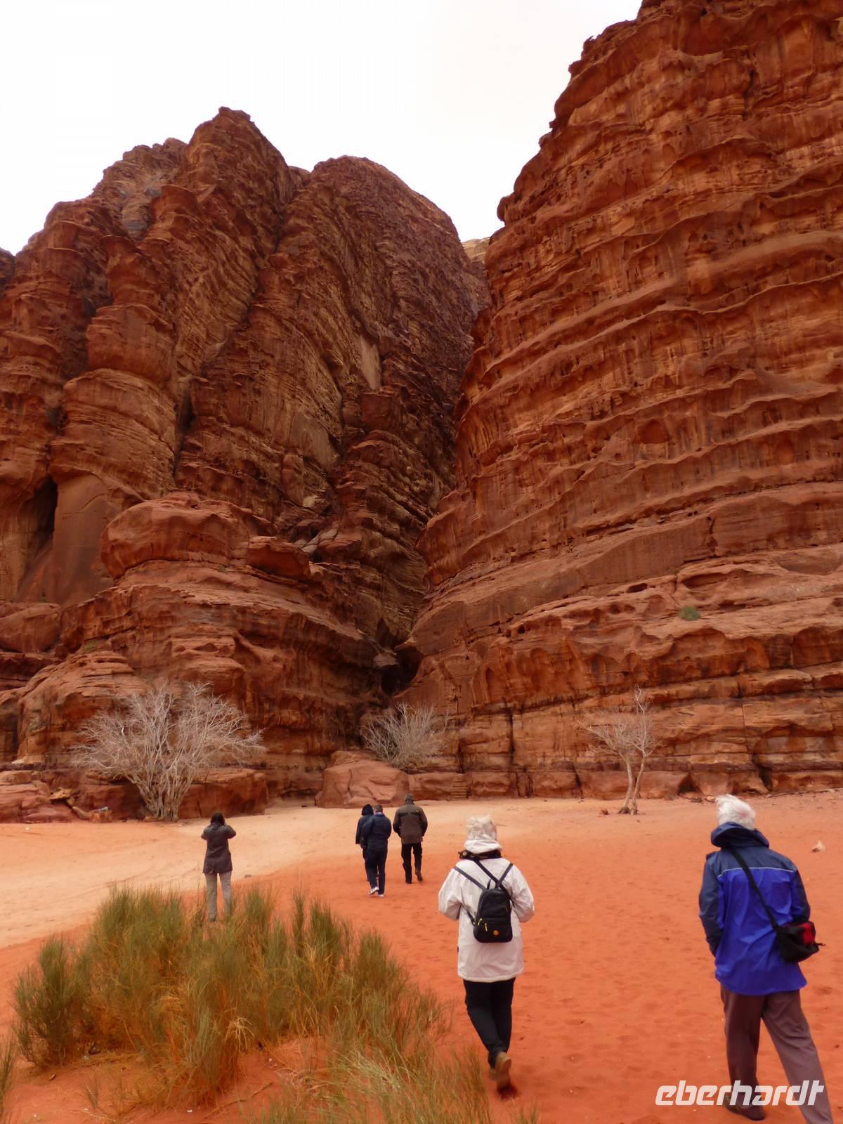 Heute hieß es Abschied nehmen von Petra. Bereits gestern Abend begann es erheblich kälter zu werden. Auf der Fahrt Richtung Wadi Rum geht es durch die Berge, jedoch sehen wir vor Nebel kaum etwas von der Landschaft. Erst mit erreichen der Autobahn wird es besser.