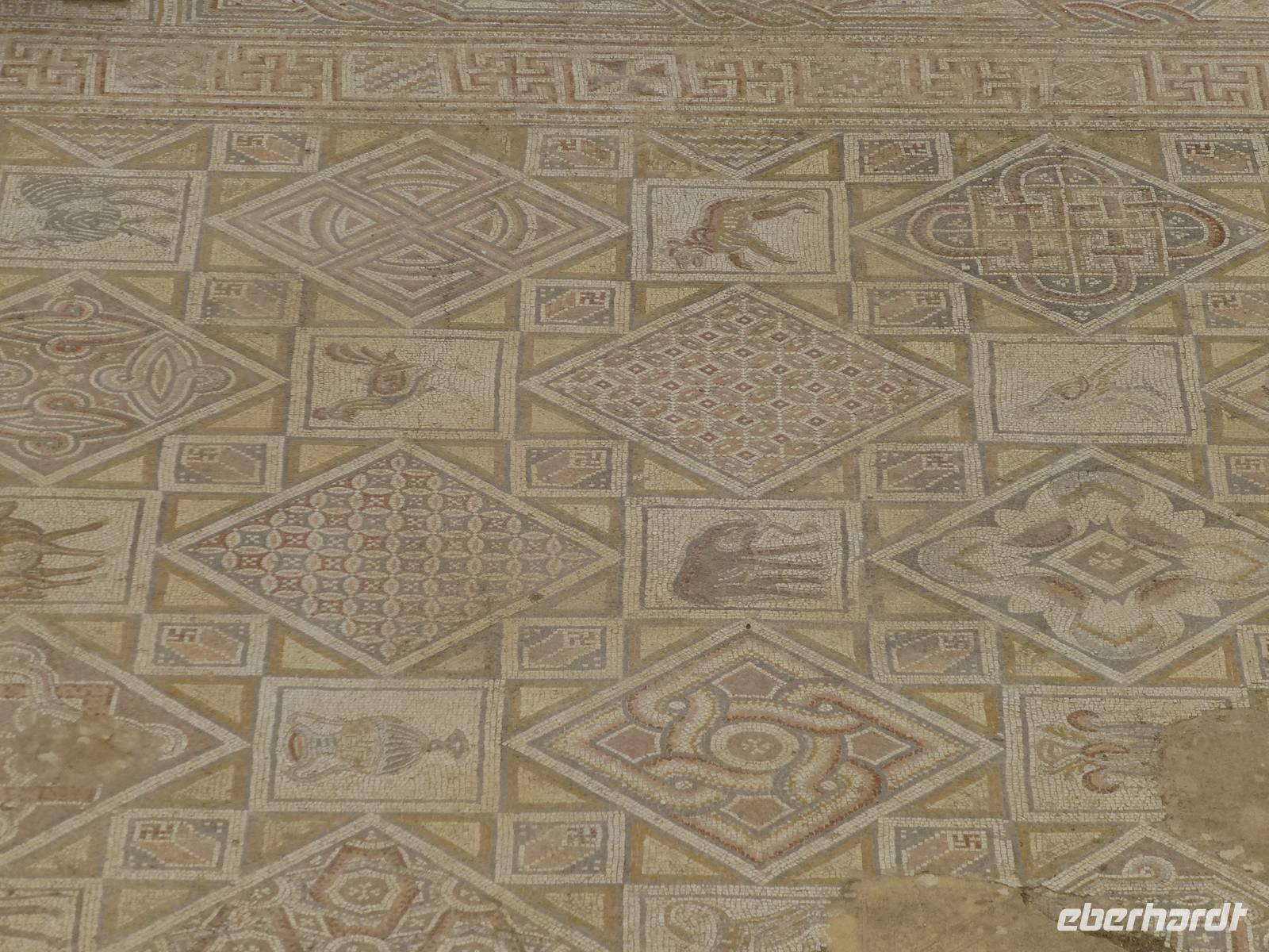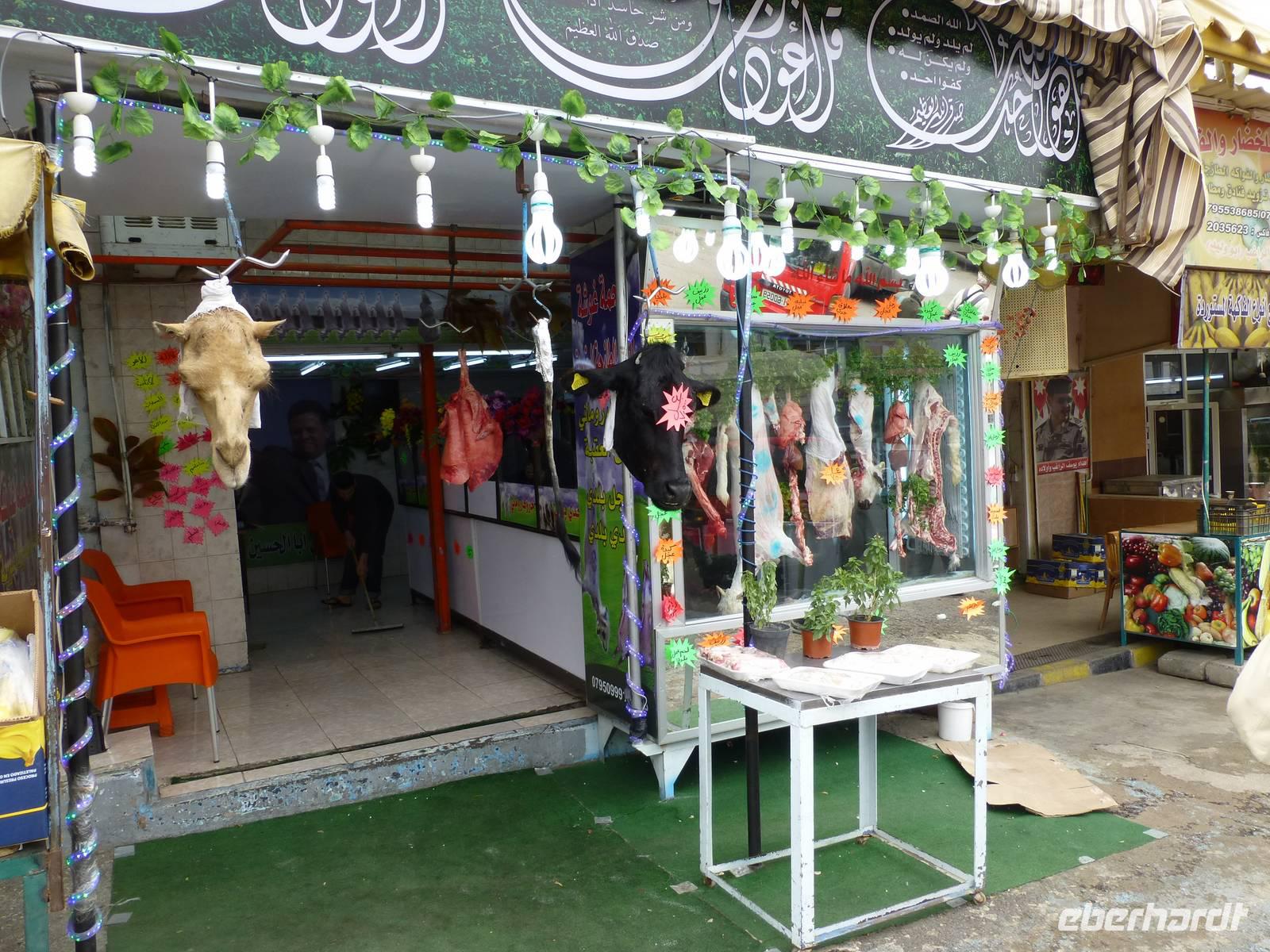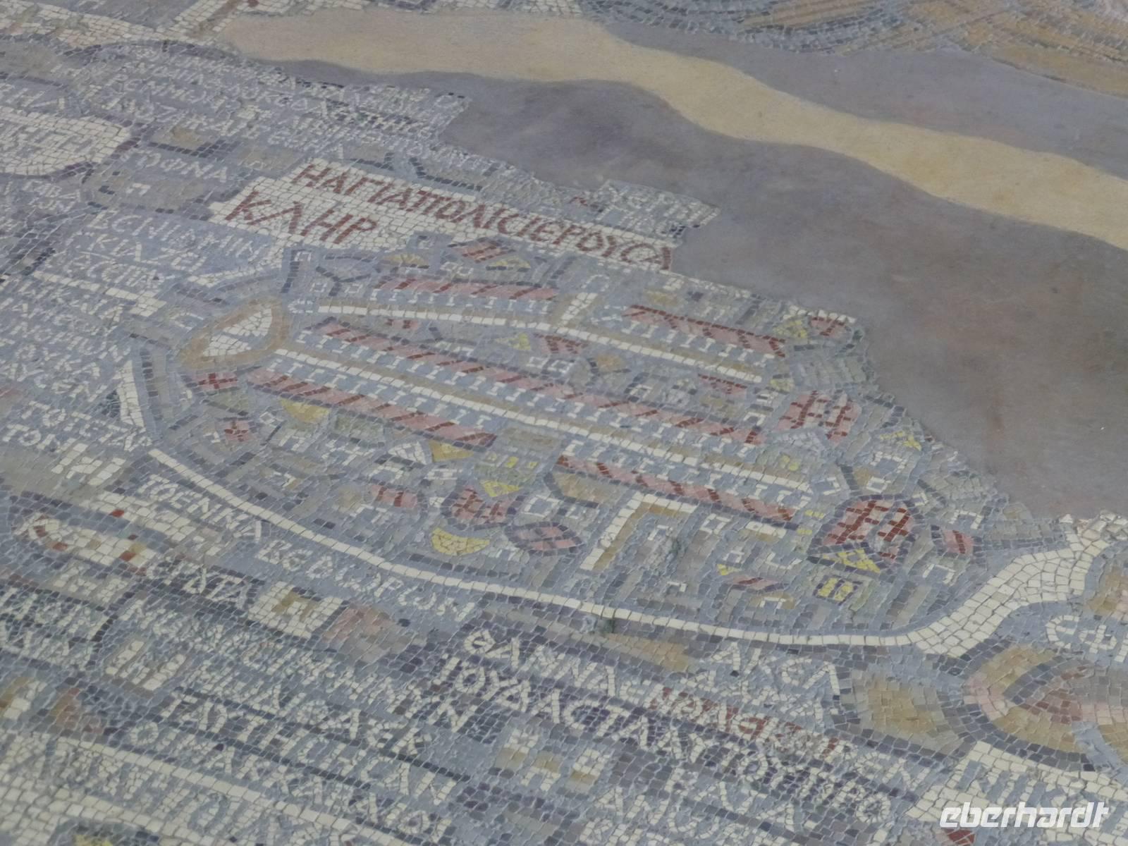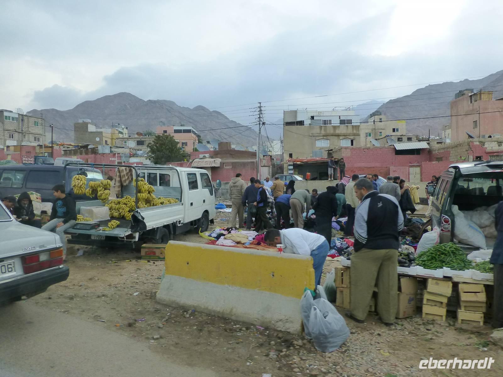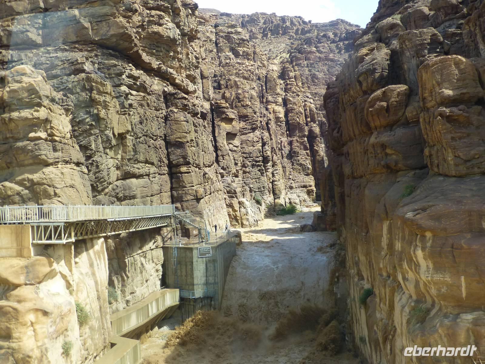 Danach fahren wir zum Berg Nebo. Hier soll Moses das gelobte Land erblickt haben, betreten konnte er es nicht mehr, da er auf dem Berg starb. Sein Grab wurde bis heute nicht gefunden. Ich lese die den Berg betreffenden Stellen aus der Bibel vor, so bekommen wir ein lebendigeres Bild vom damaligen Geschehen. Nur wenige Kilometer entfernt befindet sich die Stadt Madaba, das Zentrum der Mosaikkunst in Jordanien. Das berühmteste Mosaik besichtigen wir in der Kirche St. Georg, eine dreischiffige griechisch-orthodoxe Basilika. Das Mosaik stellt eine Landkarte von Palästina dar und stammt aus dem vermutlich aus der zweiten Hälfte des 6. Jh. Ursprünglich bestand das Mosaik aus 2,3 Mio. Steinen, ein Mosaikleger verarbeitet am Tag ca. 200 der Steinchen. Auf der Karte ist auch das Nil-Delta dargestellt, allerdings in der falschen Fließrichtung, statt von Süd nach Nord ist der Flusslauf von Ost nach West abgebildet. Unweit von Madaba befand sich auch noch die Herodes-Burg Macharäus, welche wir aber nicht besuchten. An dieser Stelle soll laut der Bibel Johannes der Täufer von Herodes Antipas, dem Sohn von Herodes dem Großen, geköpft worden sein. Sein Kopf wurde dann auf einem Tablett, auf Wunsch von Salome, der zweite Frau von Herodes Antipas, serviert. Die Geschichte ist natürlich noch etwas länger und jeder kann sie im Matthäus Evangelium 14,1-12 nachlesen. Weiter fahren wir fast zwei Stunden bis Al-Karak. Unterwegs beginnt es zu regnen und dieser Regen wird auch bis zum nächsten Morgen anhalten. Über der Altstadt von Al-Karak befindet sich die teilweise restaurierte Burg der Kreuzritter aus dem 12. Jh. Errichtet wurde sie um den Handels- und Pilgerverkehr zwischen Damaskus und Mekka zu kontrollieren. Die Überfälle des Burgherrn auf die Karawanen erregten den Zorn Saladins und er ließ die Burg mehrfach belagern. Schließlich fiel die Burg im Jahre 1188 nach 8-monatiger Belagerung. Beeindruckend war das bunte Treiben in den Straßen von Al-Karak, hier kann man den arabischen Alltag hautnah beobachten. Mit einer kurzen Pause unterwegs fuhren wir dann nach Petra weiter, wo wir die nächsten drei Nächte im Hotel Beit Zaman übernachten und zwei Tage Zeit haben uns die Nabatäerstadt Petra anzusehen.