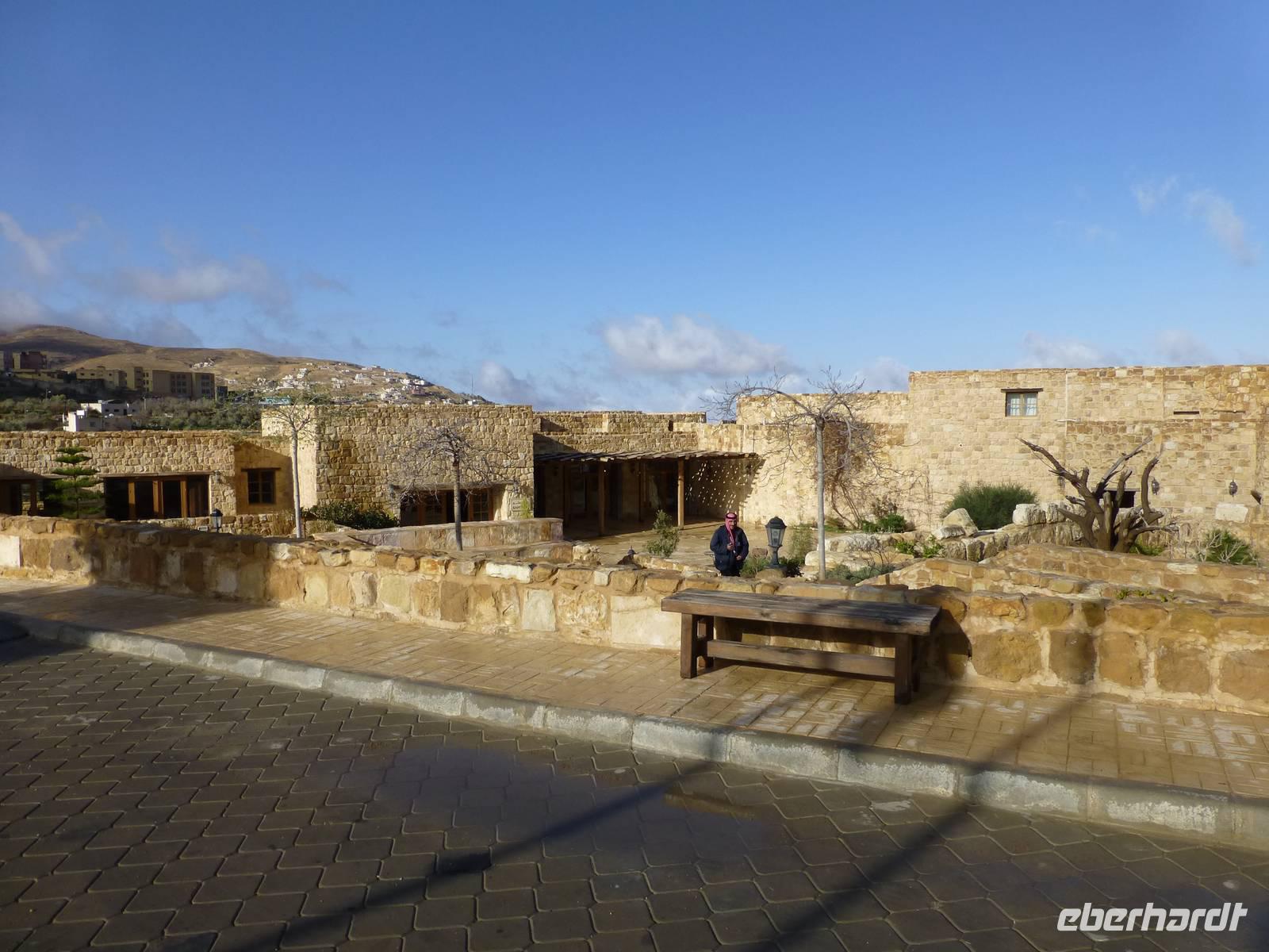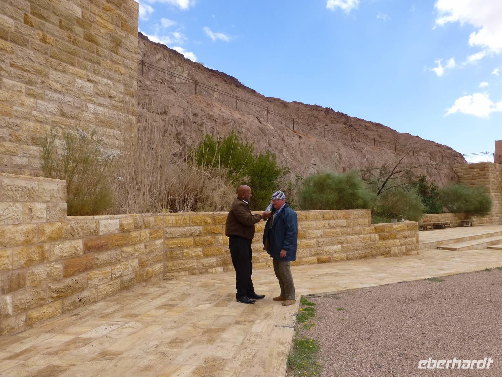 Nach dem Frühstück fahren wir heute vom Roten Meer zum Toten Meer. Unsere Strecke führt durch das Wadi Araba. Die Wüstenlandschaft begleitet uns bis zum Toten Meer. Das Wetter ist auch etwas besonderes am heutigen Tag. Neben einem kleinen Sandsturm erleben wir wieder Regen, der so viel Wasser mit sich brachte das wir an einer Stelle am Toten Meer einen Wasserfall sehen können. Und in den Bergen, die wir von der Straße aus sehen können, liegt teilweise Schnee. Das Tote Meer ist der tiefste Ort der Erde, der Seeoberfläche befindet sich derzeit auf 418 m unter dem Meeresspiegel. Der Salzgehalt liegt bei 33 %, das über zehnmal mehr als bei anderen Meeren. Im Toten Meer gibt es keine Lebewesen, aber für uns Menschen sind der Schlamm des Sees und die Mineralien gut zur Behandlung von Rheuma und Hautkrankheiten. Bevor wir zum Hotel fahren besuchen wir noch die unweit gelegene Taufstelle von Jesus am Jordan. Ausgrabungen, welche 1997 beginnen konnten, belegen mit höchster Wahrscheinlichkeit das Jesus an dieser Stelle am Jordan getauft wurden. Wie es auch in der Bibel aufgezeichnet wurde kam Jesus aus Jerusalem, überquerte den Jordan und wurde dann von Johannes dem Täufer, welcher in Bethanien lebte, im Jordan getauft. Die Taufstelle kann man heute noch sehen, allerdings fließt der Jordan heute an anderer Stelle. Im Laufe der Zeit hat sich sein Flussbett geändert. Am Fluss selbst ist heute, neben einer griechisch-orthodoxen Kirche, eine neue Taufstelle eingerichtet. Der Jordan ist heute kein mächtiger Fluss mehr, sondern eher ein Flüsschen. Bei uns führte er ganz gut Wasser, da es die letzten Tage reichlich geregnet hatte. An der heutigen Taufstelle befindet sich auch die Grenze zu Israel, auf israelischer Seite ist ebenfalls eine Taufstelle vorhanden. Das Marriott Hotel am Toten Meer ist unsere letzte Unterkunft auf dieser Reise. Den weiteren Nachmittag können wir im Hotel zum entspannen nutzen und die Annehmlichkeiten des Hotels nutzen.