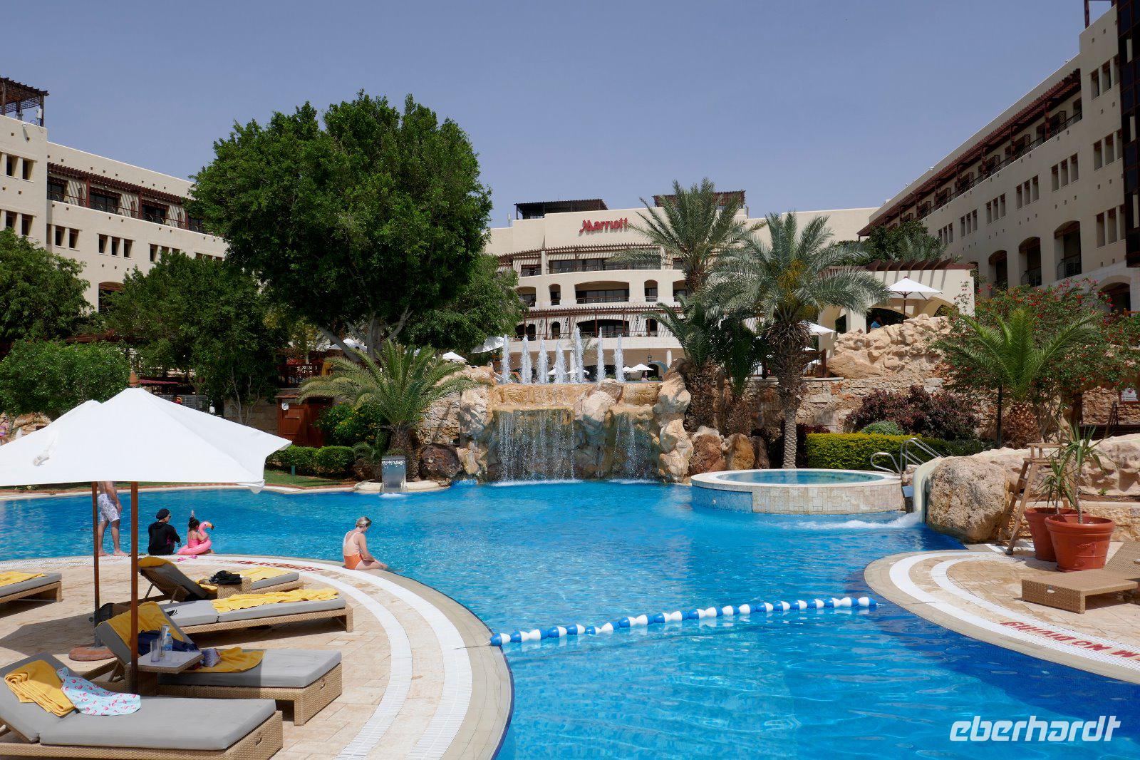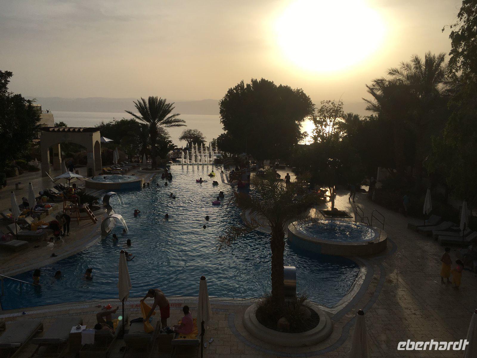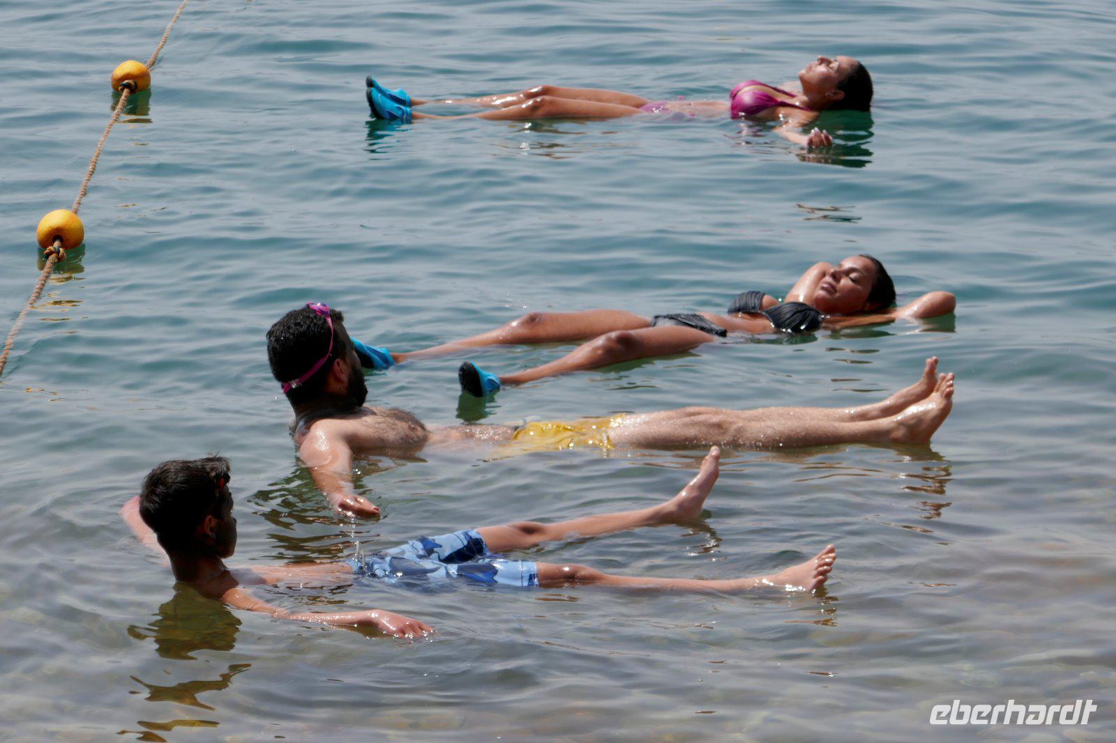Abschied von Petra und weiter geht es Richtung Totem Meer. Aber vorher erlebten wir das faszinierende Wadi Rum. Entlang der einzigen Bahnstrecke Jordaniens führte der Weg zum Besucherzentrum Wadi Rum. „Weitläufig, einsam und gottähnlich" - mit diesen Worten beschrieb T. E. Lawrence einst das Wadi Rum. Schon am Besucherzentrum, das bei der Felsformation „7 Säulen der Weisheit" ist, wird schon klar, dass die Worte Lawrence nicht treffender sein konnten. Umgestiegen in einen Jeep erkunden wir nun dieses unberührte Areal, das uns auch das Gefühl gab, hier wie die Beduinen durch die Wadi zu ziehen. Auf unserer Tour unzählige Felsformationen, Felsmalereien und Steinzeichnungen. Ideale Filmkulisse,an denen Hollywood Filme wie z. B. „Der Marsianer" oder „Lawrence von Arabien" oder neu der Film „Aladins Wunderlampe" gedreht haben. Nach einem Tee im Beduinenzelt und der Wanderung durch Schlucht u. Dünen ging es zum Bus zurück. Danach setzten wir mit viel "Sitzfleisch" und durch die teilweise karge, aber bizarre Bergwelt Jordaniens unsere Reise in Richtung Totes Meer - dem niedrigsten Punkt des Landes und der Erde fort. Hier nun war unser Quartier für die nächsten 2 Nächte.