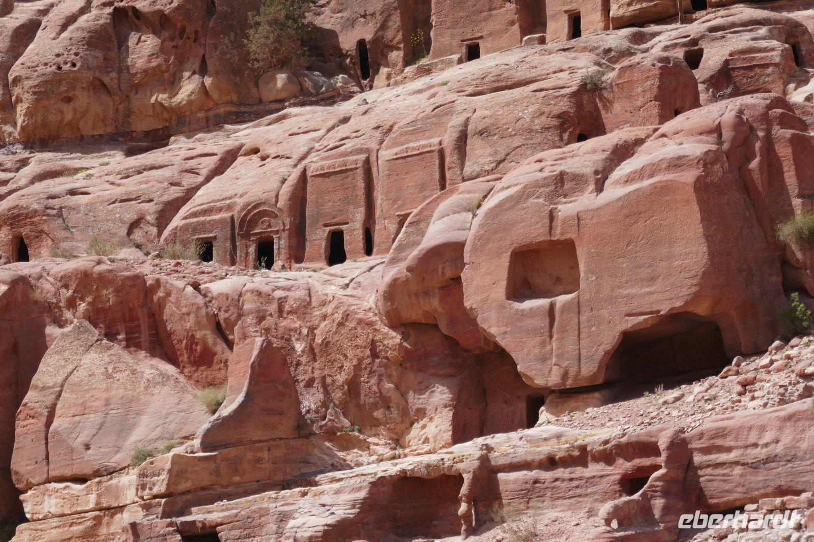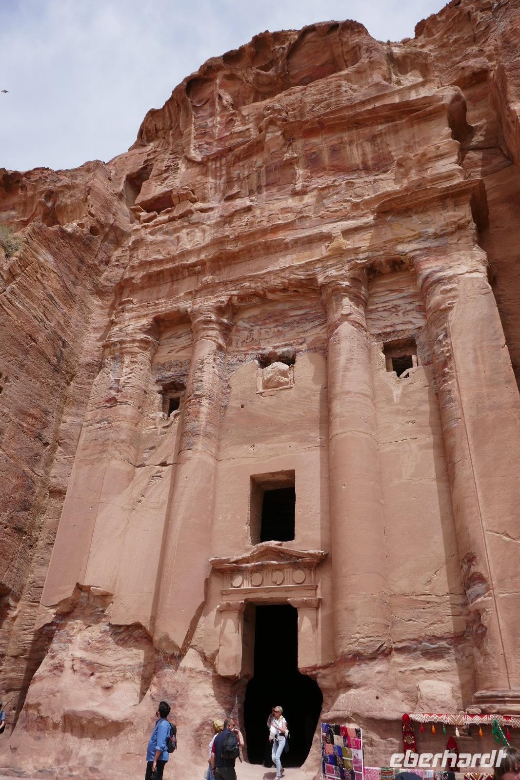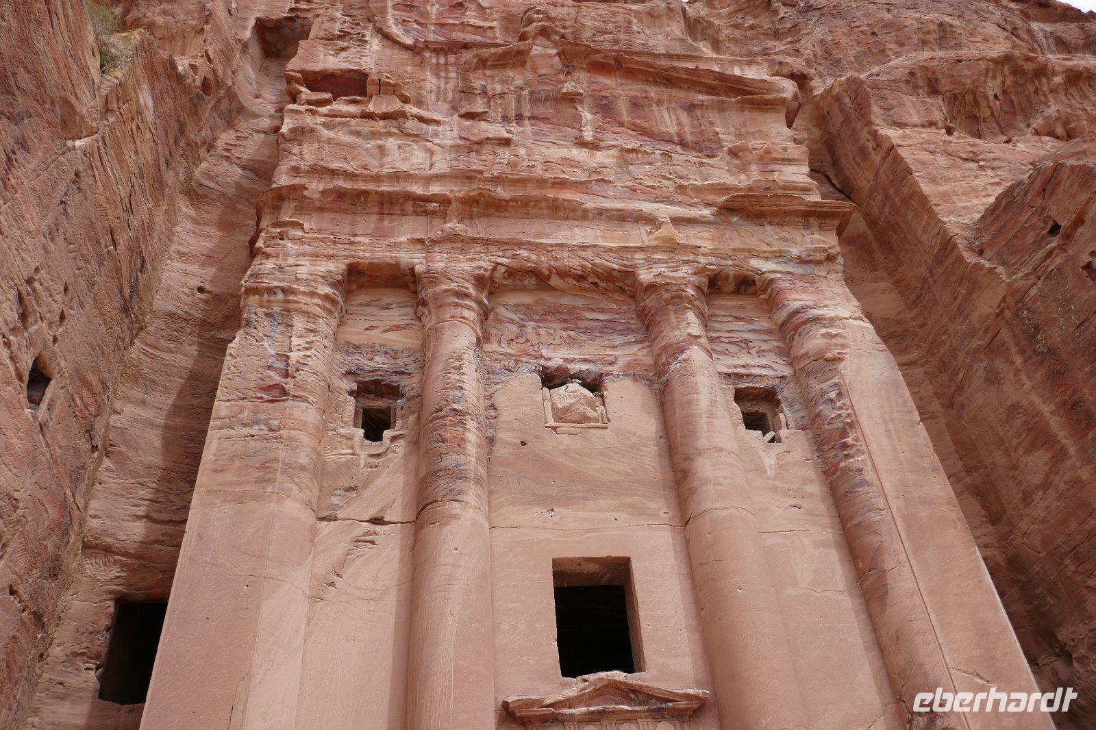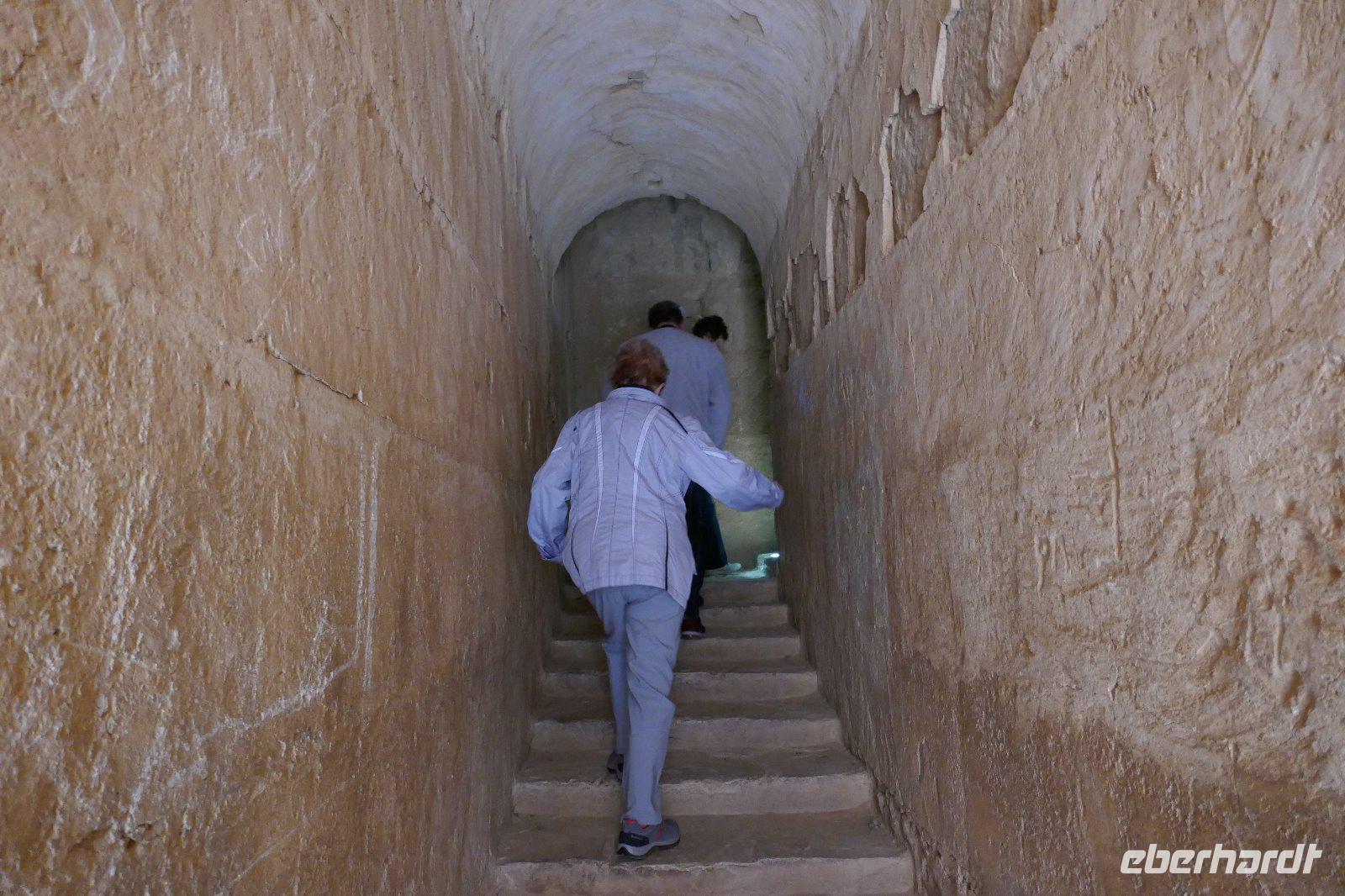 Es heißt Abschied nehmen von Amman und nach dem Frühstück führte uns der Weg in Richtung Berg Nebo. Auf dem Weg dorthin durften wir die Villen und das Botschaftsviertel im neuen Teil von Amman erleben. Danach hieß es etwas Geduld haben, um den Blick aufs gelobte Land zu erleben. Angekommen am Berg Nebo - hier also soll Moses das erste Mal das „gelobte Land" gesehen haben. Und in der Tat von dem 808 Meter hohen Berg hatten wir eine gute Sicht auf das Jordantal, auf das Tote Meer und nach Israel. Kein Wunder das hier Papst Benedikt auf seiner Pilgerreise 2009 an dieser Stelle folgende Worte fand „Von diesem heiligen Berg lenkt Mose unseren Blick [...] auf die Erfüllung aller Verheißungen Gottes in Christus." Ob Gläubig oder nicht - alle schweiften wie einst Moses ihren Blick in die Ferne und genossen die Aussicht. Natürlich fehlte nicht der Besuch der Kapelle mit ihren Mosaiken. Danach fuhren wir nach Madaba in der wir zur Kirche St. Georg gingen, denn hier befindet sich die älteste Darstellung von Palästina auf einer kunstvollen Landkarte aus Mosaik. Nach Freizeit u. einem leckeren Essen ging es weiter auf der Königstraßen in Richtung Süden. Karg war die Landschaft und doch wundervoll. Bald erreichten wir Wadi Mujib- den Grand Canyon Jordaniens. Bei einem Fotostopp hatten wir eine atemberauschende Aussicht in die tiefe Schlucht. Kehre um Kehre schlängelt sich die Straße in die Schlucht und wieder hinauf. Auf dieser Straße fuhren auch wir, bis wir dann über den Stausee fahrend die Kreuzritterburg von Kerak erreichten. Auf unserem Rundgang erfuhren wir viel zu dieser Anlage unter anderem, dass diese im Jahre 1188 von den Truppen Saladins 8 Monate belagert wurde. Kreuzritter und Saladin - wer kennt nicht Nathan der Weise in dessen Handlung die Geschichte der Kreuzritter und Saladin eingeflossen sind. Diese Gedanken schwangen beim Rundgang durchaus mit. Anschließend setzten wir den Weg fort und fuhren weiter nach Petra, in die sagenumwobene Stadt. Hier wohnten wir im traditionellen Petra Guesthouse direkt vor den Toren der Felsenstadt. Wir hatten gleich das Gefühl direkt bei den Nabatäern zu sein.