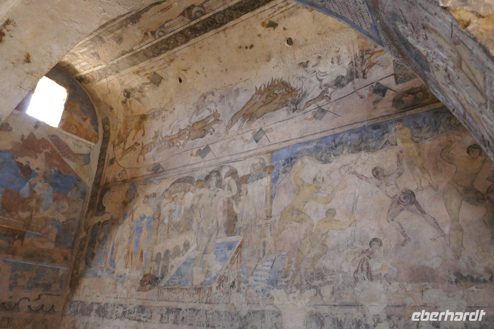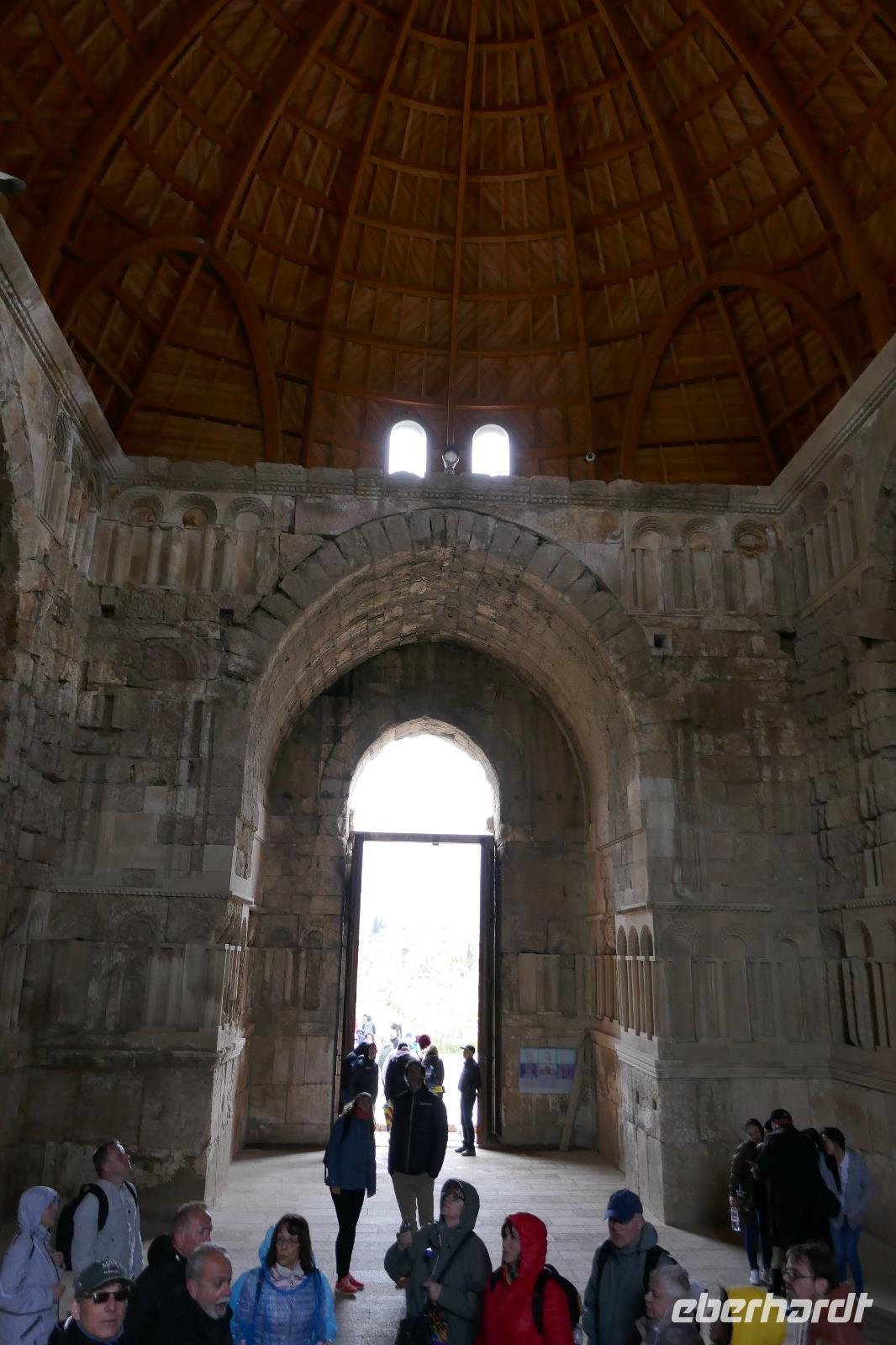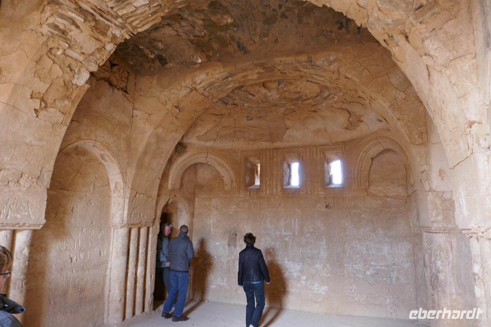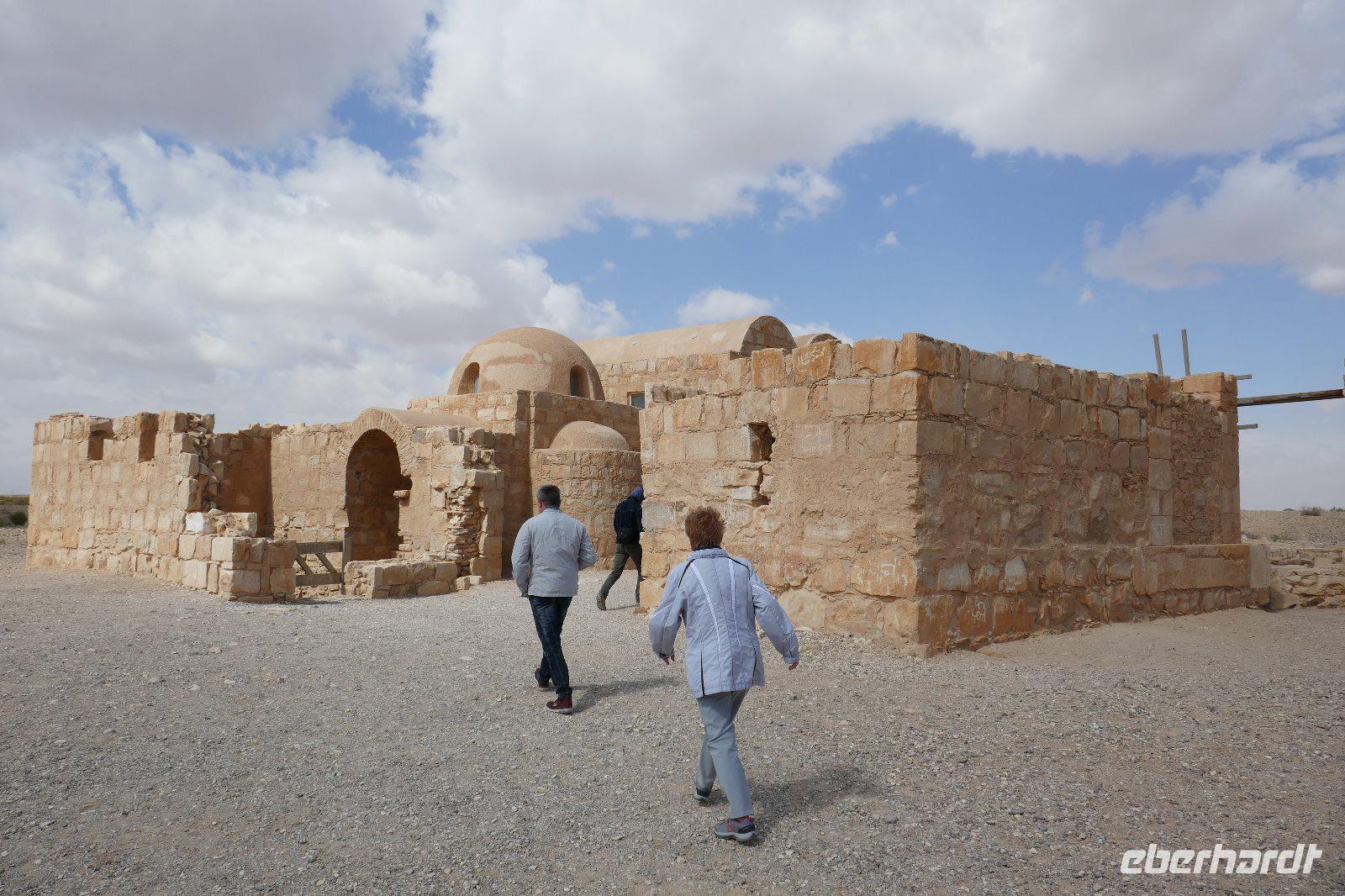 Wüstensturm und Graupelschauer hatten wir im Orient nun nicht unbedingt auf dem Schirm - aber wir machten das Beste aus diesem Tag und der Wettergott war uns insgesamt dennoch wohlgesonnen. Nichts ist so beständig wie die Veränderung - auch an diesem Tag wurde im Hinblick auf die Regenprognosen das Programm umgestellt. Nach dem Frühstück ging es in Richtung Osten auf der Suche nach den Wüstenschlössern der Omaijaden, die als wichtige Zeugnisse der frühislamischen Epoche gelten. Hotelunterkunft, Lustschloss oder Schutzburg - unterschiedlicher konnte die Nutzung nicht sein. Begonnen mit Qusair Al Kharana (einst Hotel für die Caravanen) danach das Lustschloss Qusair Amra mit seinen erotischen Darstellungen im Badehaus. Erstaunlich europäisch - wahrscheinlich arbeiteten hier griechische Künstler. Nur so sind die für den Islam unüblichen Wandmalereien zu erklären. Zum Schluss die Burg in der Oasenstadt Qasr al Azrag in der auch Lawrence von Arabien ein Zimmer hatte.Von hier aus leitete er im Winter 1917 den arabischen Aufstand gegen das Osmanische Reich. Danach ging es zurück nach Amman. Für den Nachmittag brauchte man eine Stärkung und eine gute Adresse war die „Windmühle"- hier tischte man uns typische Speisen auf, die sogar bei Hochzeiten serviert werden. Das Mittagsgebet war schon vorbei, aber wir suchten dennoch die Blaue Moschee auf - man kann ja Gebete ltd. den Ausführungen von Ayyad auch nachholen. Mit ungewohnter Kleiderordnung für die Frauen und ohne Schuhe betraten wir die Moschee, die lange Zeit als die größte in Jordanien galt. Amman eine Millionenmetropole - an den Hängen Haus an Haus - wie Perlen auf einer Schnur ergibt es einen „Betonteppich" der bensonderen Art. Den besten Ausblick auf die Stadt und dieses Schauspiel hat man am Zitadellenhügel, den wir zum Ruf des Muezzins erreichten. Mit dem Abstecher im Museum mit Figuren, die 8.000 Jahre alt waren, beendeten wir den Abstecher und zum Abschluss ging es noch in die Altstadt von Amman. Wir starteten am Amphitheater und danach ging es durch die Gassen der Altstadt mit seinen Gemüseständen und unzähligen Geschäften - Handeln ist ausdrücklich erlaubt - ob es immer klappt hängt vom Geschick des Einzelnen ab. Über die Neustadt von Amman ging es zurück zum Hotel und mit dem Abendessen endete dieser erlebnisreiche Tag.