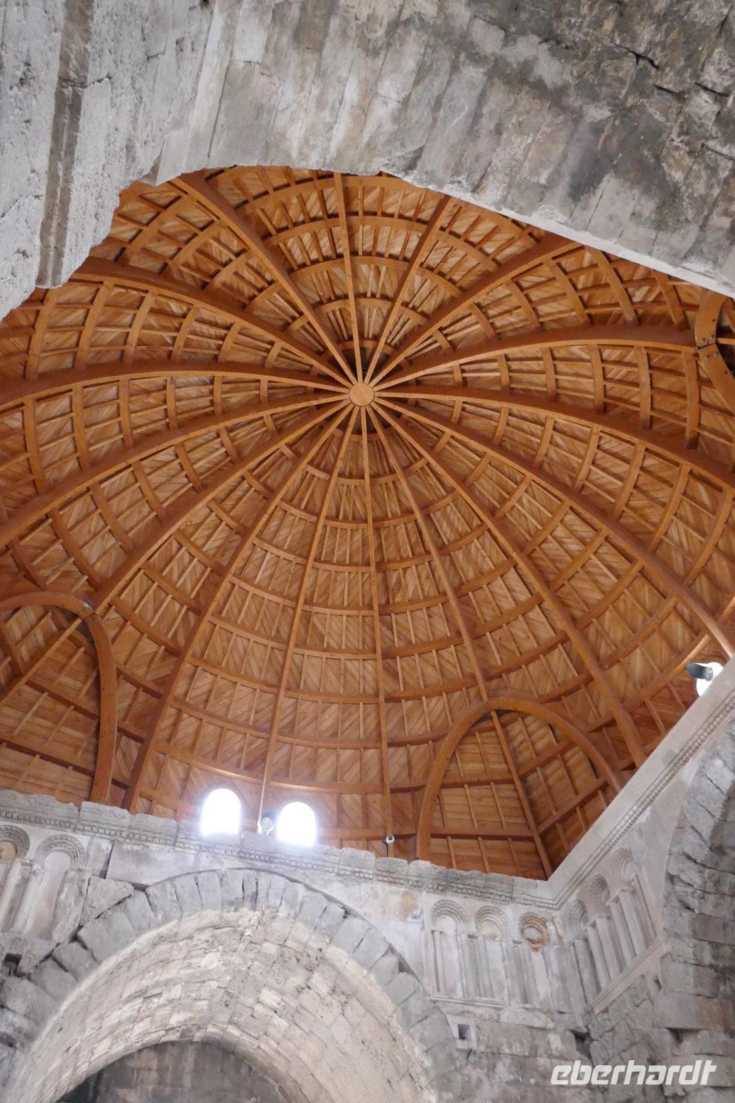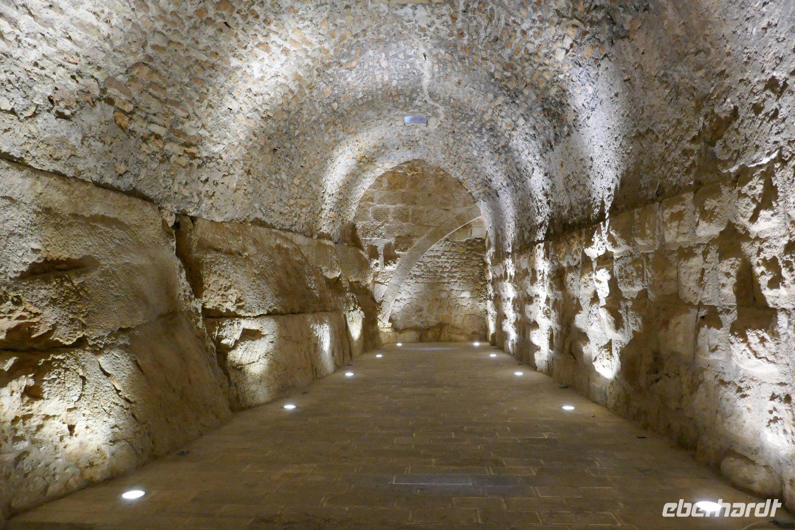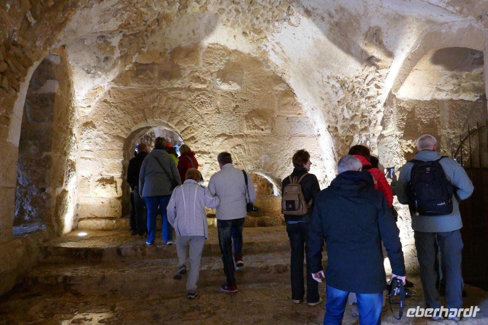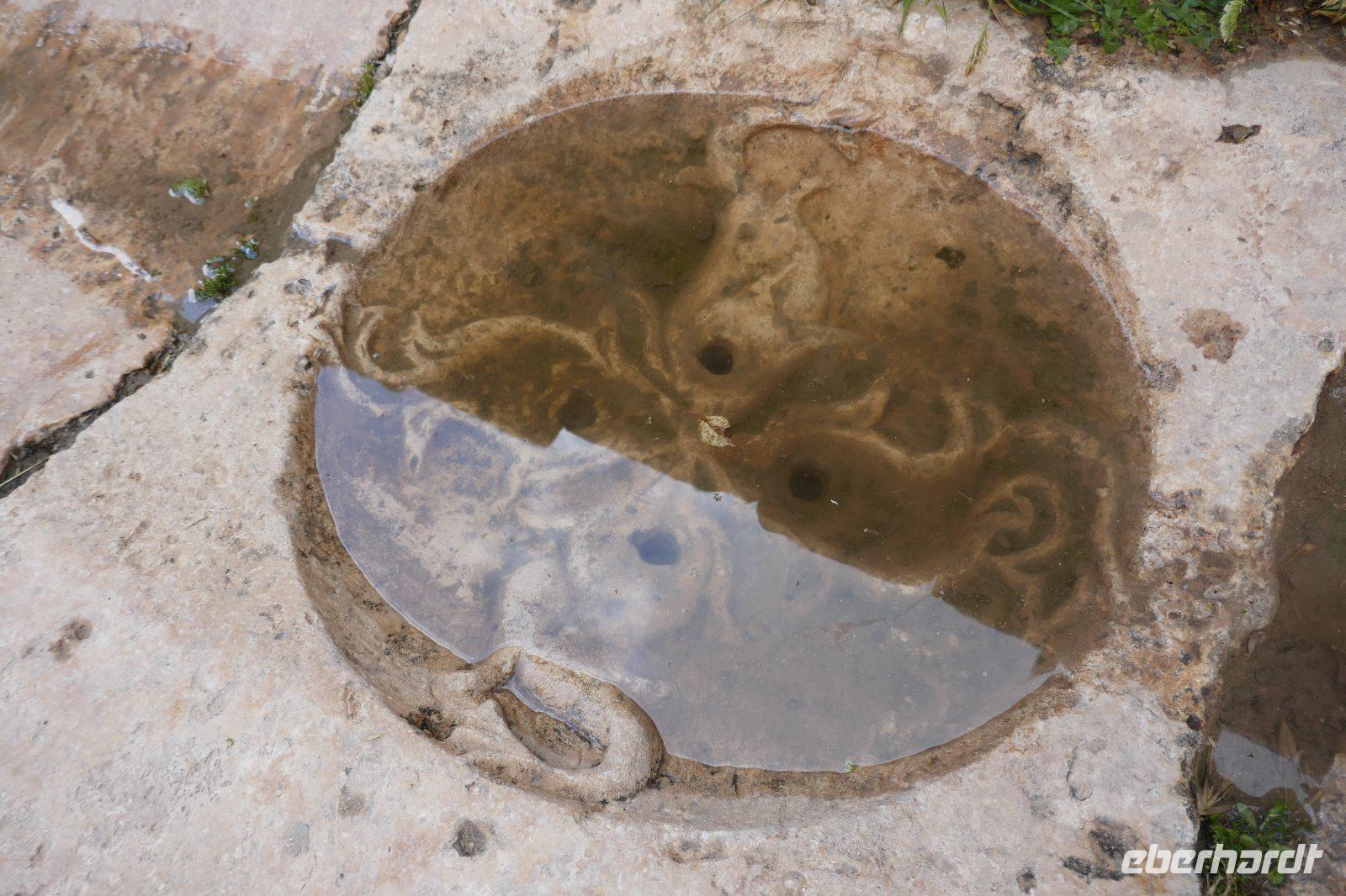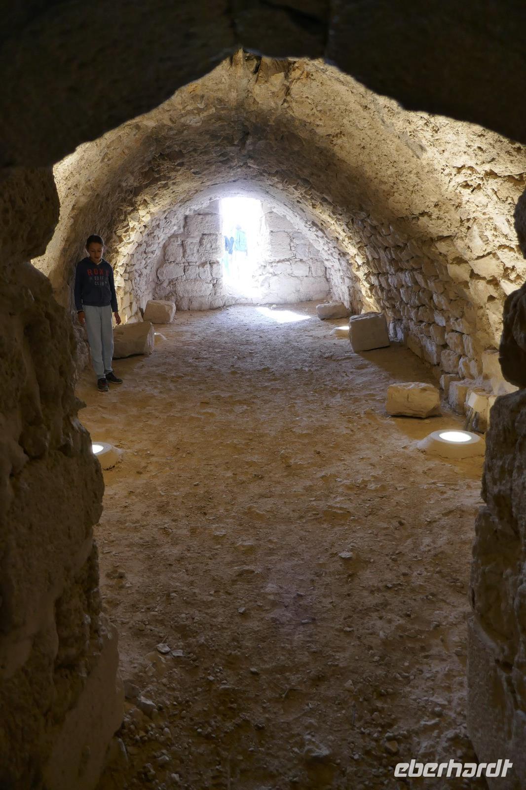 Der Weg heute führt in den Norden. Die Vegetation wurde intensiver. Oliven- u. Feigenhaine, vielfach terrassenförmig angelegt säumen unsere Wegstrecke nach Norden. Sie bilden einen schönen Kontrast zu den weißen Kalkfelsen und der rotfarbigen Erde. Nur die Minarette und der typische Baustil verraten, dass wir nicht in deutschen Mittelgebirgen oder gar in den Alpen sind. Hoch oben über Ajlun thront die in den 1930-er Jahren restaurierte Festung Qala'at ar-Rabad. Im 12. Jahrhundert errichtet war die Festung Teil einer von Sultan Saladin errichteten Festungskette. Sie gilt heute als einzige mittelalterliche Burg Jordaniens und wurde über der Ruine eines Klosters errichtet. Von hier aus hatten wir im Rahmen unserer Besichtigungstour einen wunderschönen Ausblick, den alle genossen haben. Nächstes Ziel war Jerash. das seit 6.500 Jahren ununterbrochen besiedelt ist und einst florierender Handelsplatz an der Weihrauchstraße nach Damaskus war. Die Römer haben hier eindrucksvoll ihre Spuren hinterlassen. Nicht umsonst wird es auch das „Pompeji des Ostens" genannt. Wir bummelten durch die ehemalige römische Stadt mit ihren Tempeln, Theater und Thermen. Beim Rundgang erlebten wir gepflasterte Kolonnadenstraßen, gesäumt mit zahllosen Säulen sowie weitläufig angelegte Plätze und Brunnen. Beim Schließen der Augen konnte man das Treiben der Stadt erahnen und sich der einstigen Bedeutung der Stadt noch klarer werden. Der Artemistempel mit seinen 11 Säulen kann nur von einer Stelle aus so fotografiert werden. Dazu muss man die Stelle kennen. Natürlich kannte unser Guide diese Stelle und so konnten alle ein Bild davon machen. Mit diesen Eindrücken ging es dann wieder zum Hotel zurück.