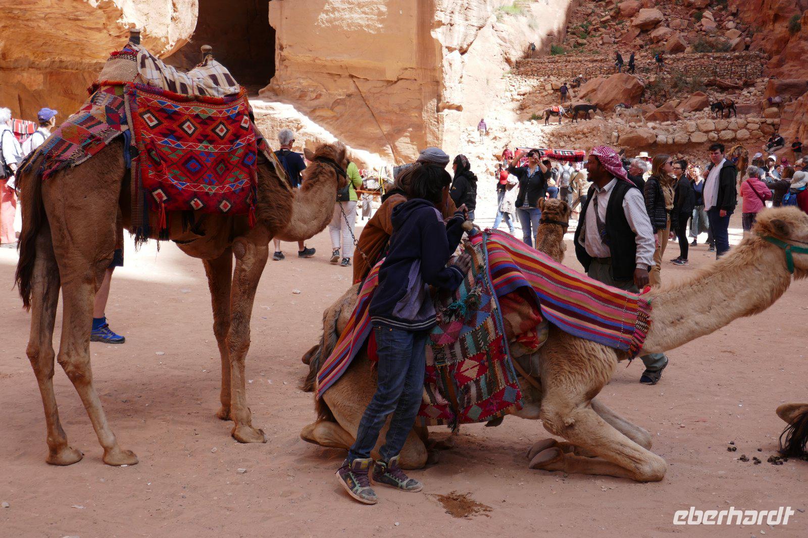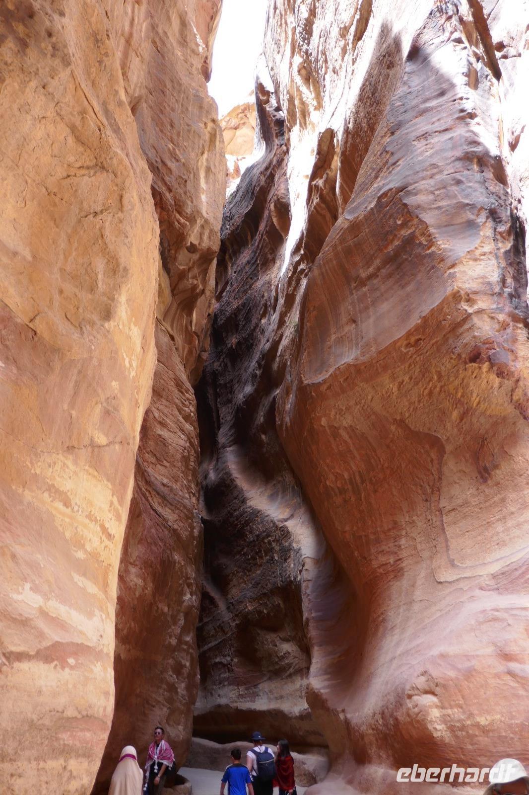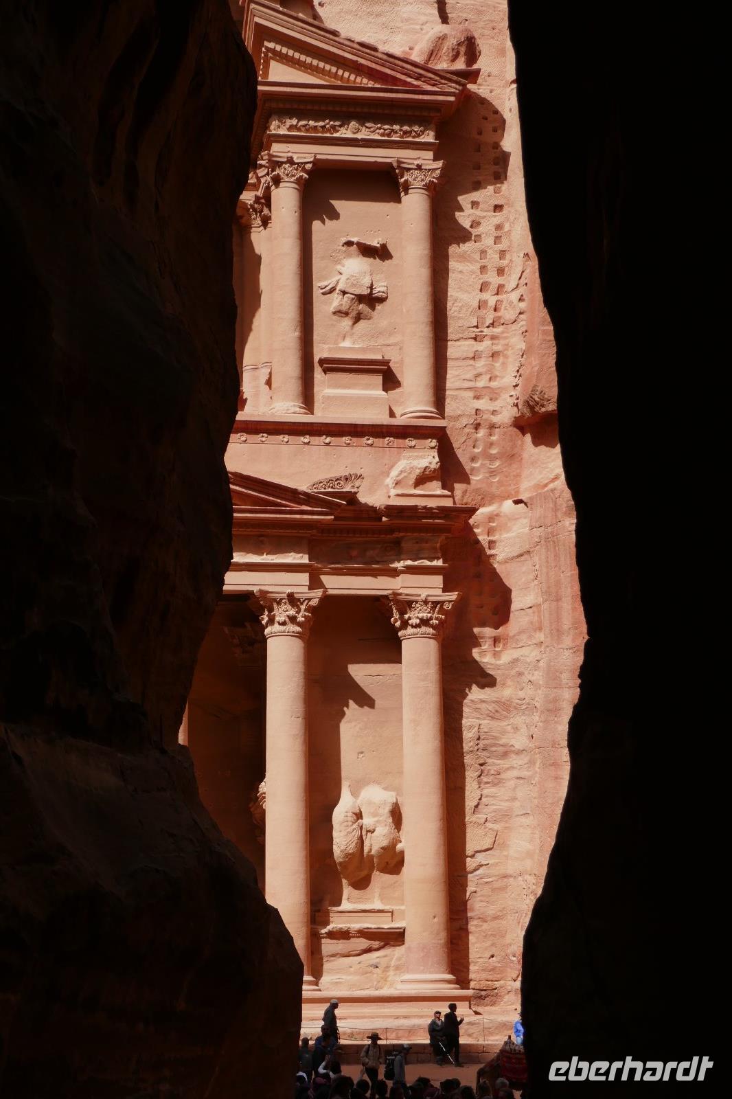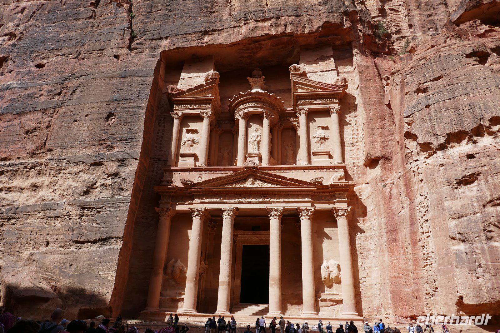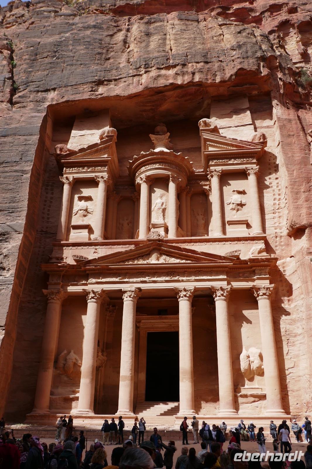Im Vorfeld hast du ein Bild vor Augen wie es vielleicht dort aussehen könnte. Doch als wir dann vor Ort waren, sah alles ganz anders aus und noch viel eindrucksvoller. Man muss es wirklich gesehen haben um die unglaubliche Schönheit dieses Ortes wirklich fassen zu können. Kein Wunder also, dass es von der UNESCO als das achte Weltwunder bezeichnet wird, obwohl erst ein Bruchteil (10 %) ausgegraben wurde. Auf den Spuren Indiana Jones wollten wir Petra entdecken, auch wenn dazu ein Tag nicht ausreicht. Wir konzentrierten uns auf das wesentlich und durch die Schlucht Siq ging es zum Schatzhaus des Pharaos, das eigentlich ein Grabtempel war. Vielen ist dieser Ort bekannt aus dem Film „Indiana Jones und der letzte Kreuzzug", in dem die Fassade des Schatzhauses zu sehen war. Staunend verharrten wir hier und genossen den Anblick, der einem Postkartenmotiv gleich kam. Auf unserem weiteren Weg kamen wir an unzähligen weiteren Gräbern, Palästen und Theater vorbei. Immer wieder verändern sich durch das Licht die Farbnuancen, die die Gebäude in ein fast magisches Licht rückten. Auch die Felsen boten interessante Farbenspiele. Am Abend erlebten wir die Schatzkammer im Licht von tausenden von Kerzen. Dazu passende Musik und Tee - so klang dieser erlebnisreiche Tag aus.
