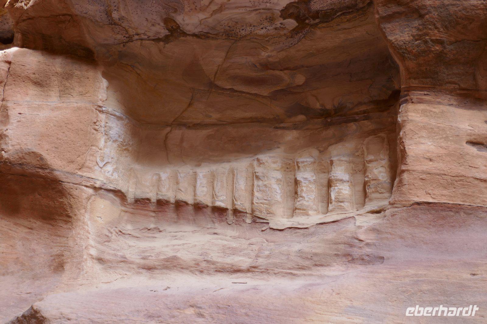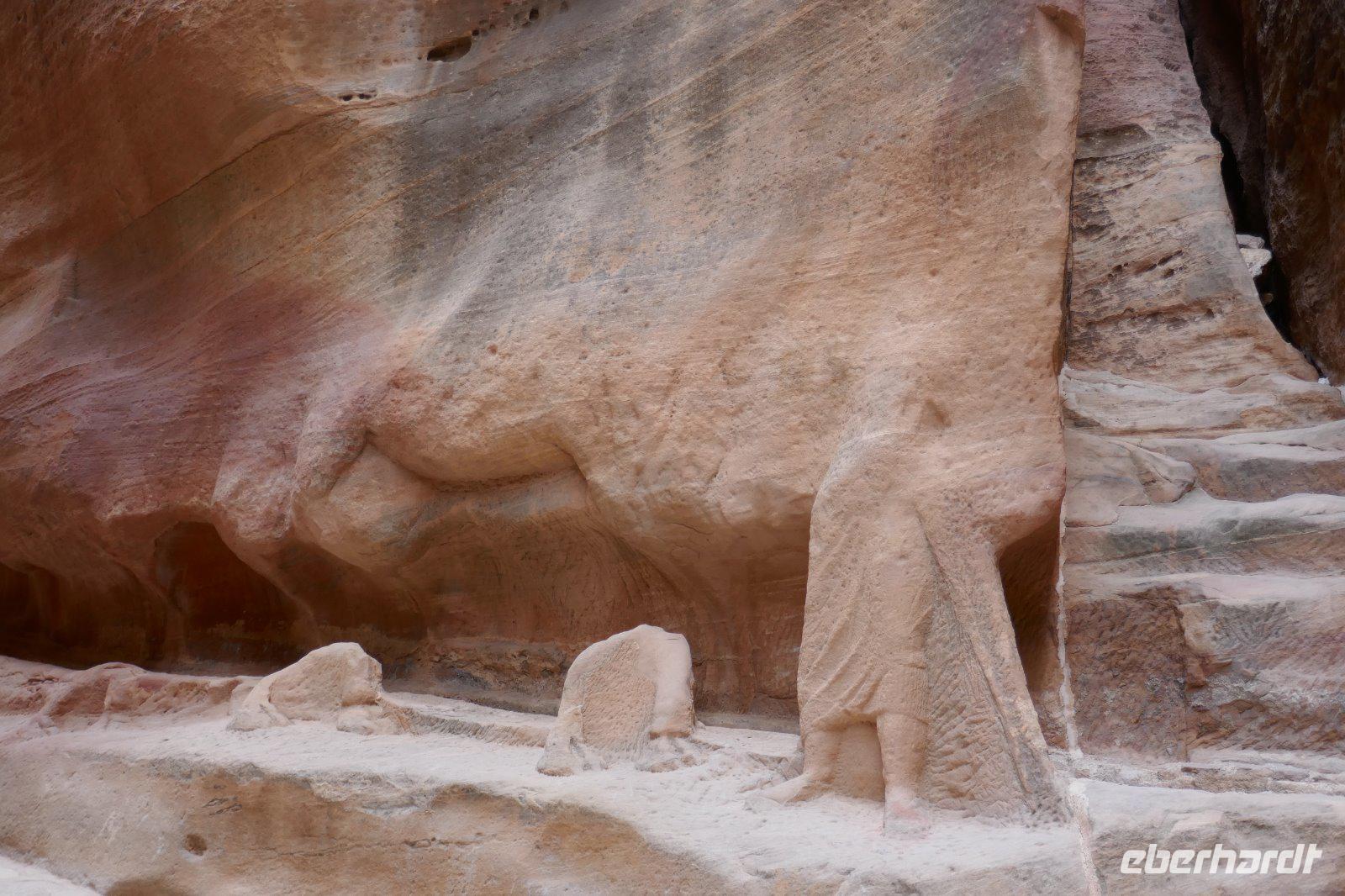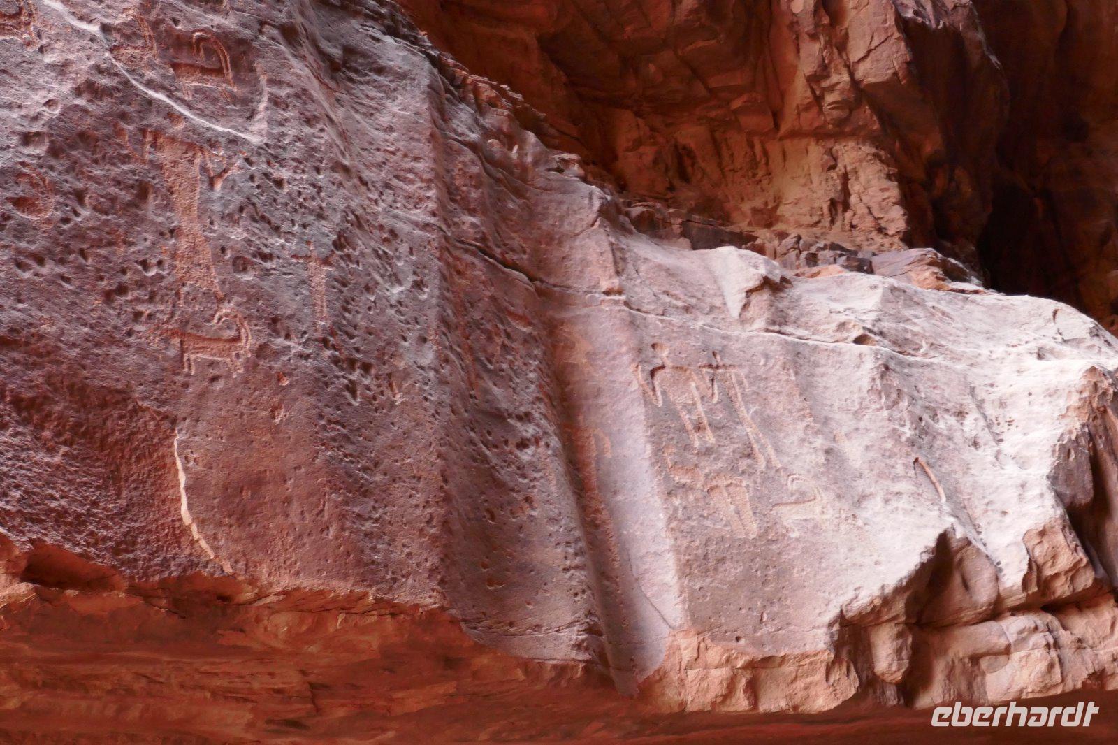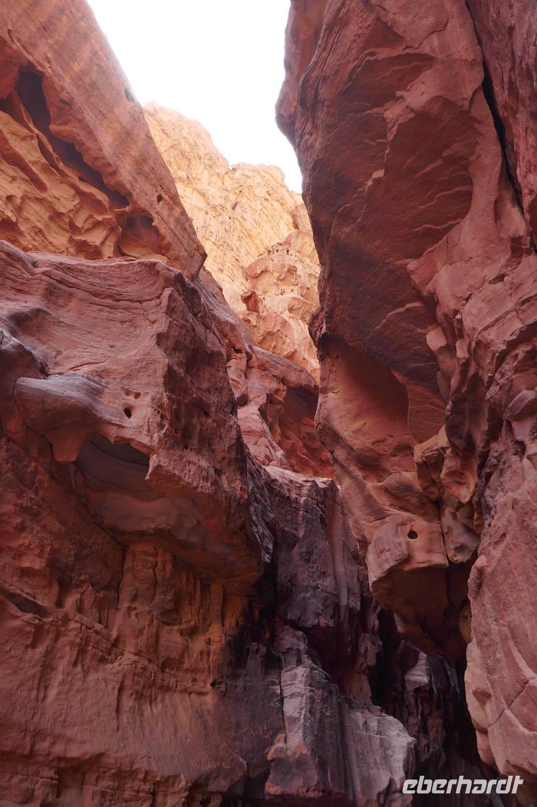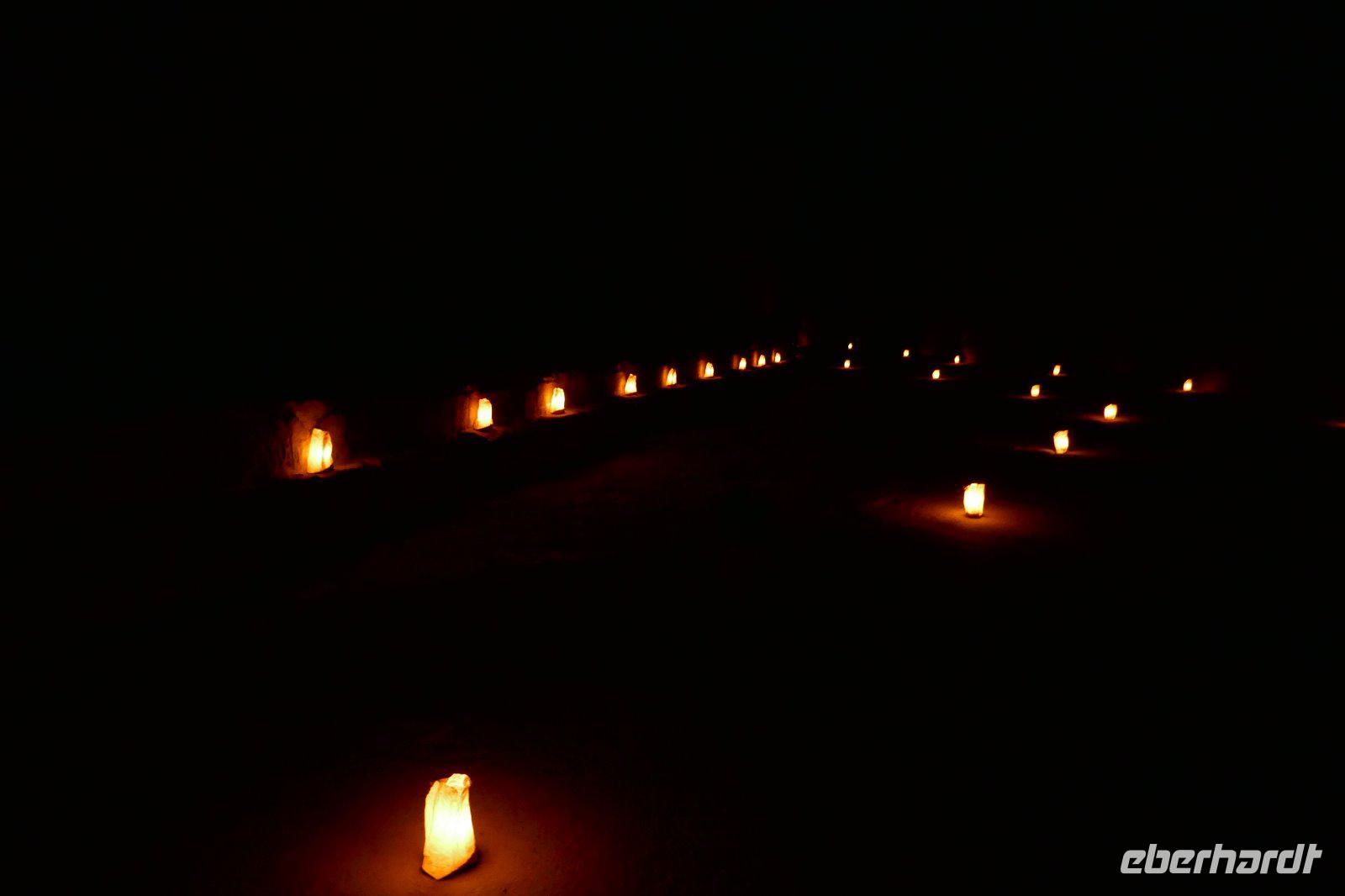 Im Vorfeld hast du ein Bild vor Augen wie es vielleicht dort aussehen könnte. Doch als wir dann vor Ort waren, sah alles ganz anders aus und noch viel eindrucksvoller. Man muss es wirklich gesehen haben um die unglaubliche Schönheit dieses Ortes wirklich fassen zu können. Kein Wunder also, dass es von der UNESCO als das achte Weltwunder bezeichnet wird, obwohl erst ein Bruchteil (10 %) ausgegraben wurde. Auf den Spuren Indiana Jones wollten wir Petra entdecken, auch wenn dazu ein Tag nicht ausreicht. Wir konzentrierten uns auf das wesentlich und durch die Schlucht Siq ging es zum Schatzhaus des Pharaos, das eigentlich ein Grabtempel war. Vielen ist dieser Ort bekannt aus dem Film „Indiana Jones und der letzte Kreuzzug", in dem die Fassade des Schatzhauses zu sehen war. Staunend verharrten wir hier und genossen den Anblick, der einem Postkartenmotiv gleich kam. Auf unserem weiteren Weg kamen wir an unzähligen weiteren Gräbern, Palästen und Theater vorbei. Immer wieder verändern sich durch das Licht die Farbnuancen, die die Gebäude in ein fast magisches Licht rückten. Auch die Felsen boten interessante Farbenspiele. Am Abend erlebten wir die Schatzkammer im Licht von tausenden von Kerzen. Dazu passende Musik und Tee - so klang dieser erlebnisreiche Tag aus.
