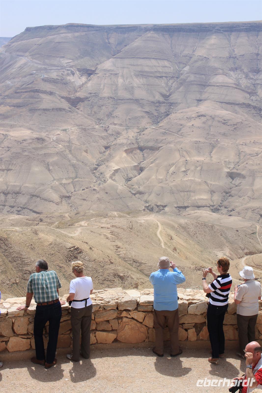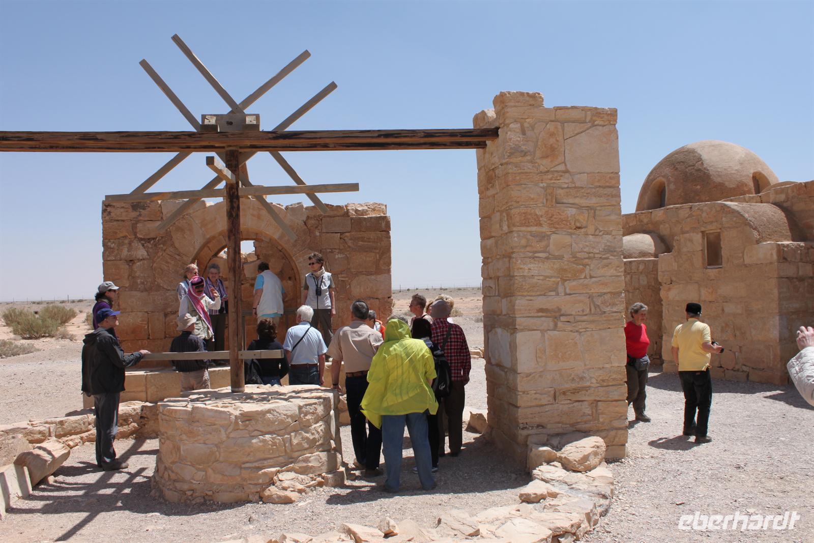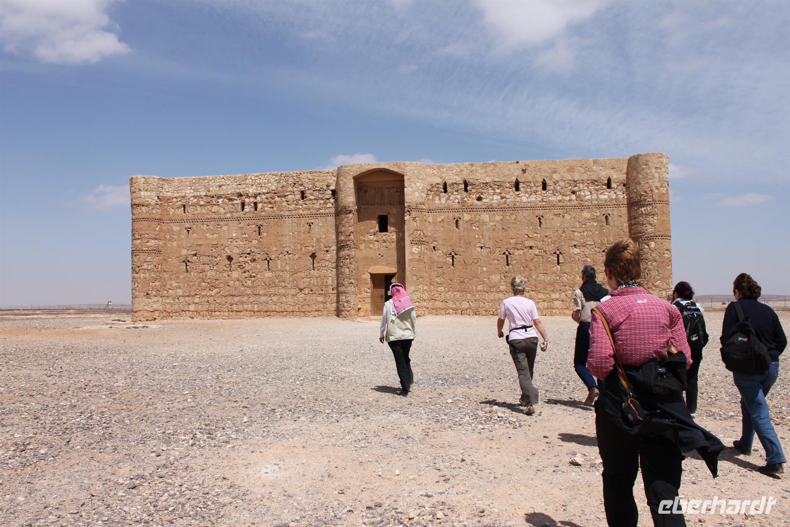 Nach einer unkomplizierten und gut organisierten Einreiseprozedur am Flughafen Amman sind wir nachts in unserem Reiseziel Jordanien angekommen. Der Katalogtitel hielt, was er verspricht, denn gleich am ersten Tag begaben wir uns „auf {die} Spuren von 6.500 Jahren Geschichte“. Wie verabredet wartete Mahmoud unser örtlicher Reiseleiter bereits früh in der Hotellobby, um mit uns nach einer kurzen Fahrt durch das moderne Amman in die Wüste abzubiegen und dort drei sogenannte Wüstenschlösser zu besichtigen.Wir tauchten ein in die Geschichte der Nomaden, Kreuzritter und den Ursprung des Glaubens an einen Gott ... besonders durch die lebhaften und äußerst interessanten Erläuterungen von Mahmoud.
