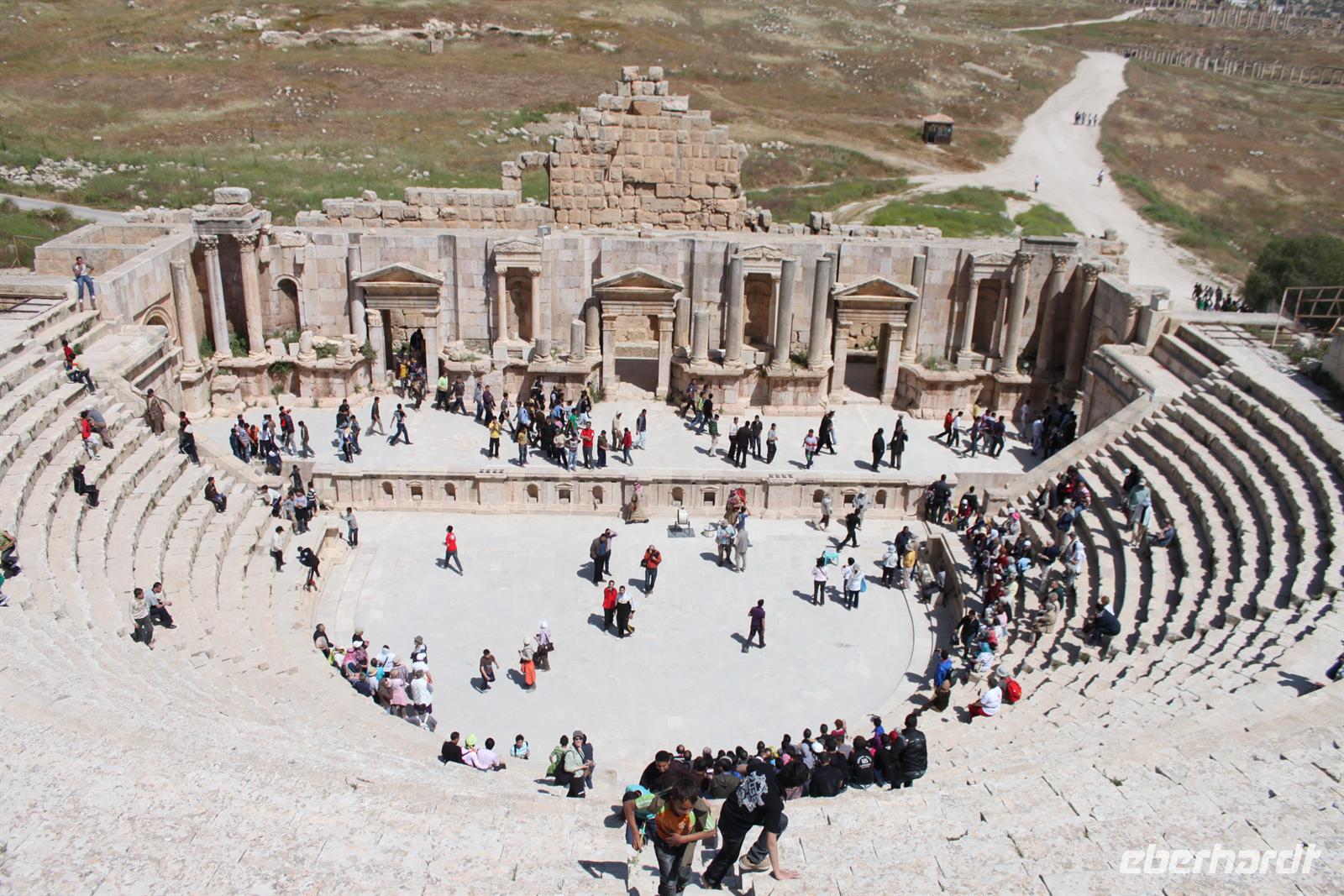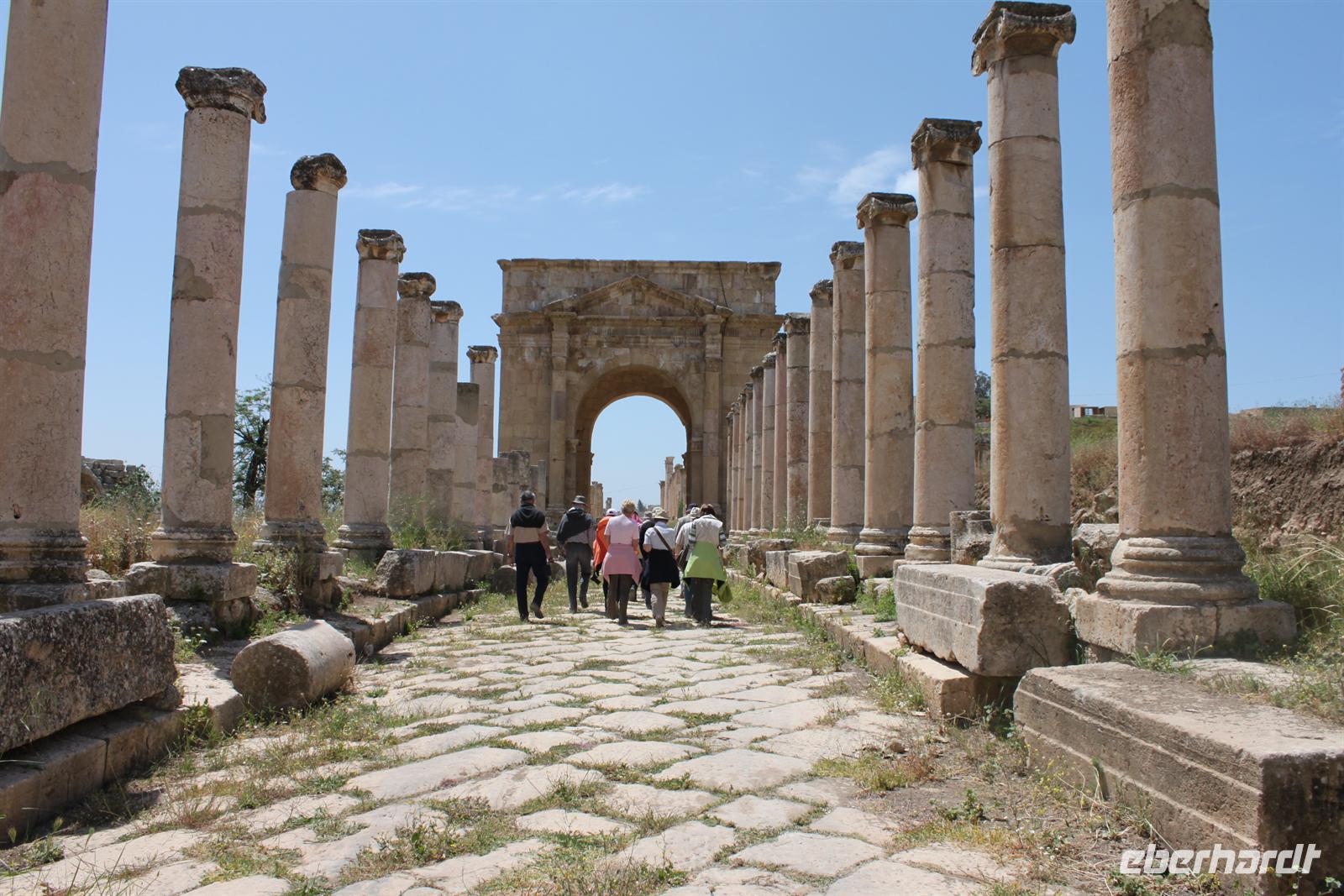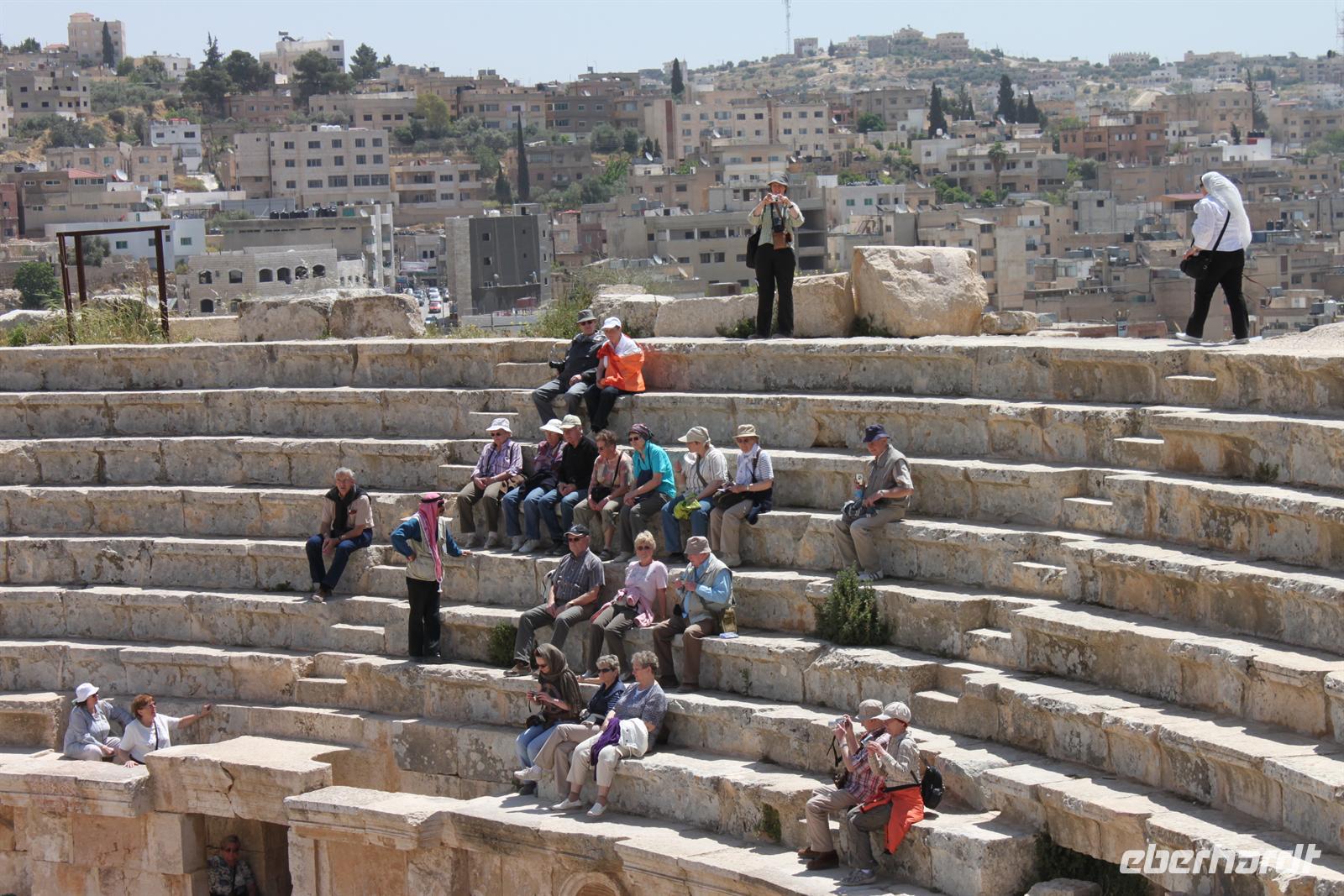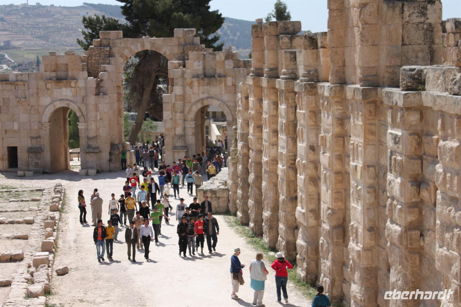 Ergänzend waren die Ausflüge der darauffolgenden Tage. So standen in Amman ein ausführlicher Besuch der Moschee Abdallah mit Ausführungen zur Religionsgeschichte ebenso wie die Besichtigung der Ausgrabungsstätte in Jerash sowie der Besuch der Burgen in Ajlun und Kerak auf dem Programm. Besonders Jerash beeindruckte uns, da es die besterhaltene römische Siedlung