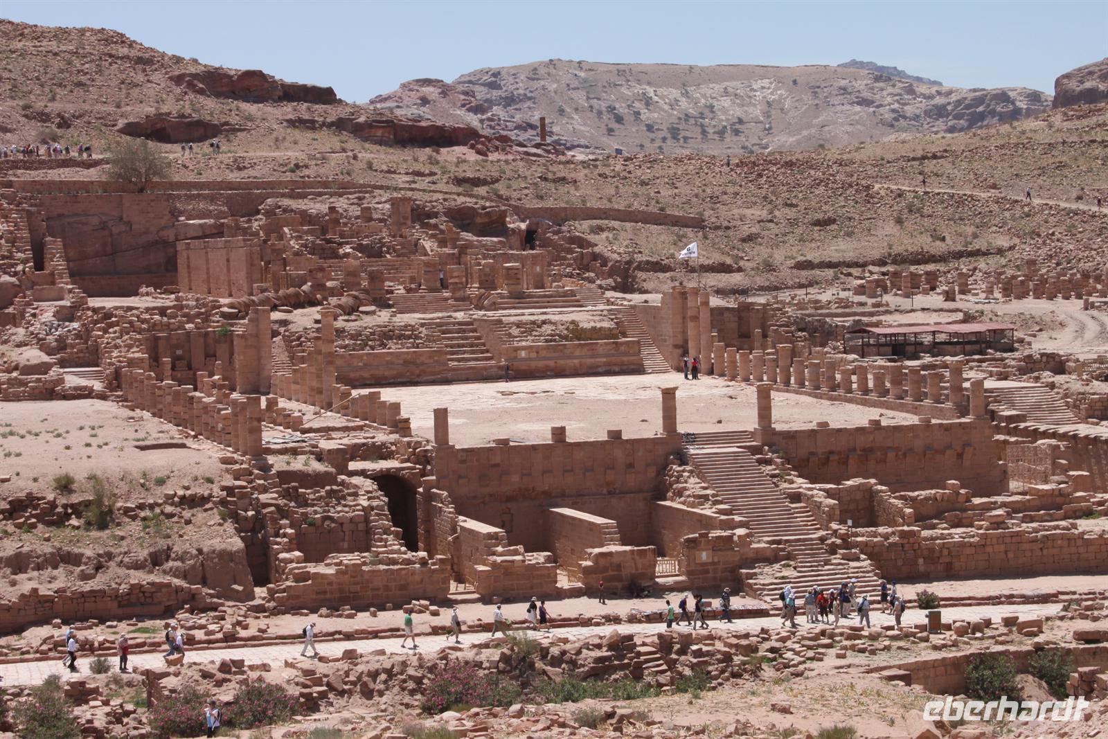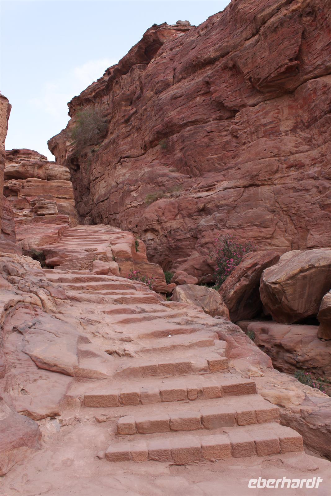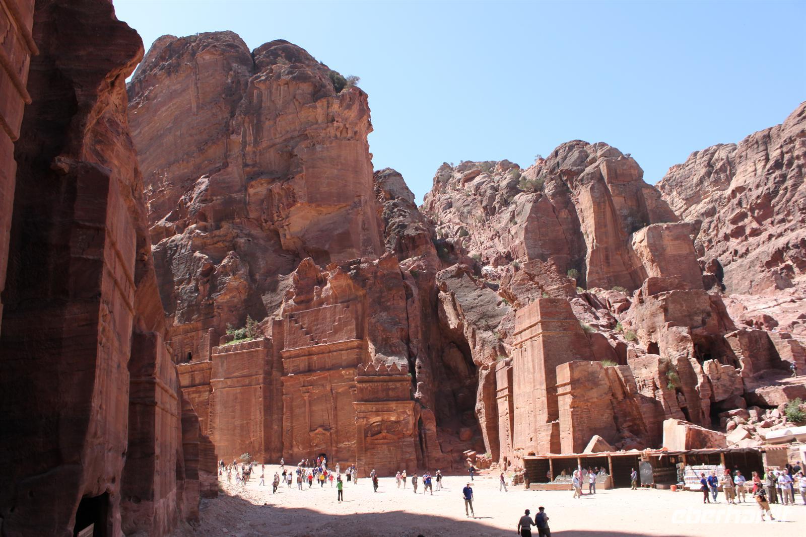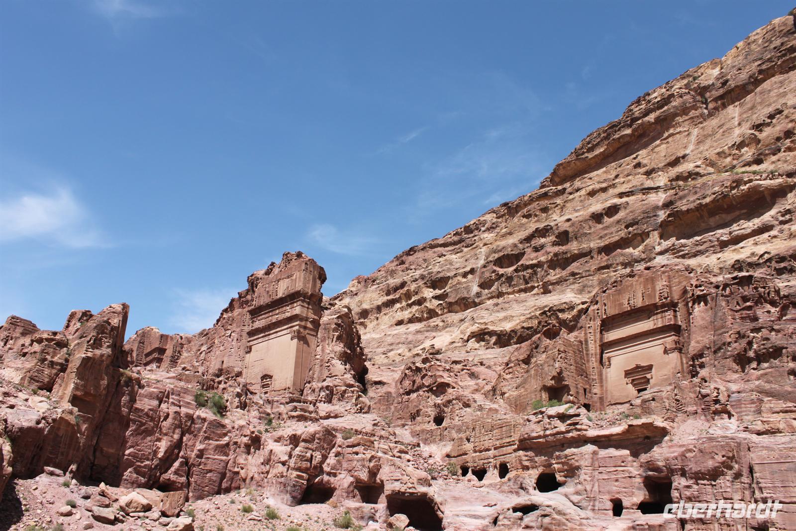 Am nächsten Tag war es schließlich soweit. Gleich am Morgen fuhren wir die kurze Strecke nach Petra und machten uns auf Entdeckungstour. Der Weg durch das Eingangstal, den sogenannten Sik, kam dem ein oder anderem am ersten Tag noch etwas lang vor. Spätestens aber in Anbetracht des Schatzhauses schienen alle Mühen des Fußmarsches belohnt. Es folgte eine sehr ausführliche Wanderung - natürlich gemeinsam mit Mahmoud, der wirklich immer bei der Gruppe war. Wir lernten die Hauptsehenswürdigkeiten Petras kennen und legten eine Strecke von mindestens 10 Kilometer zurück. An dieser Stelle möchte ich als Reisebegleiterin noch einmal ausdrücklich ein Lob an alle meine Gäste aussprechen, die diese Etappe trotz der großen Hitze gemeistert haben. Gelohnt hat es sich allemal! Am nächsten Tag nutzten 13 Gäste die Möglichkeit, Petra gemeinsam mit Mahmoud und mir zu erkunden. Ein Teil unserer Gruppe ging mit Mahmoud auf den Opferberg und drei weitere Gäste machtern sich mit mir auf den Weg zum Kloster Ed Deir. Ohne Ausnahme war es für jeden ein unvergleichlich schöner Tag. Wer im Hotel blieb konnte sich stundenlang am Pool entspannen, spazieren gehen oder einfach mal „nur“ ein Buch lesen.