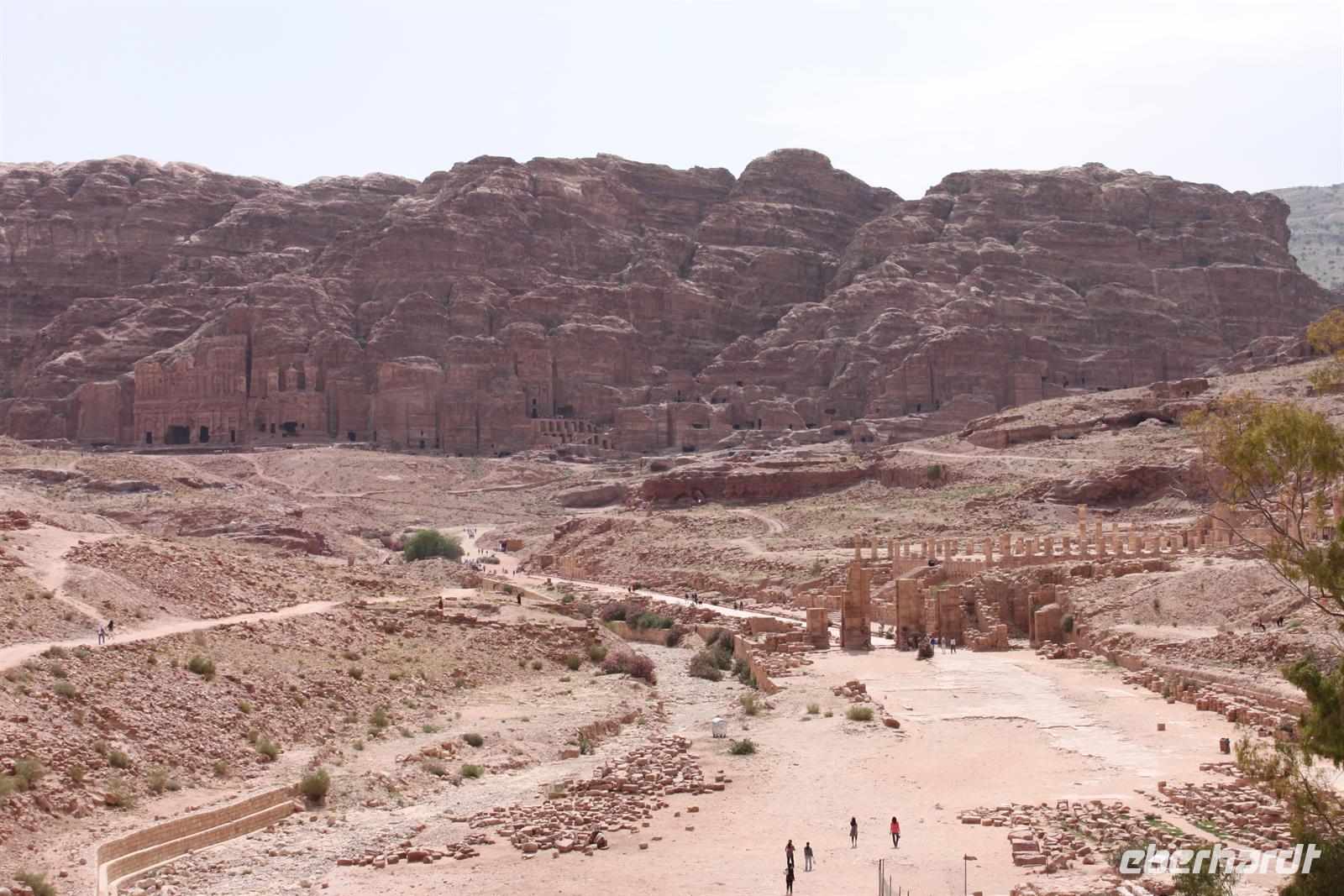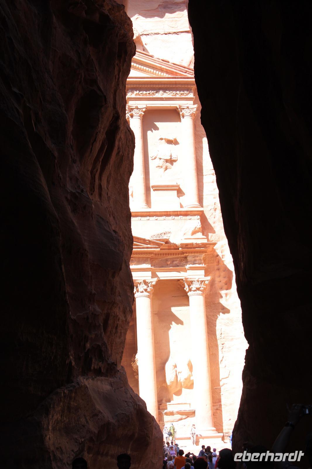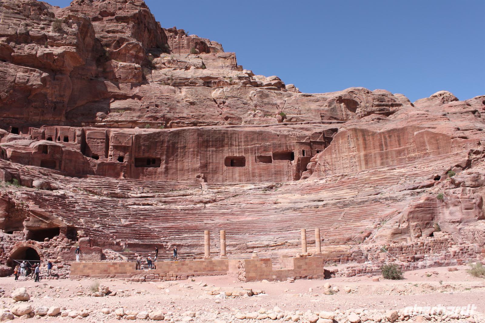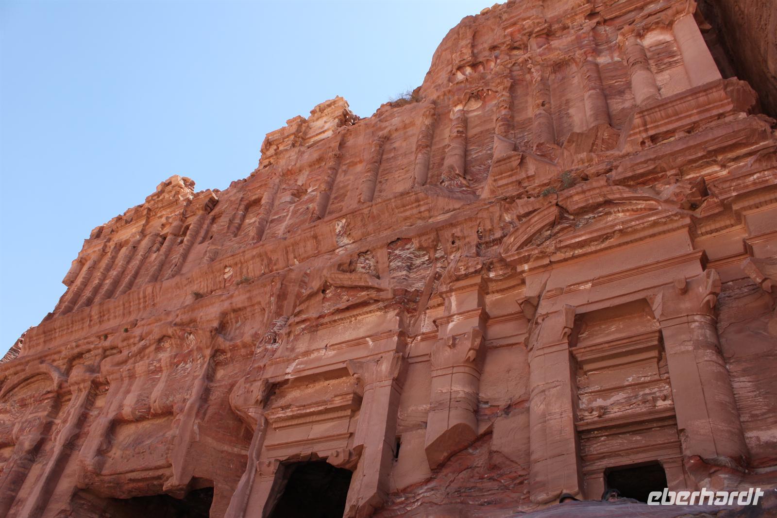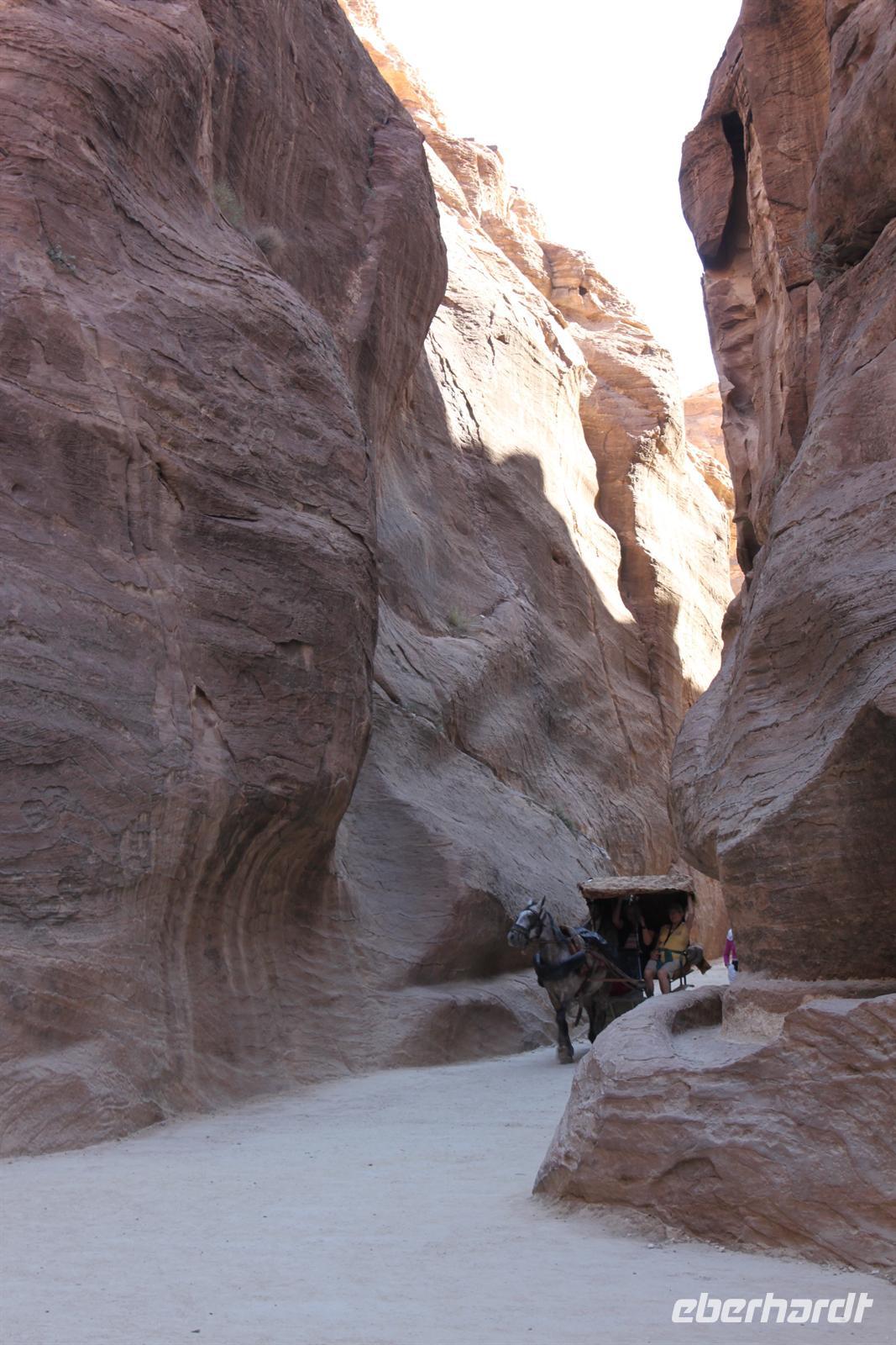 Am nächsten Tag war es schließlich soweit. Gleich am Morgen fuhren wir die kurze Strecke nach Petra und machten uns auf Entdeckungstour. Der Weg durch das Eingangstal, den sogenannten Sik, kam dem ein oder anderem am ersten Tag noch etwas lang vor. Spätestens aber in Anbetracht des Schatzhauses schienen alle Mühen des Fußmarsches belohnt. Es folgte eine sehr ausführliche Wanderung - natürlich gemeinsam mit Mahmoud, der wirklich immer bei der Gruppe war. Wir lernten die Hauptsehenswürdigkeiten Petras kennen und legten eine Strecke von mindestens 10 Kilometer zurück. An dieser Stelle möchte ich als Reisebegleiterin noch einmal ausdrücklich ein Lob an alle meine Gäste aussprechen, die diese Etappe trotz der großen Hitze gemeistert haben. Gelohnt hat es sich allemal! Am nächsten Tag nutzten 13 Gäste die Möglichkeit, Petra gemeinsam mit Mahmoud und mir zu erkunden. Ein Teil unserer Gruppe ging mit Mahmoud auf den Opferberg und drei weitere Gäste machtern sich mit mir auf den Weg zum Kloster Ed Deir. Ohne Ausnahme war es für jeden ein unvergleichlich schöner Tag. Wer im Hotel blieb konnte sich stundenlang am Pool entspannen, spazieren gehen oder einfach mal „nur“ ein Buch lesen.