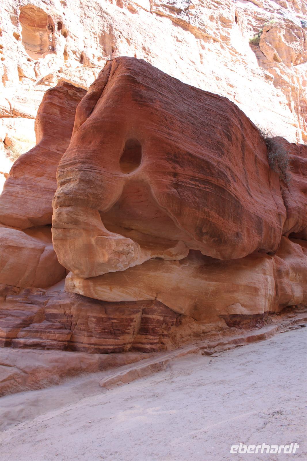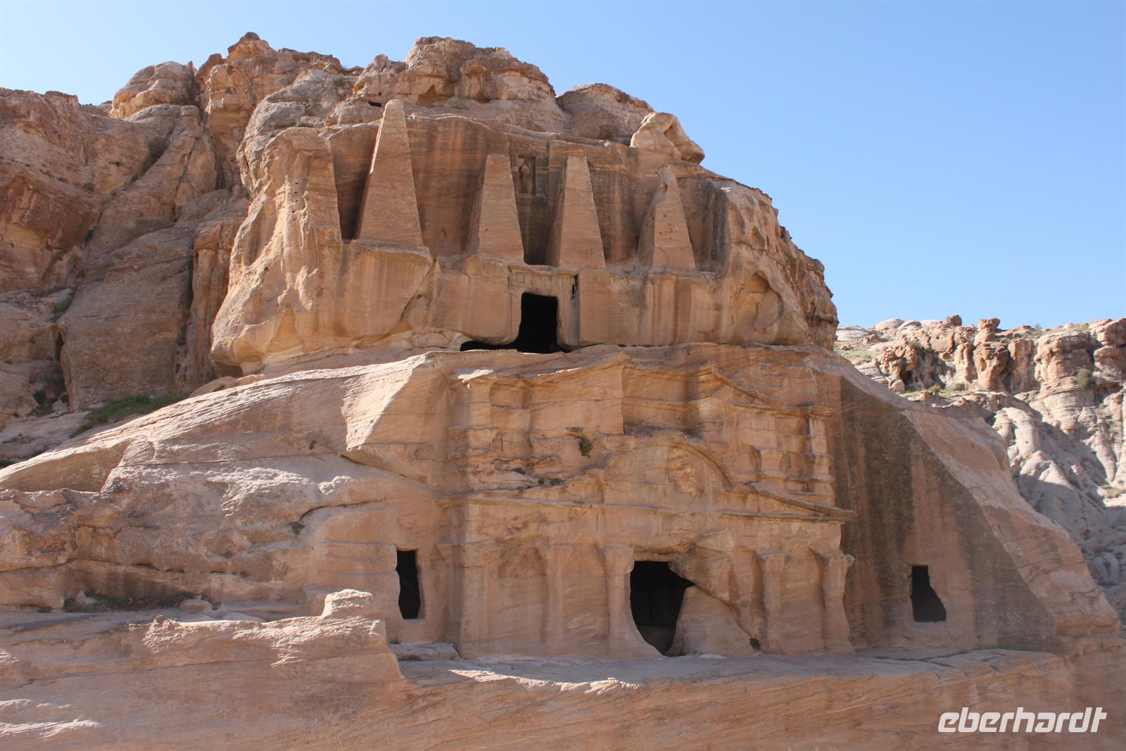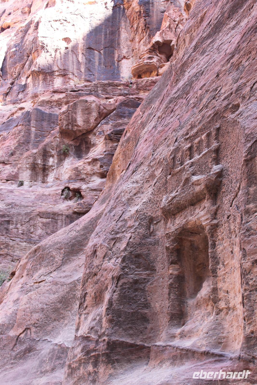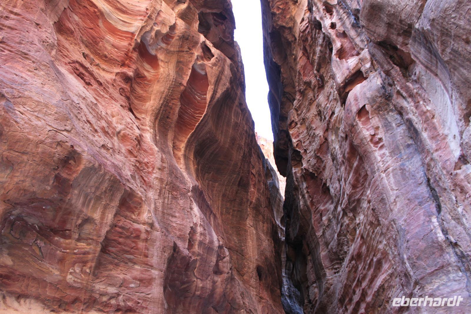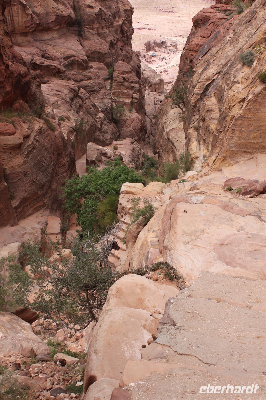 Am nächsten Tag war es schließlich soweit. Gleich am Morgen fuhren wir die kurze Strecke nach Petra und machten uns auf Entdeckungstour. Der Weg durch das Eingangstal, den sogenannten Sik, kam dem ein oder anderem am ersten Tag noch etwas lang vor. Spätestens aber in Anbetracht des Schatzhauses schienen alle Mühen des Fußmarsches belohnt. Es folgte eine sehr ausführliche Wanderung - natürlich gemeinsam mit Mahmoud, der wirklich immer bei der Gruppe war. Wir lernten die Hauptsehenswürdigkeiten Petras kennen und legten eine Strecke von mindestens 10 Kilometer zurück. An dieser Stelle möchte ich als Reisebegleiterin noch einmal ausdrücklich ein Lob an alle meine Gäste aussprechen, die diese Etappe trotz der großen Hitze gemeistert haben. Gelohnt hat es sich allemal! Am nächsten Tag nutzten 13 Gäste die Möglichkeit, Petra gemeinsam mit Mahmoud und mir zu erkunden. Ein Teil unserer Gruppe ging mit Mahmoud auf den Opferberg und drei weitere Gäste machtern sich mit mir auf den Weg zum Kloster Ed Deir. Ohne Ausnahme war es für jeden ein unvergleichlich schöner Tag. Wer im Hotel blieb konnte sich stundenlang am Pool entspannen, spazieren gehen oder einfach mal „nur“ ein Buch lesen.