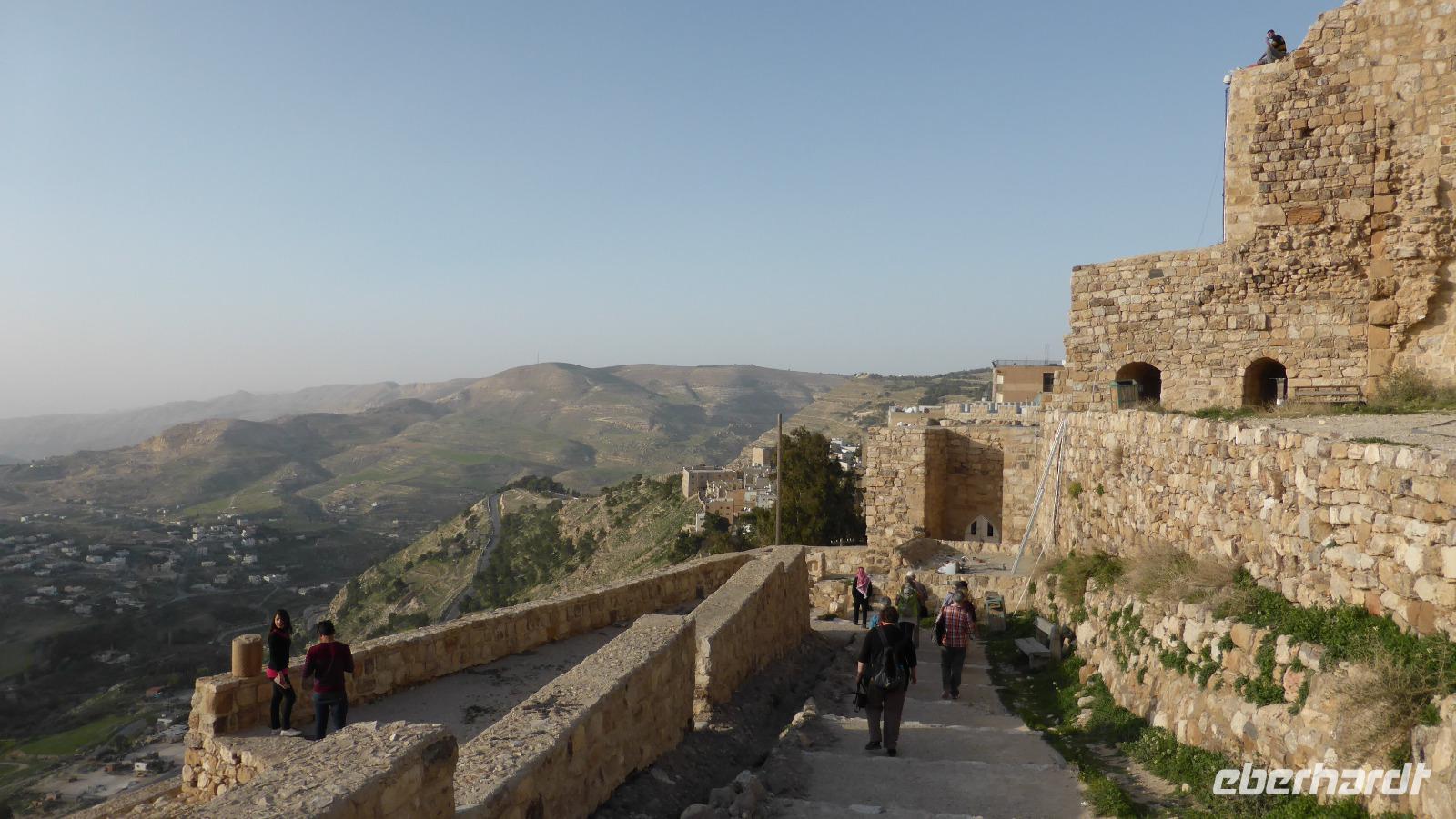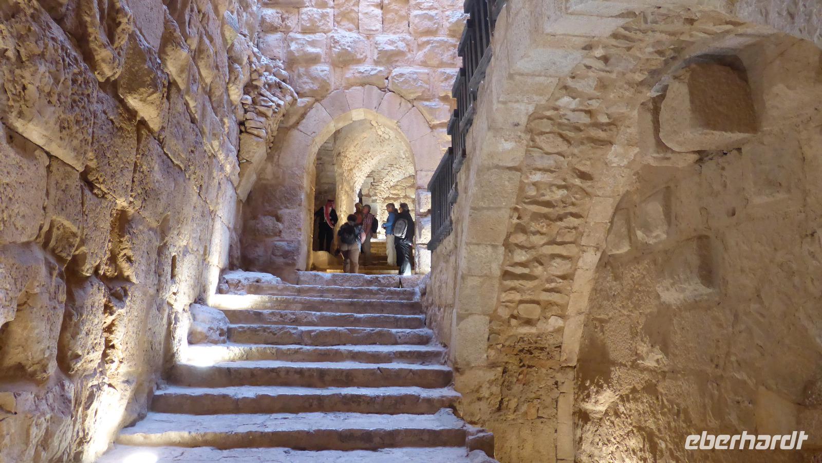 Nachmittags erreichen wir Kerak, wo wir die auf die 930 Meter Höhe gelegene Kreuzritterfestung besichtigen. Die Festung wurde im 12. Jahrhundert von Saladin mehrmals belagert und schließlich eingenommen.