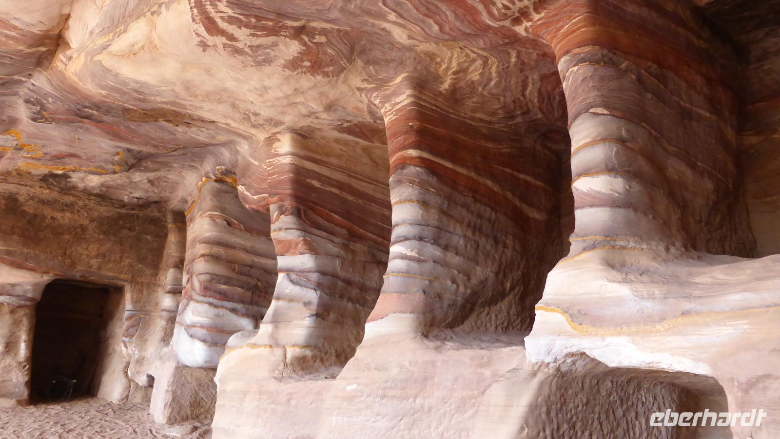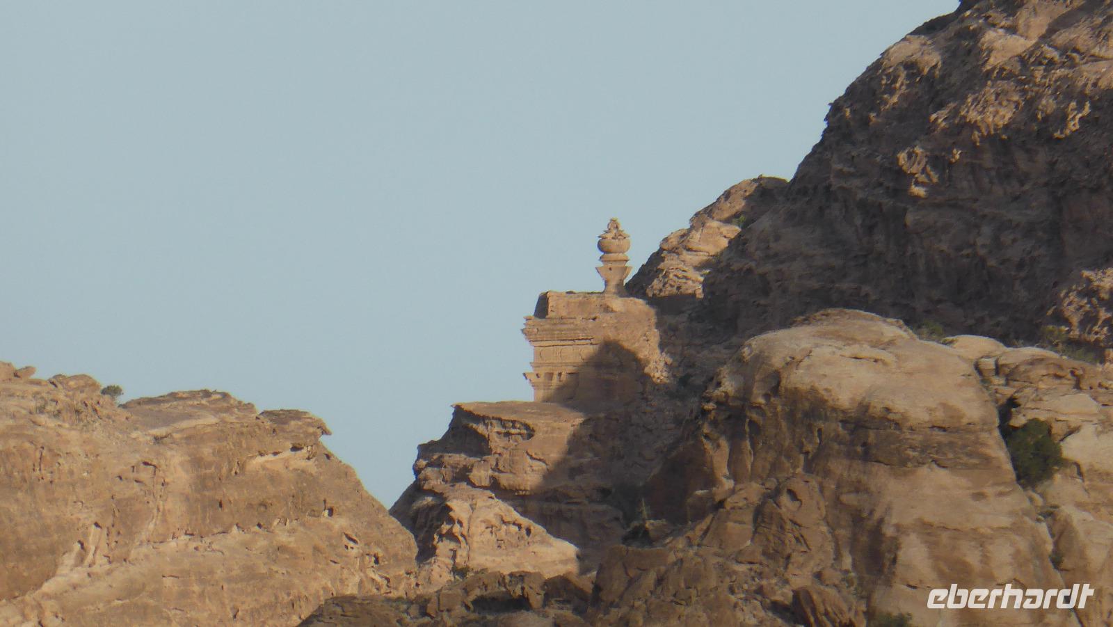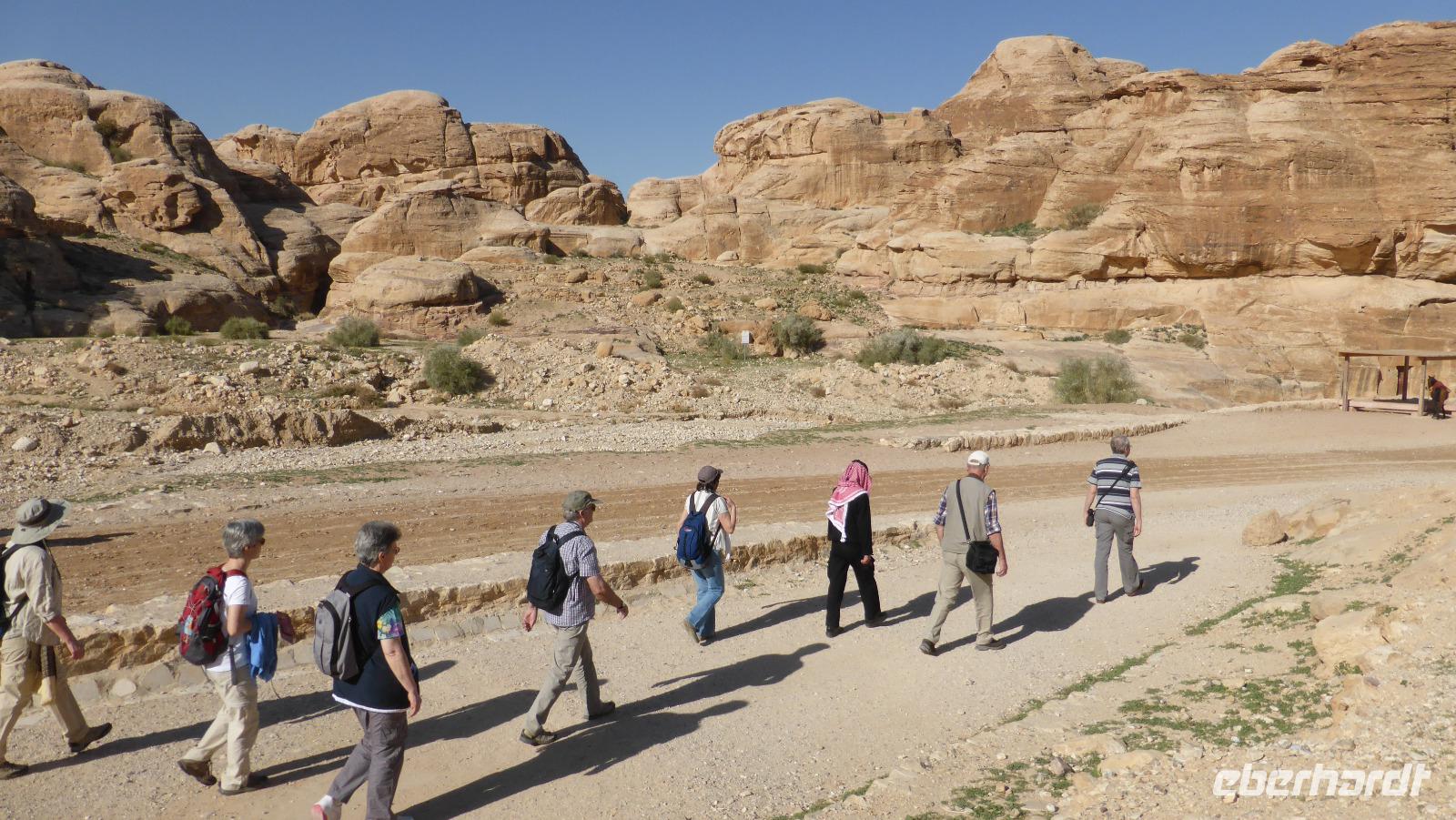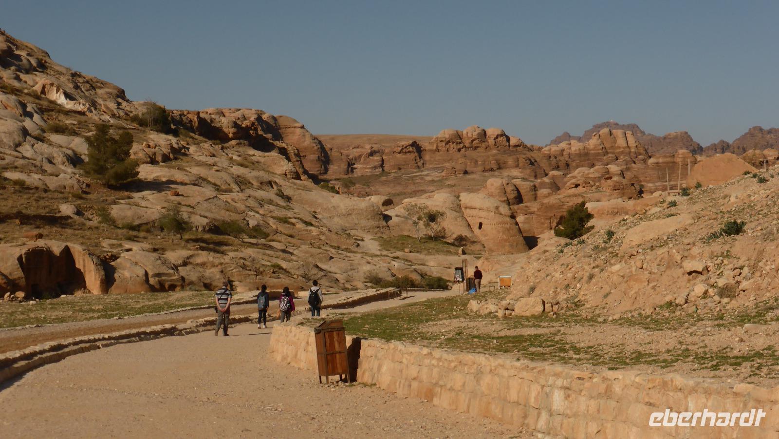 Petra wird oft auf den Siq und das Schatzhaus reduziert. Jetzt bekommen wir eine Vorstellung, dass wir am Schatzhaus gerade mal am Anfang einer großen Stadt stehen, die einst bis zu 30.000 Bewohner zählte. Acht Stunden dauert heute unsere Besichtigung der Sehenswürdigkeiten im Tal, darunter sind Theater, Großer Tempel, Festung Qasr al Bint, Byzantinische Kirche, Felsengräber.