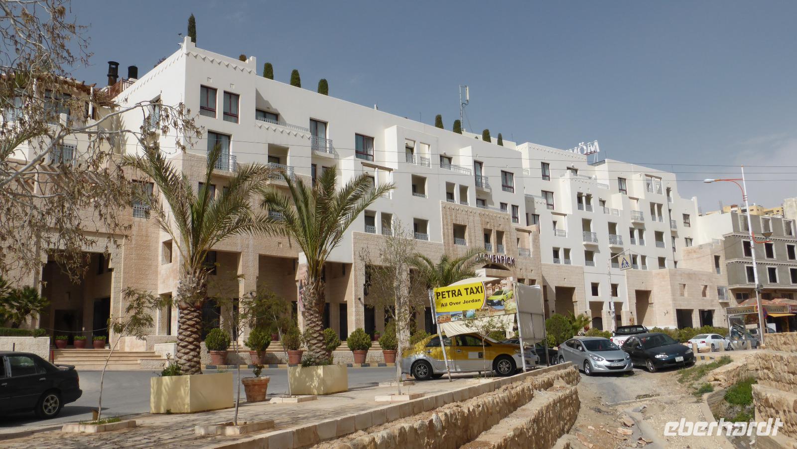 Abends erreichen wir Wadi Musa, Ausgangspunkt für Besichtigungen im historischen Petra. Unser Hotel befindet sich 100 Meter neben dem Besuchereingang, besser geht´s nicht.