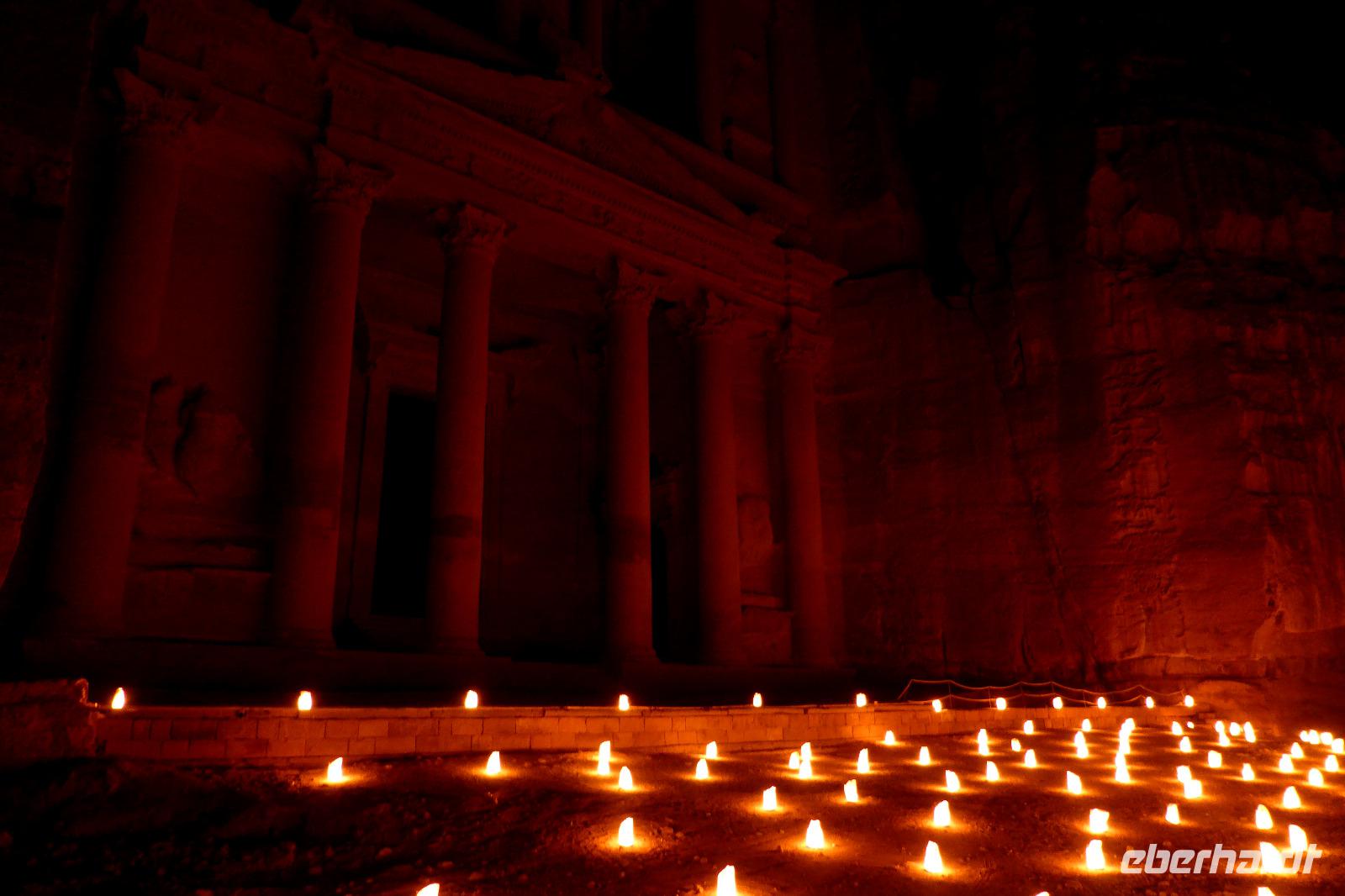 Noch ein Blick auf´s Schatzhaus im Kerzenschein, damit endet unser Besuch in Petra.