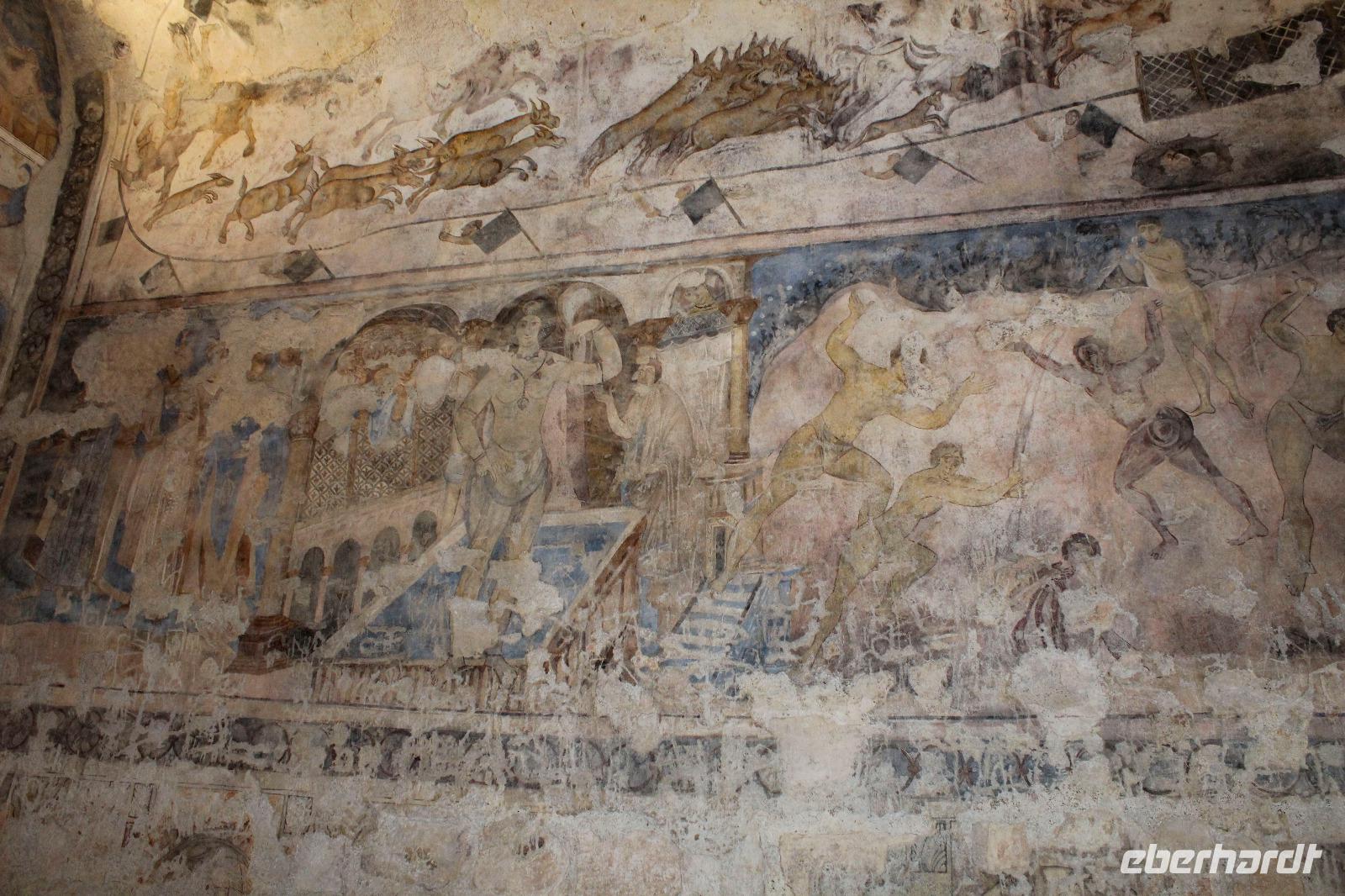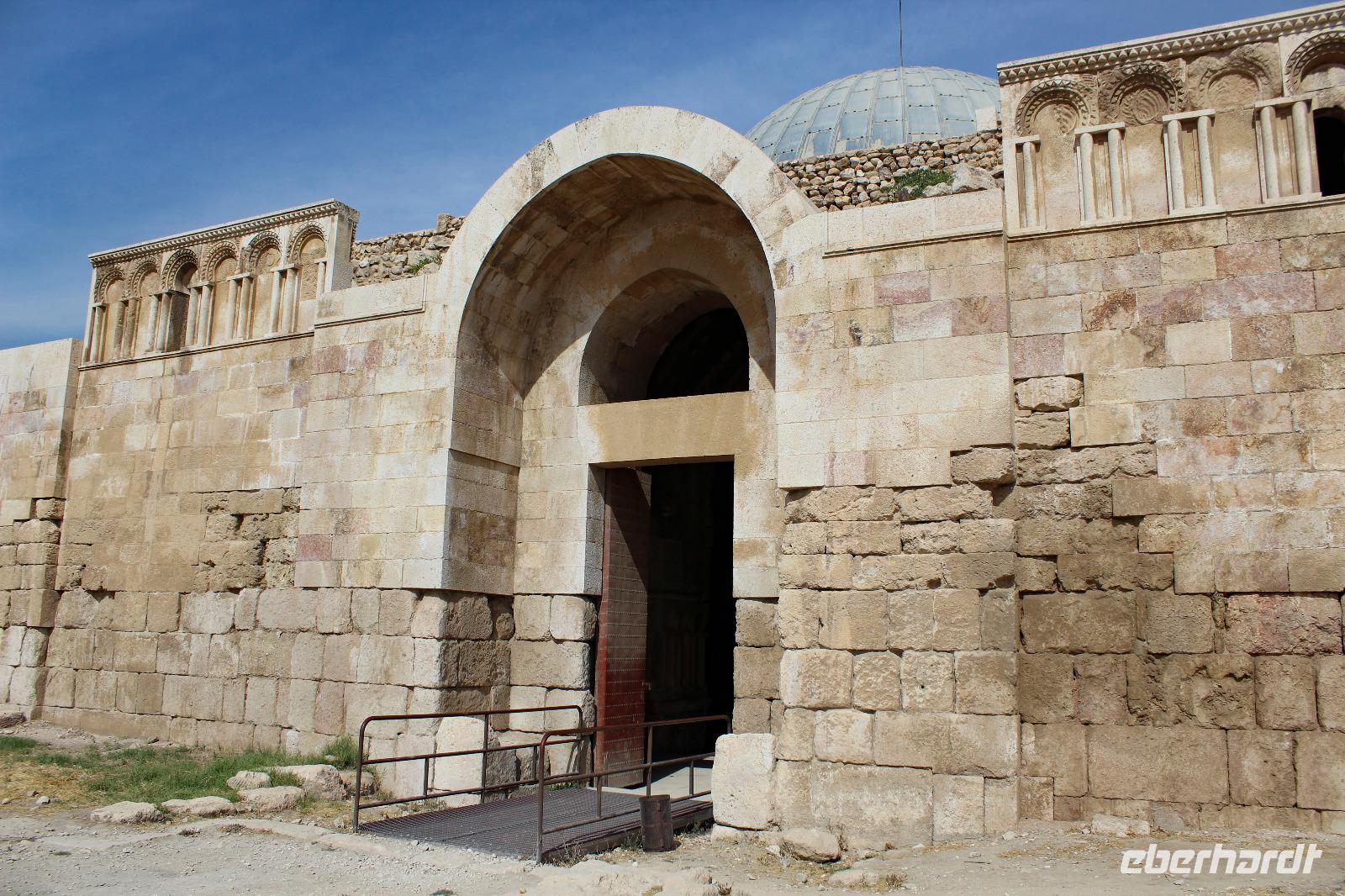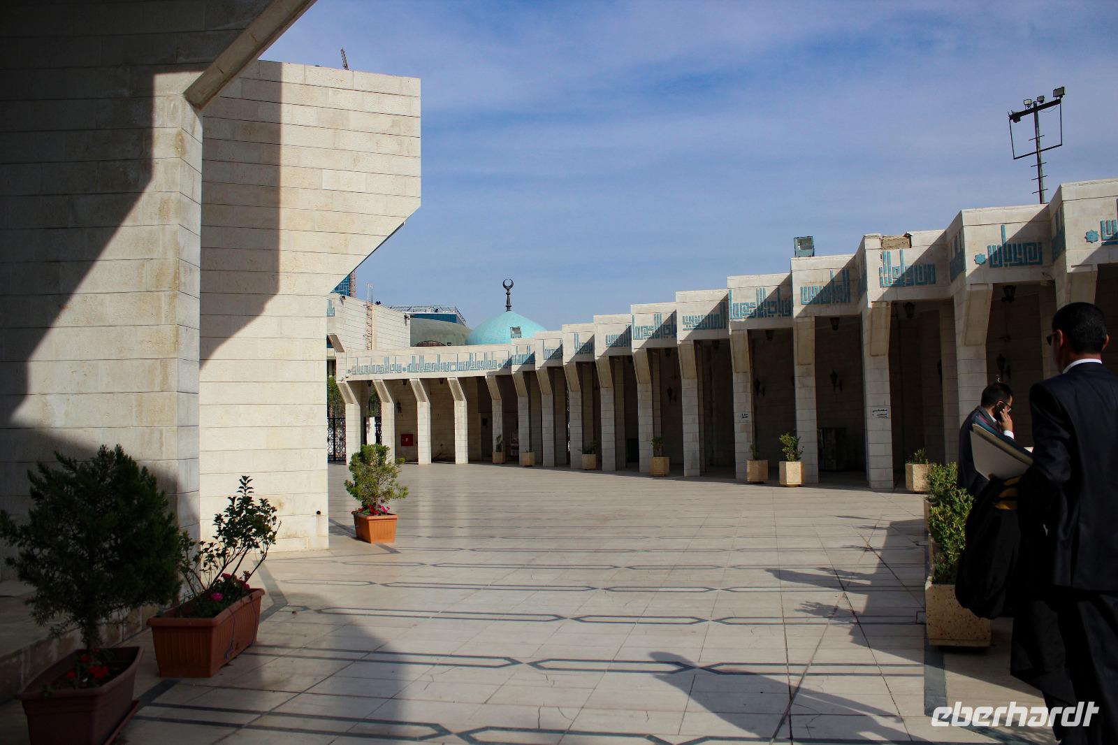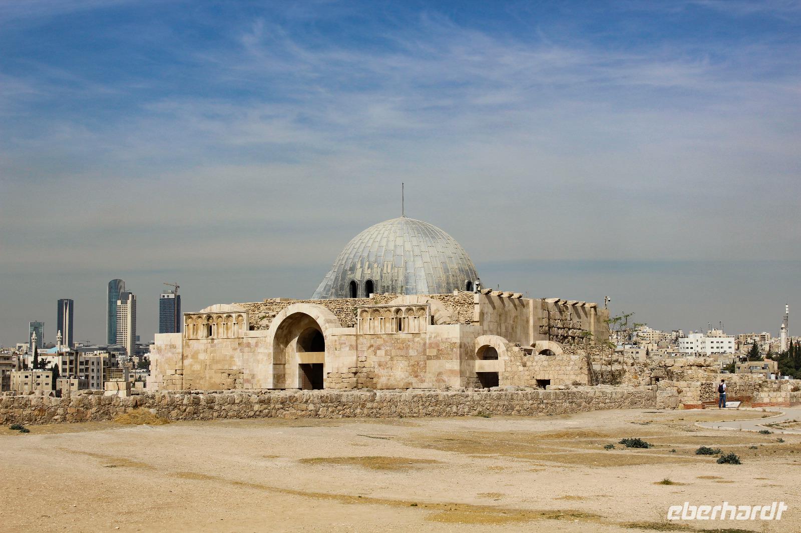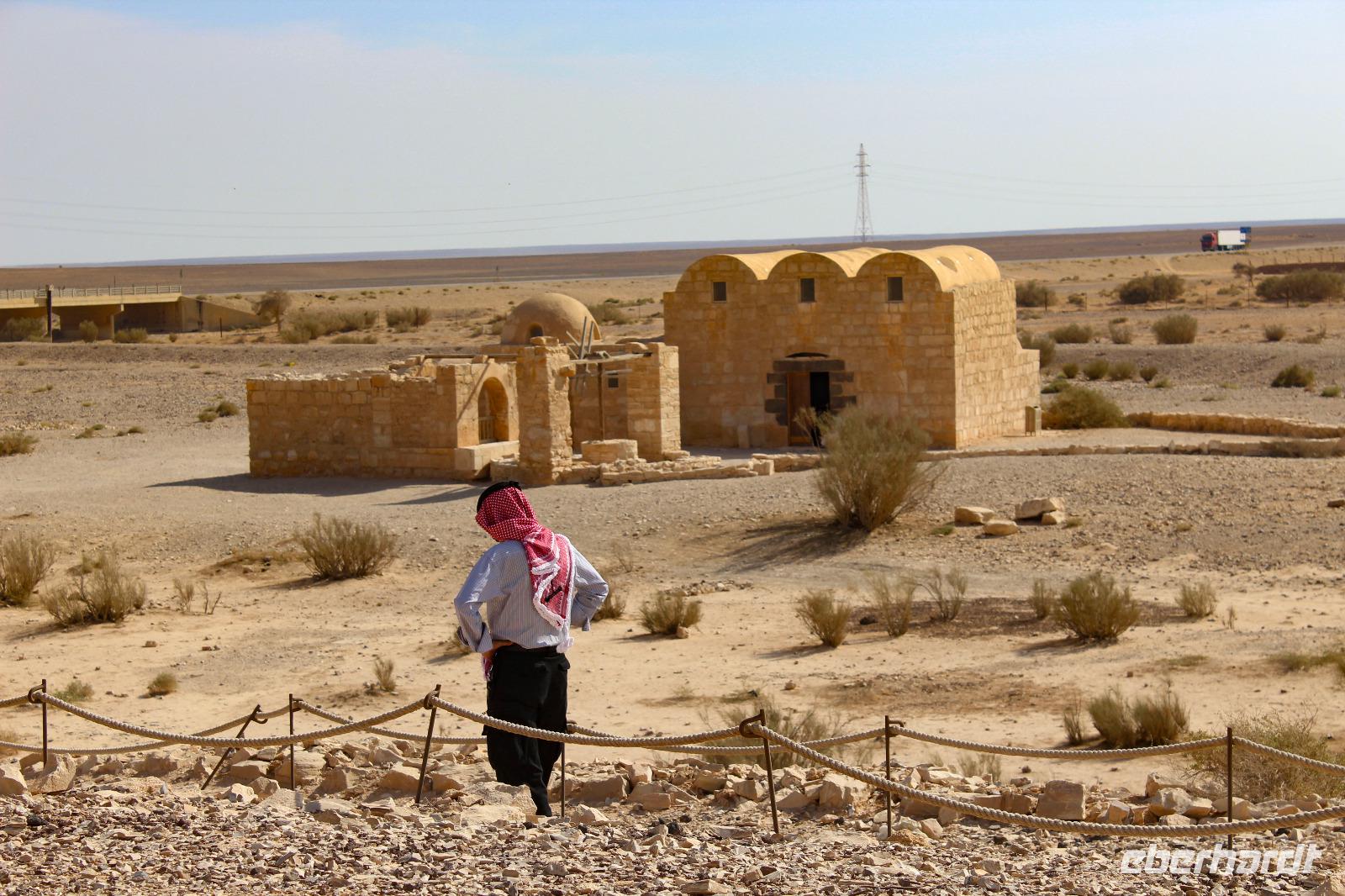 Nach dem Frühstück treffen wir uns mit unserem Reiseleiter Mahmoud in der Hotellobby. Gemeinsam wollen wir heute Amman erkunden. Mit dem Bus fahren wir als erstes zur König Abdullah I. Moschee, auch „Blaue Moschee" genannt. Hier werden die Frauen dann in geeignete Kleidung gehüllt und Mahmoud erzählt uns einiges über den Islam und seine heiligen Schriften. Unser nächster Stopp ist die Zitadelle - dieser Hügel wurde schon in der Antike besiedelt. Von hier aus haben wir auch einen wunderbaren Blick über die gesamte Stadt die sich über die umliegenden Berge erstreckt. Unter anderem sehen wir auch das Römische Theater. Nach einem Rundgang mit vielen nützlichen Informationen besuchen wir noch das Archäologische Museum. Den Nachmittag verbringen wir damit die berühmten Wüstenschlösser zu besichtigen. Al Azraq wurde aus schwarzem Basalt erbaut und wir können den Nutzen von vielen Gebäuden noch erkennen. So gibt es zum Beispiel Stallungen und eine Moschee. Qusair Amra liegt mitten in der jordanischen Wüste und besteht aus einem Thronsaal und einem Bad im römischen Stil. Mit Taschenlampen können wir uns selbst die Fresken an den dunkelsten Stellen des Raumes ansehen. Das dritte Wüstenschloss an diesem Tag heißt Qasr al-Kharana und wurde wahrscheinlich als Übernachtungsstation an einer Karawanenstraße genutzt. Nach der Besichtigung dieses UNESCO-Weltkulturerbes geht es wieder zurück ins Hotel wo uns schon ein leckeres Abendessen erwartet.