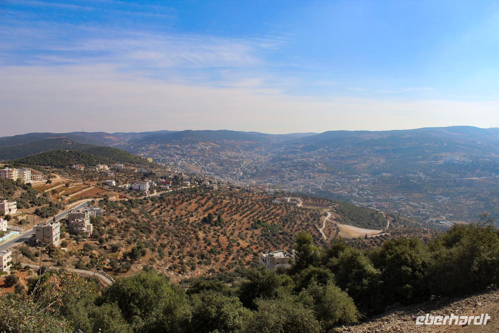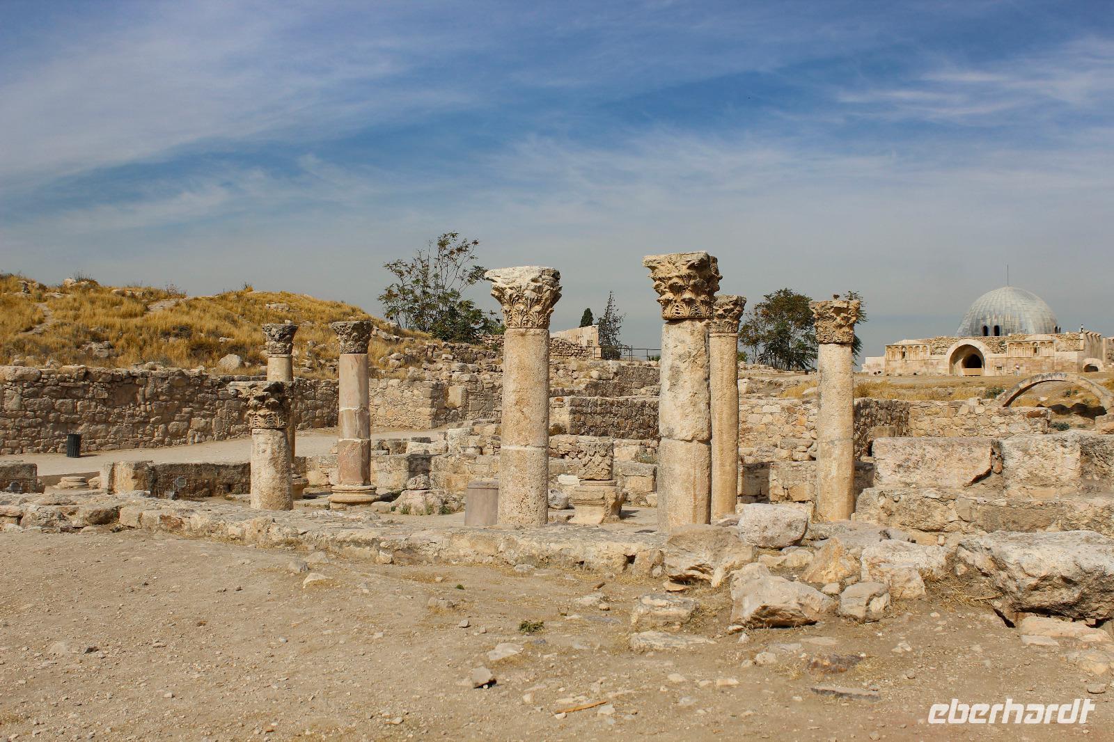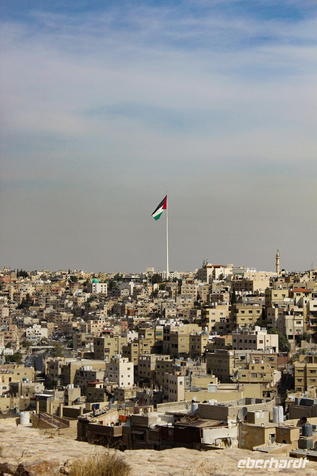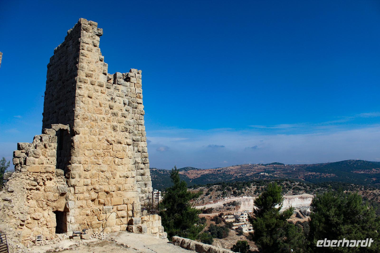 Nach dem Frühstück fahren wir in den Norden Jordaniens. Im Gegensatz zum Rest des Landes finden wir hier grüne Bäume und wir sehen einen deutlichen Kontrast zur Landschaft der letzten Tage. Viele Einheimische kommen am Wochenende hier her um sich zum Essen zu treffen. Aufgeforstete Pinien- und immergrüne Steineichenwälder spenden Schatten. Bei einem Fotostopp können wir schon den ersten guten Blick auf den Berg Qalaat ar-Rabad und die Festung von Ajlun erhaschen. Diese mittelalterliche Burg aus dem 12. Jahrhundert wurde zum Schutz der Pilger nach Mekka errichtet. Auf dem Rückweg halten wir in der antiken Stadt Jerash. Gemeinsam treten wir durch den Hadrian-Bogen und besichtigen den Zeus-Tempel und das Südtheater. Eine kleine Dudelsack-Kapelle spielt die schottische Nationalhymne und danach demonstriert Mahmoud uns die unglaubliche Akustik des Theaters. Egal wie hoch wir sitzen, wenn Mahmoud in der Mitte steht und zu uns spricht, können wir ihn alle hören. Weiter geht es zum Artemis-Tempel und dem Nordtheater, bis wir schließlich auf der von Säulen gesäumten Hauptstraße ankommen, welche uns wieder zurück zum Ovalen Platz führt. Bevor es zurück zum Hotel geht machen wir noch eine Pause in einem Restaurant in Jerash. Zurück in Amman haben alle noch ein wenig Freizeit bevor wir uns zum Abendessen treffen.