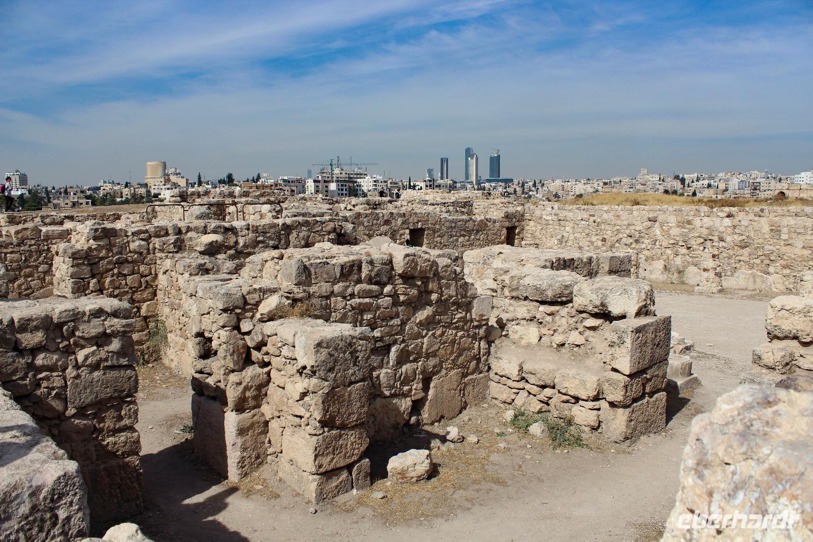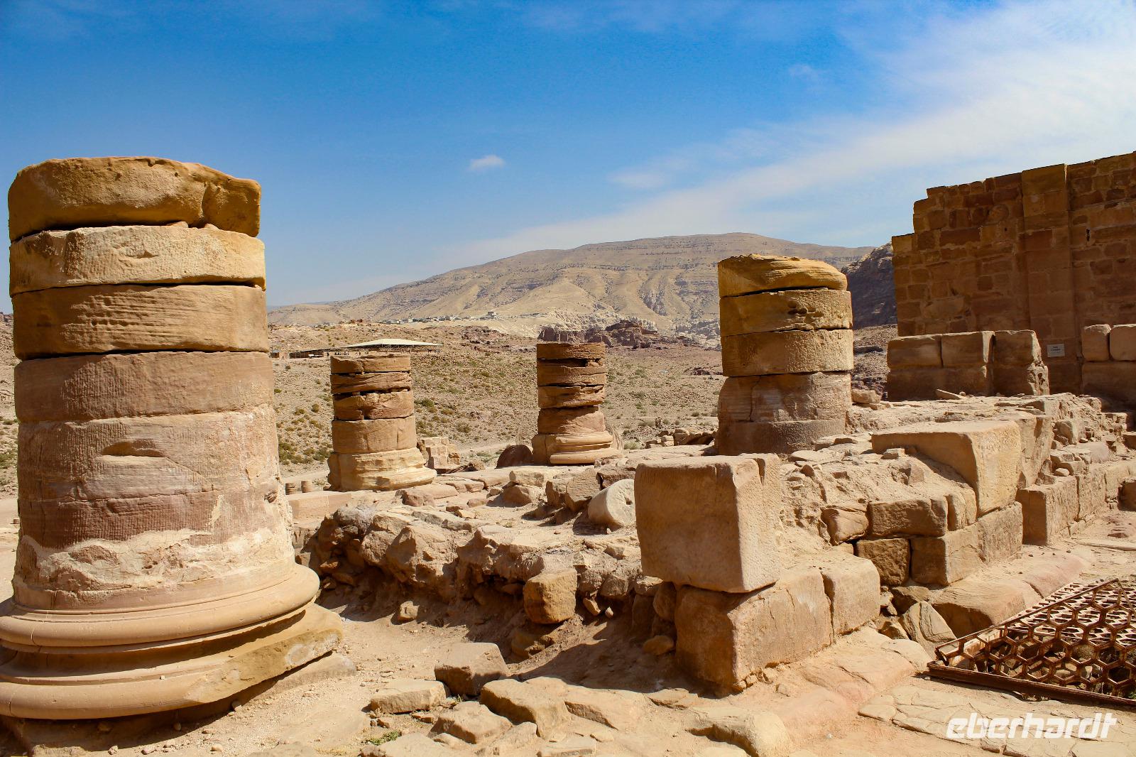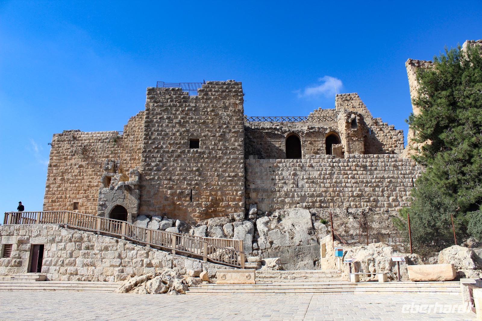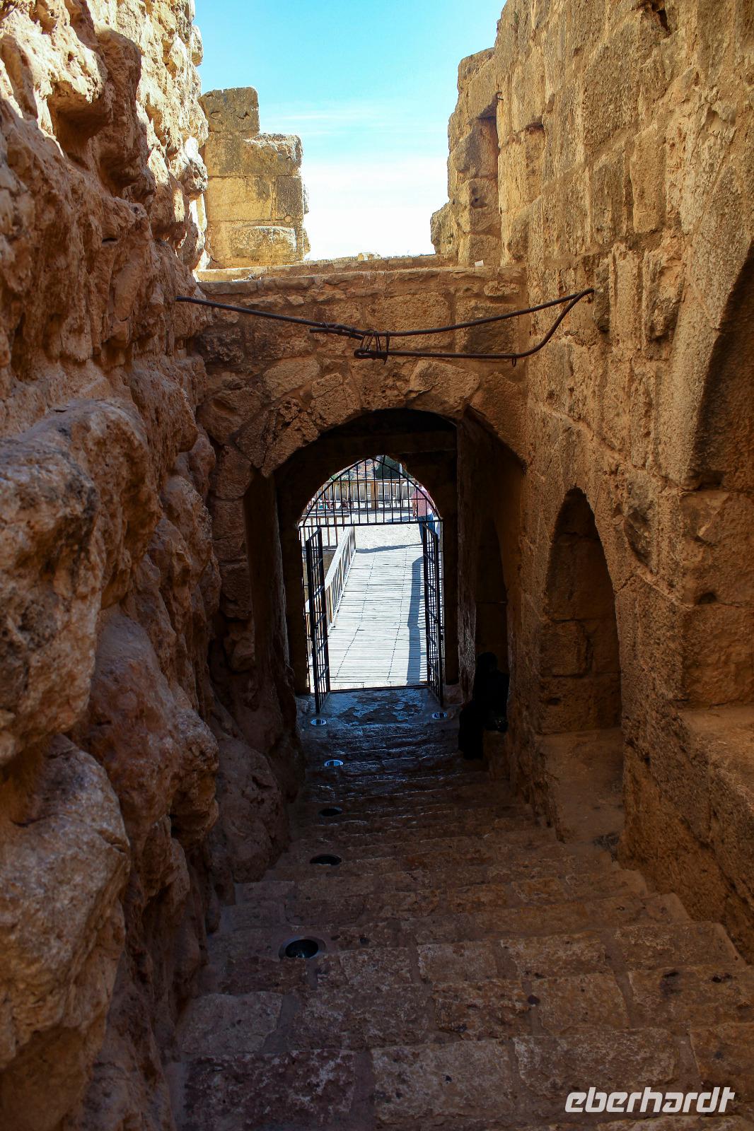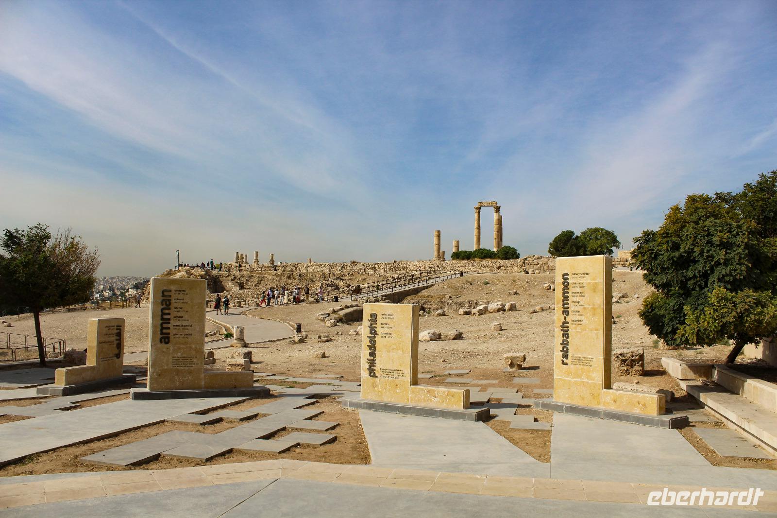 Nach dem Frühstück fahren wir in den Norden Jordaniens. Im Gegensatz zum Rest des Landes finden wir hier grüne Bäume und wir sehen einen deutlichen Kontrast zur Landschaft der letzten Tage. Viele Einheimische kommen am Wochenende hier her um sich zum Essen zu treffen. Aufgeforstete Pinien- und immergrüne Steineichenwälder spenden Schatten. Bei einem Fotostopp können wir schon den ersten guten Blick auf den Berg Qalaat ar-Rabad und die Festung von Ajlun erhaschen. Diese mittelalterliche Burg aus dem 12. Jahrhundert wurde zum Schutz der Pilger nach Mekka errichtet. Auf dem Rückweg halten wir in der antiken Stadt Jerash. Gemeinsam treten wir durch den Hadrian-Bogen und besichtigen den Zeus-Tempel und das Südtheater. Eine kleine Dudelsack-Kapelle spielt die schottische Nationalhymne und danach demonstriert Mahmoud uns die unglaubliche Akustik des Theaters. Egal wie hoch wir sitzen, wenn Mahmoud in der Mitte steht und zu uns spricht, können wir ihn alle hören. Weiter geht es zum Artemis-Tempel und dem Nordtheater, bis wir schließlich auf der von Säulen gesäumten Hauptstraße ankommen, welche uns wieder zurück zum Ovalen Platz führt. Bevor es zurück zum Hotel geht machen wir noch eine Pause in einem Restaurant in Jerash. Zurück in Amman haben alle noch ein wenig Freizeit bevor wir uns zum Abendessen treffen.