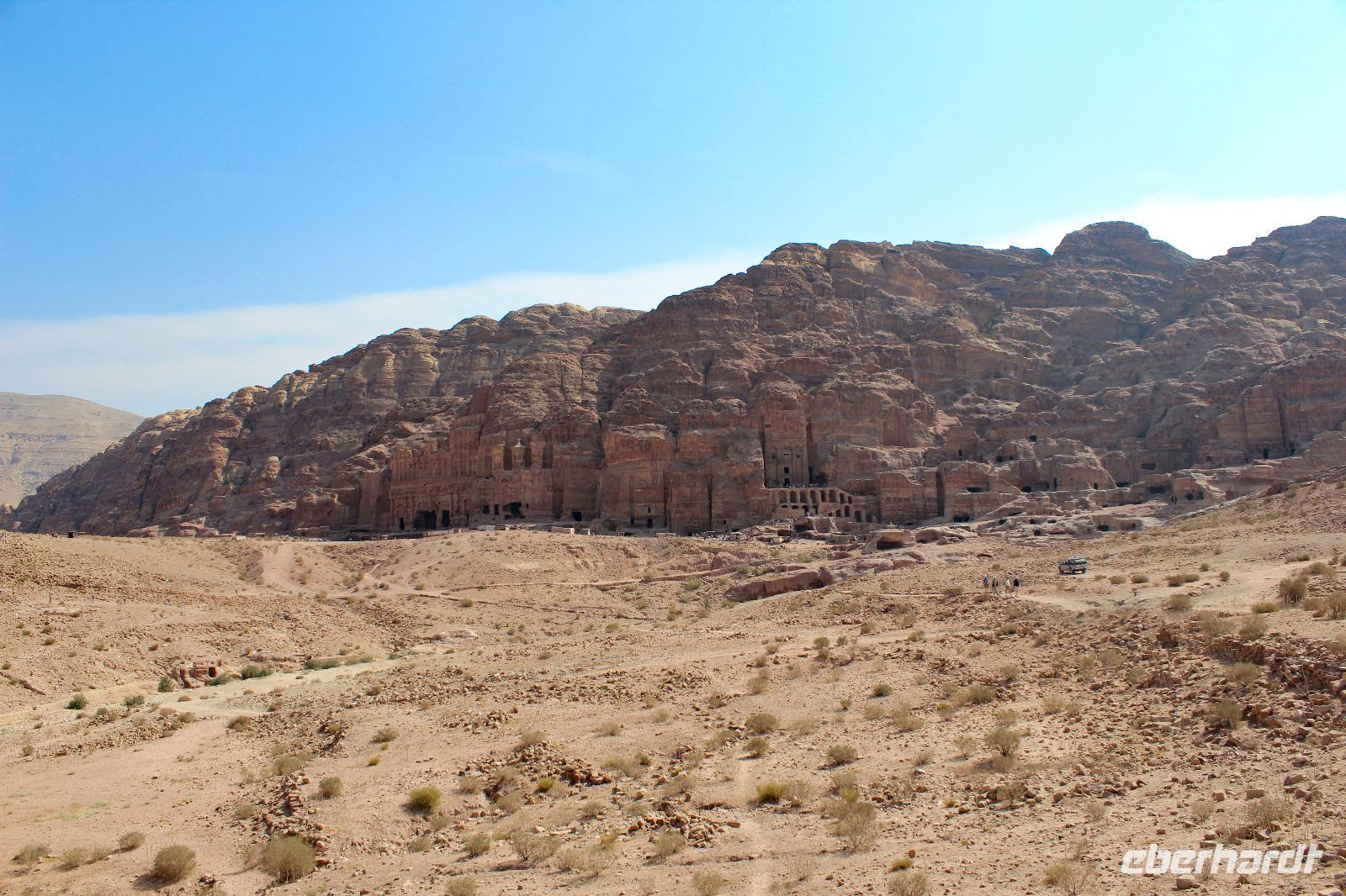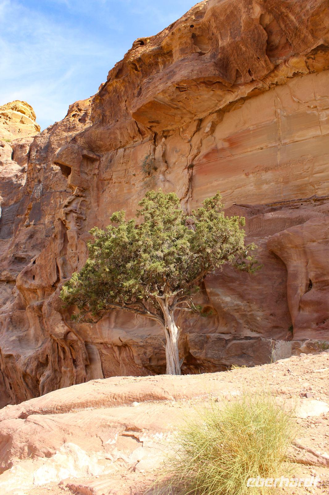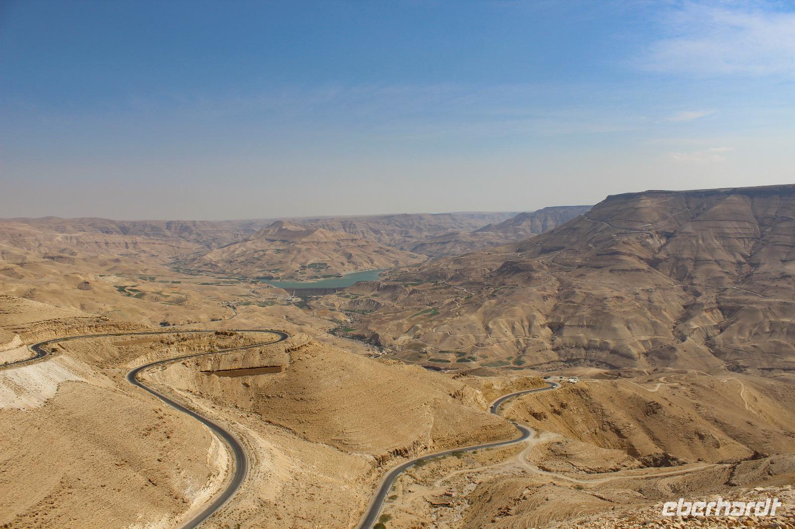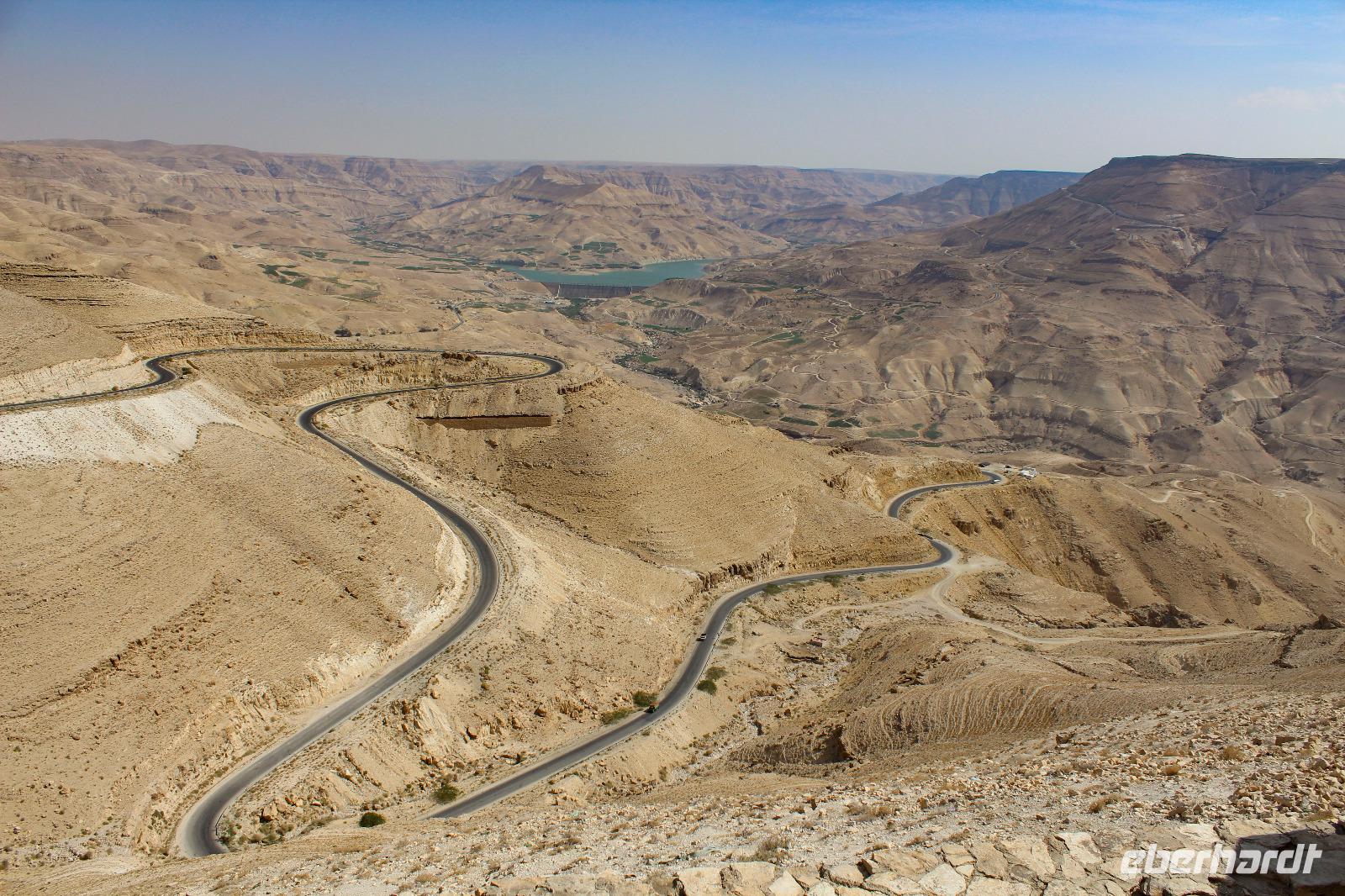 Am heutigen Tag unserer Rundreise bewegen wir uns auf den Spuren Moses. Auf dem Berg Nebo soll er nicht nur gestanden haben, sondern auch begraben sein. Hier angekommen bietet sich uns ein toller Ausblick: das Jordantal. Die Sicht ist heute nicht die Beste, doch Mahmud erzählt uns, in welcher Richtung sich Amman, der Jordan und die antike Stadt Jericho befinden. Im Museum deckt Mahmoud noch den geschichtlichen Teil ab und danach gehen wir in die Kirche in welcher wir gut erhaltene Mosaike bewundern können. Ein weiteres sehr beeindruckendes Mosaik finden wir in der Kirche von Madaba, dem Zentrum der Mosaikkunst in Jordanien. In der Kirche des Heiligen Georg befindet sich eine Landkarte von Palästina welche Ursprünglich aus 2,3 Mio. Steinen bestand. Bevor wir die Kirche betreten erklärt uns Mahmoud an einer großen Tafel die Besonderheiten der Landkarte. In der Kirche selbst sehen wir uns die erhaltenen Stücke an. Im Anschluss gibt es noch ein leckeres Mittagessen in einem kleinen Familienrestaurant. Auf unserer Fahrt nach Petra machen wir noch einen Fotostopp am Wadi Mujib, dem „Grand Canyon von Jordanien". Eine Serpentinenstraße bahnt sich den Weg an einem Stausee vorbei und überall begegnen uns Ziegen und Schafe. Von Mahmoud erfahren wir vieles über die Flora und Fauna dieses Landstriches. Unser nächster Stopp ist der Ort Kerak mit seiner beeindruckenden Kreuzritterfestung. Im Laufe der Jahrhunderte haben auf dieser Festung viele Grausamkeiten stattgefunden bis sie schließlich 1188 nach 8-monatiger Belagerung fiel. Nach der Besichtigung treten wir die letzte Fahrt des heutigen Tages an. Am Abend erreichen wir unser Hotel, welches direkt am Eingang der berühmten Felsenstadt Petra liegt.