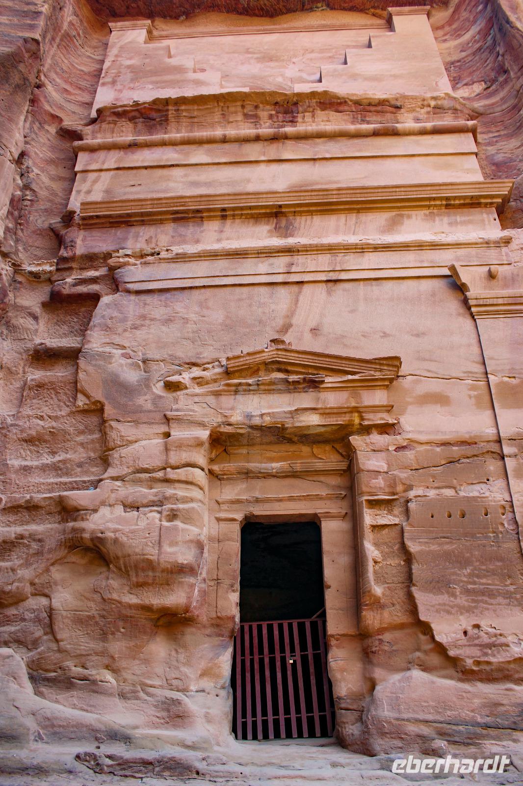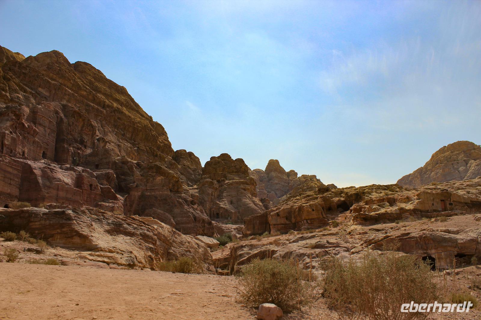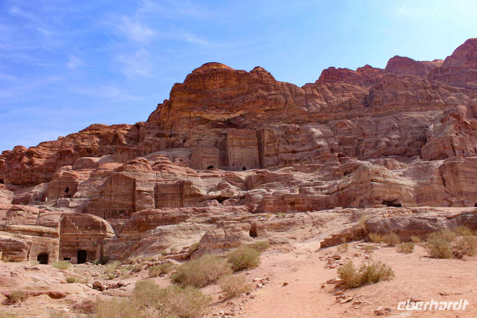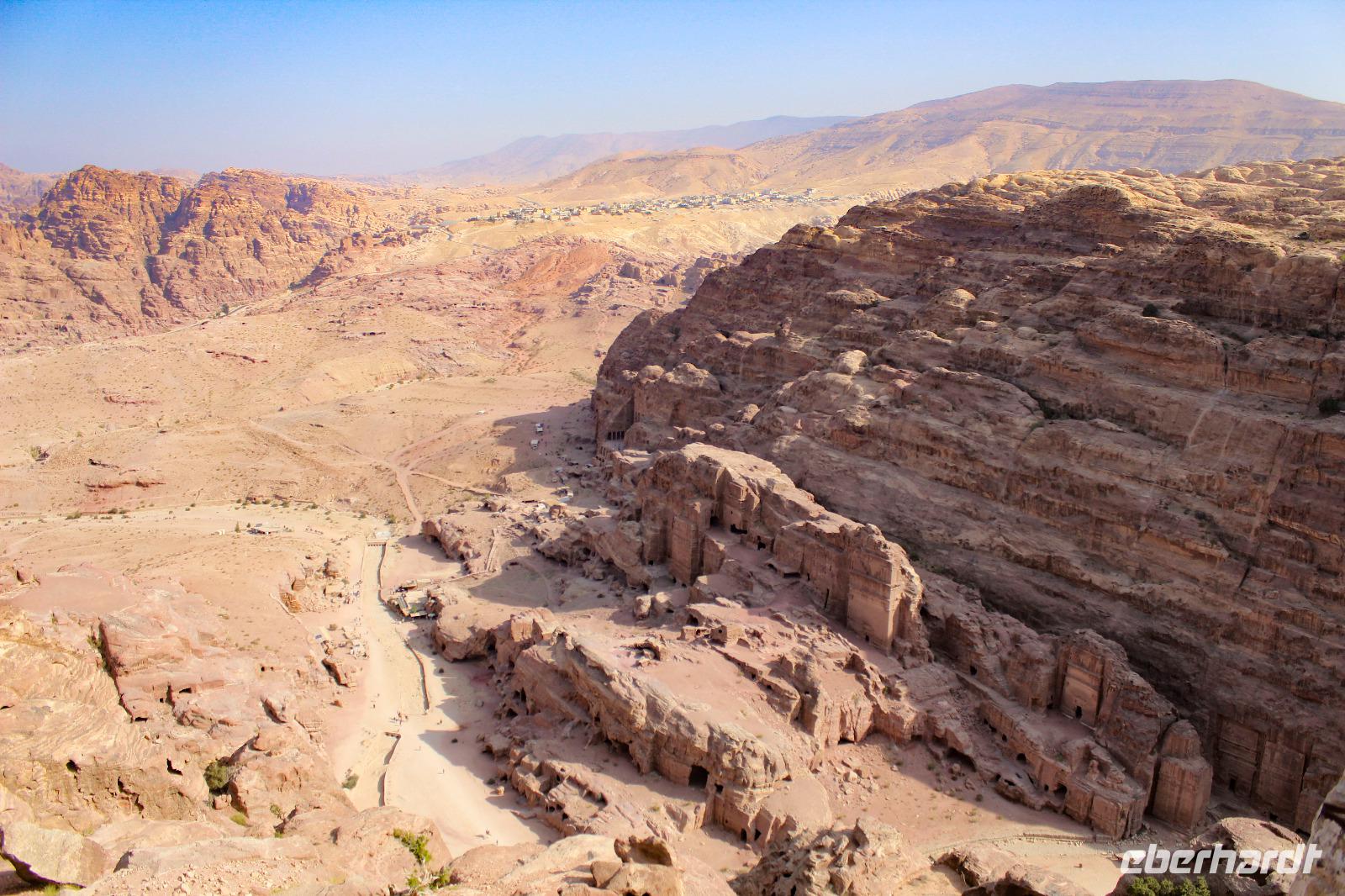 Am heutigen Tag unserer Rundreise bewegen wir uns auf den Spuren Moses. Auf dem Berg Nebo soll er nicht nur gestanden haben, sondern auch begraben sein. Hier angekommen bietet sich uns ein toller Ausblick: das Jordantal. Die Sicht ist heute nicht die Beste, doch Mahmud erzählt uns, in welcher Richtung sich Amman, der Jordan und die antike Stadt Jericho befinden. Im Museum deckt Mahmoud noch den geschichtlichen Teil ab und danach gehen wir in die Kirche in welcher wir gut erhaltene Mosaike bewundern können. Ein weiteres sehr beeindruckendes Mosaik finden wir in der Kirche von Madaba, dem Zentrum der Mosaikkunst in Jordanien. In der Kirche des Heiligen Georg befindet sich eine Landkarte von Palästina welche Ursprünglich aus 2,3 Mio. Steinen bestand. Bevor wir die Kirche betreten erklärt uns Mahmoud an einer großen Tafel die Besonderheiten der Landkarte. In der Kirche selbst sehen wir uns die erhaltenen Stücke an. Im Anschluss gibt es noch ein leckeres Mittagessen in einem kleinen Familienrestaurant. Auf unserer Fahrt nach Petra machen wir noch einen Fotostopp am Wadi Mujib, dem „Grand Canyon von Jordanien". Eine Serpentinenstraße bahnt sich den Weg an einem Stausee vorbei und überall begegnen uns Ziegen und Schafe. Von Mahmoud erfahren wir vieles über die Flora und Fauna dieses Landstriches. Unser nächster Stopp ist der Ort Kerak mit seiner beeindruckenden Kreuzritterfestung. Im Laufe der Jahrhunderte haben auf dieser Festung viele Grausamkeiten stattgefunden bis sie schließlich 1188 nach 8-monatiger Belagerung fiel. Nach der Besichtigung treten wir die letzte Fahrt des heutigen Tages an. Am Abend erreichen wir unser Hotel, welches direkt am Eingang der berühmten Felsenstadt Petra liegt.