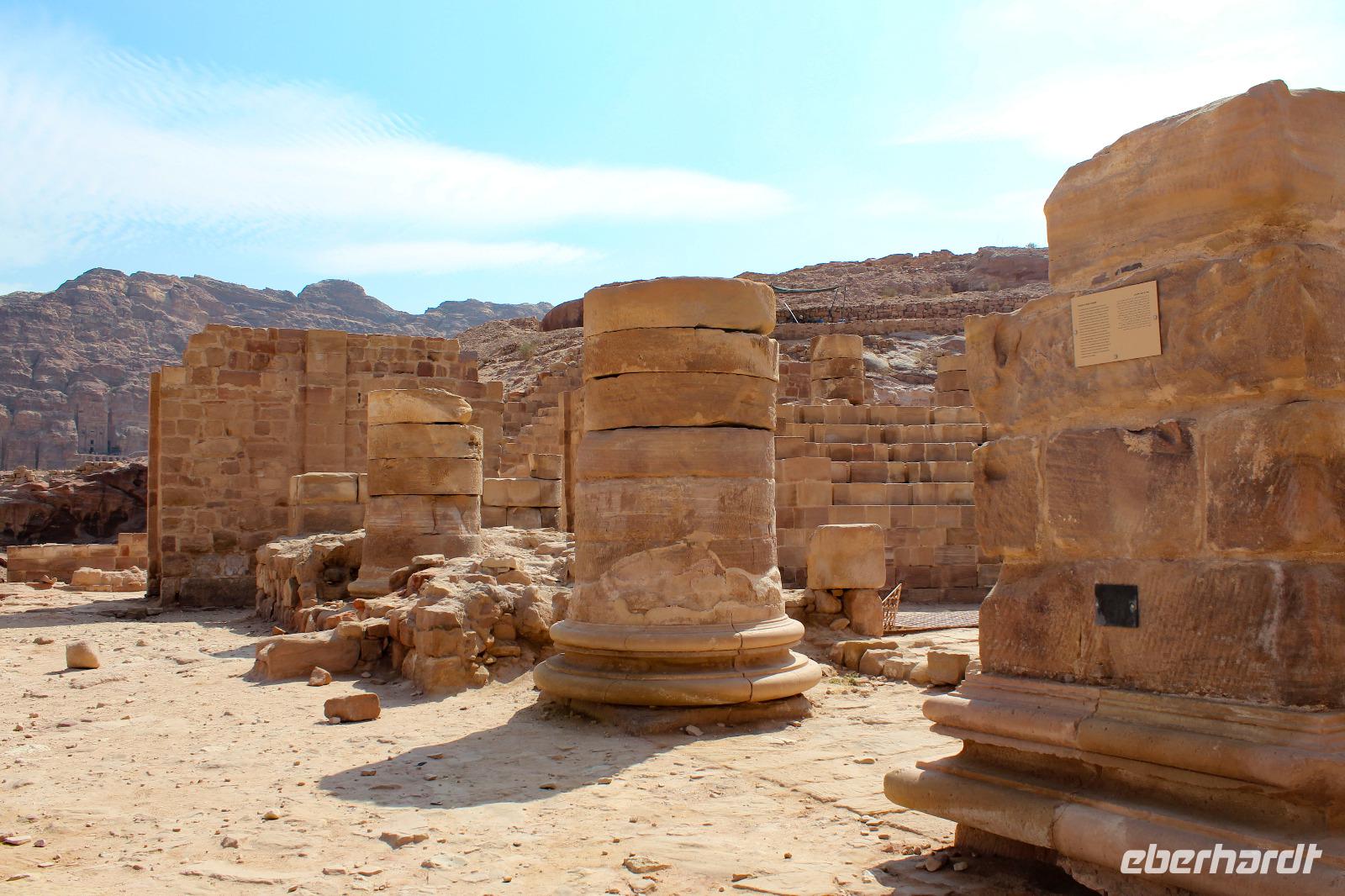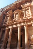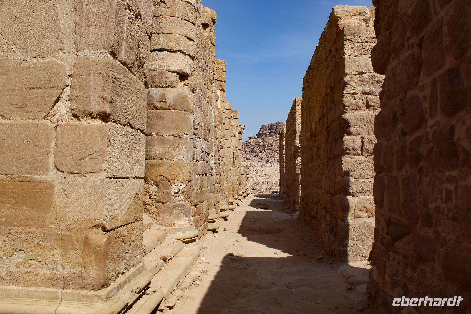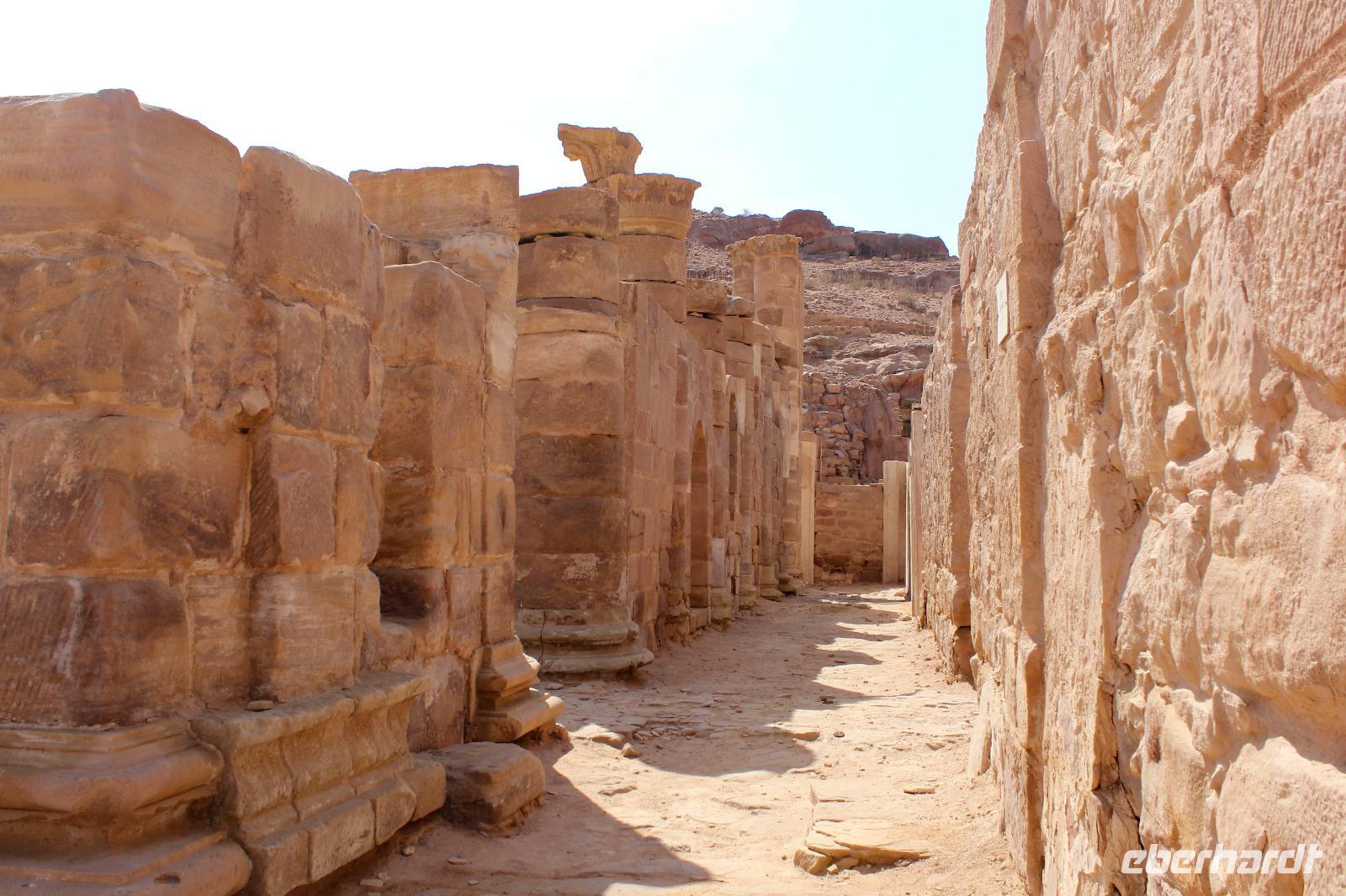 Nach unserer langen Fahrt am Tag zuvor steht heute alles im Zeichen des Weltwunders Petra. Unser Hotel liegt direkt am Eingang zur berühmten Felsenstadt und so können wir ohne Probleme los laufen. Vor uns tut sich der gewaltige Siq auf, welcher je nach Tageszeit anders aussieht. Immer wieder werden wir von den gewaltigen Pferdekutschen überholt. Nach ca 2 km erblicken wir auch schon das Schatzhaus. Hier sammeln sich viele Menschen um Fotos zu schießen, Souvenirs zu kaufen und auf Kamelen zu reiten. Mit Mahmoud machen wir uns auf den Weg um weitere Teile der unerschöpflichen Felsenstadt zu erkunden. Einst wohnten hier bis zu 30.000 Menschen. Vorbei an etlichen Ausgrabungstätten und wunderschönen Mosaiken erfahren wir viel Wissenswertes über die Landschaft welche sich vor unseren Augen auftut. Bevor wir Petra fürs erste wieder verlassen betrachten wir die Königswand noch einmal genau: Urnengrab, Seidengrab, Korinthisches Grab und Palastgrab bieten einen tollen Anblick. Am Abend sehen wir uns „Petra bei Nacht" an. Sowohl der Siq als auch der Platz vor dem Schatzhaus sind mit Kerzen hell erleuchtet. Wir nehmen auf den Bänken ganz an der Seite Platz und warten bis alle sich versammelt und niedergelassen haben. Auf typischen Instrumenten spielt ein Beduine für uns verschiedene Lieder. Dazu gibt es noch einen heißen Becher Tee. Im Anschluss finden alle den Weg zurück zum Hotel und nach einem sehr spannenden Tag können wir in unsere Betten fallen.