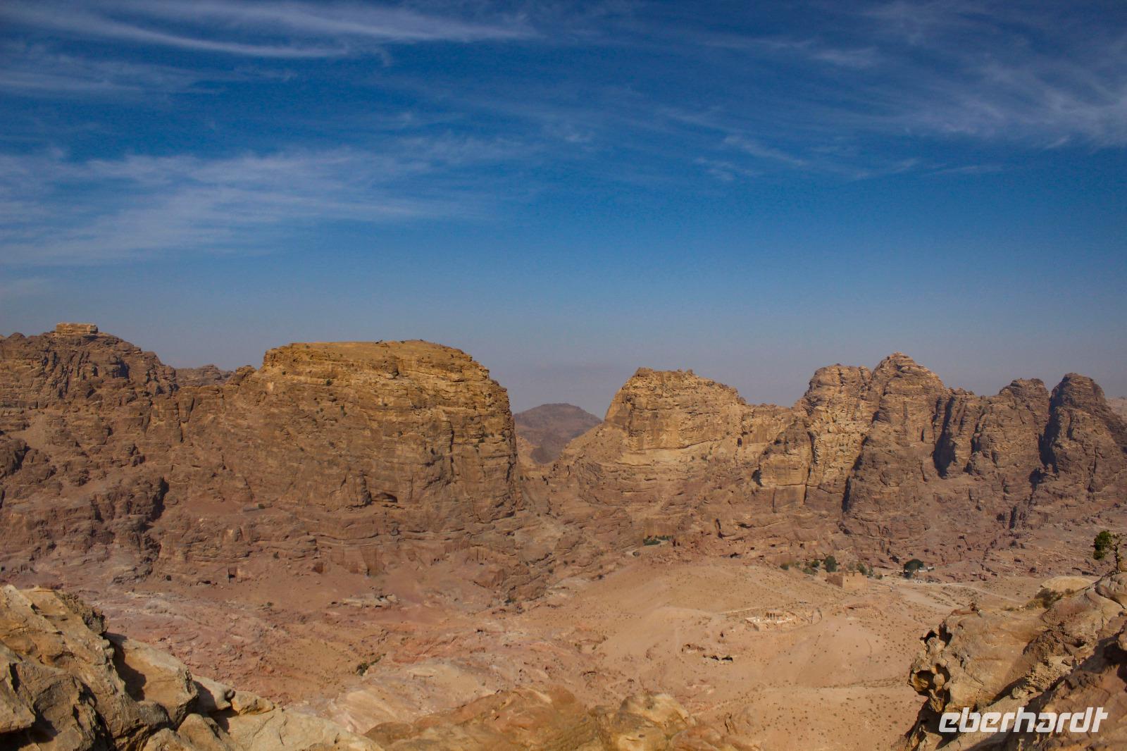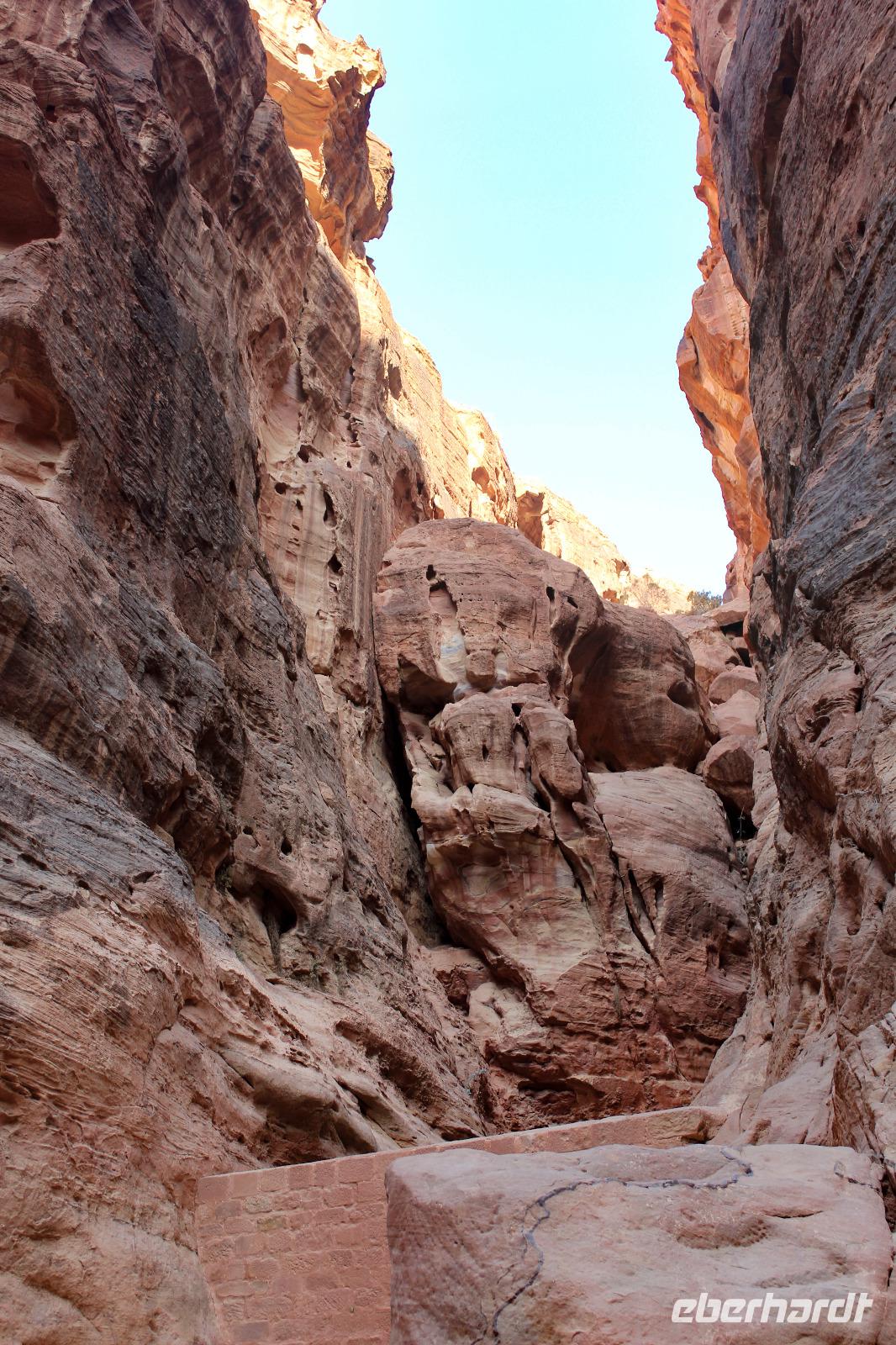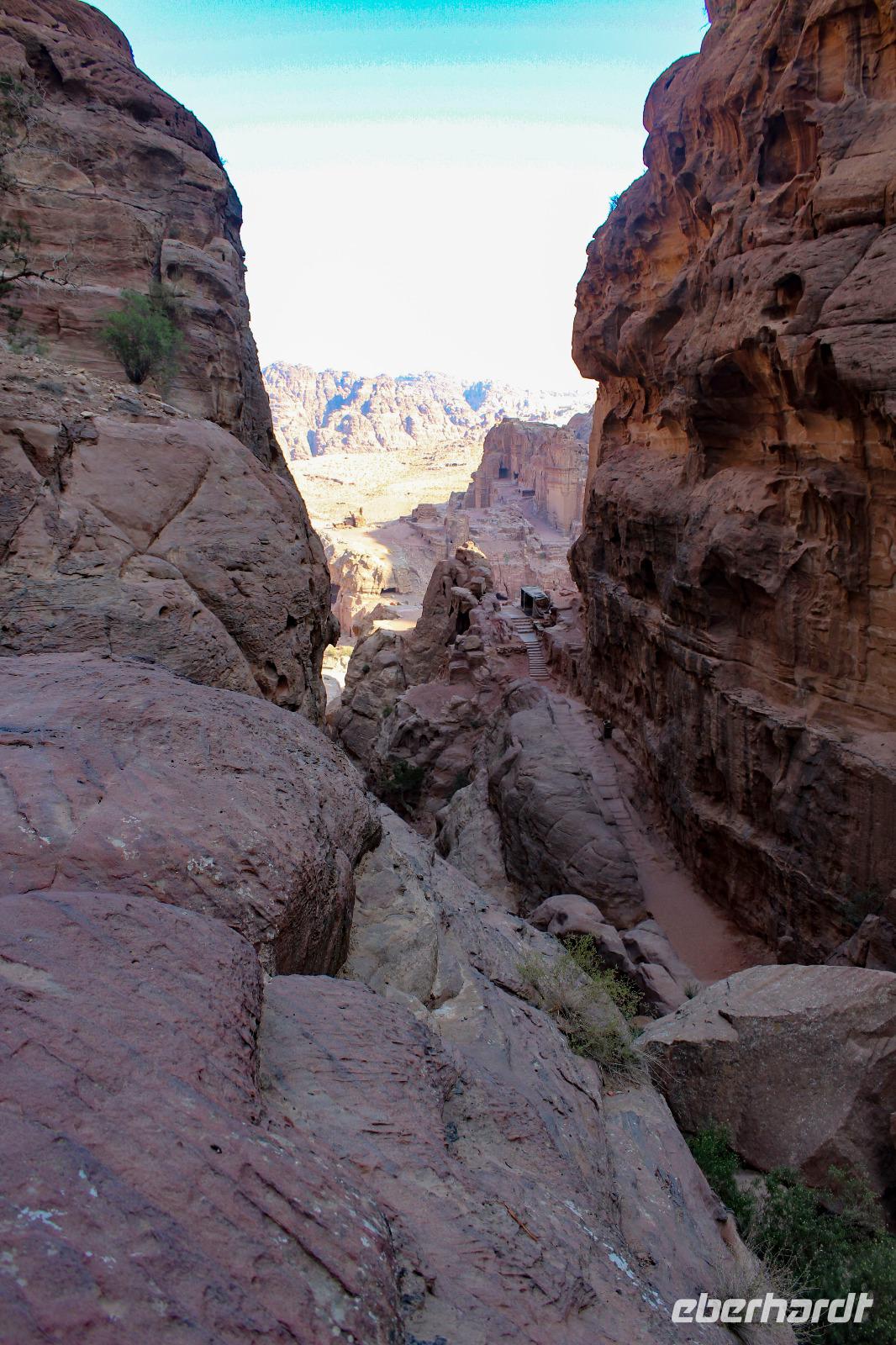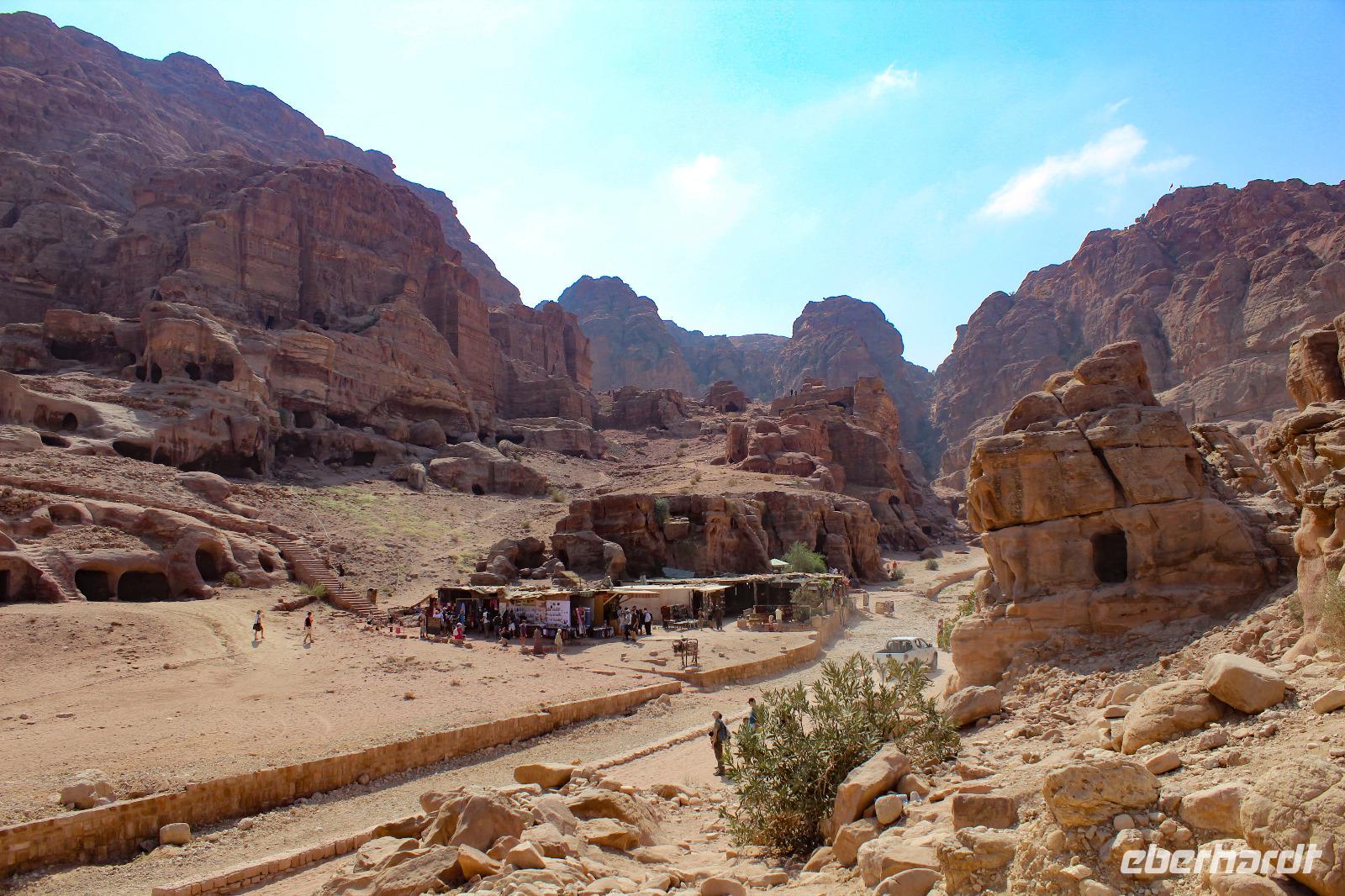 Auch den zweiten Tag in der Felsenstadt Petra verbringen wir bei strahlendem Sonnenschein. Wer möchte begleitet Mahmoud mit auf den Opferberg. Über 800 Stufen führen uns auf eine tolle Aussichtsplattform von welcher aus wir einen schönen Ausblick über die Landschaft von Petra haben. Auf der anderen Seite des Berges geht es wieder hinunter und es tun sich uns immer mehr in den Fels gehauene Gräber auf. Wer noch ganz viel Puste hat begibt sich noch einmal 800 Stufen hinauf zum Kloster und macht schöne Fotos. Bei den Händlern in Petra kann man noch das ein oder andere Souvenir kaufen. Am Abend sind wir alle gut ausgelastet und genießen unser gemeinsames Abendessen.