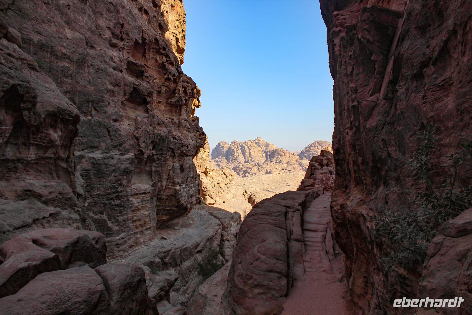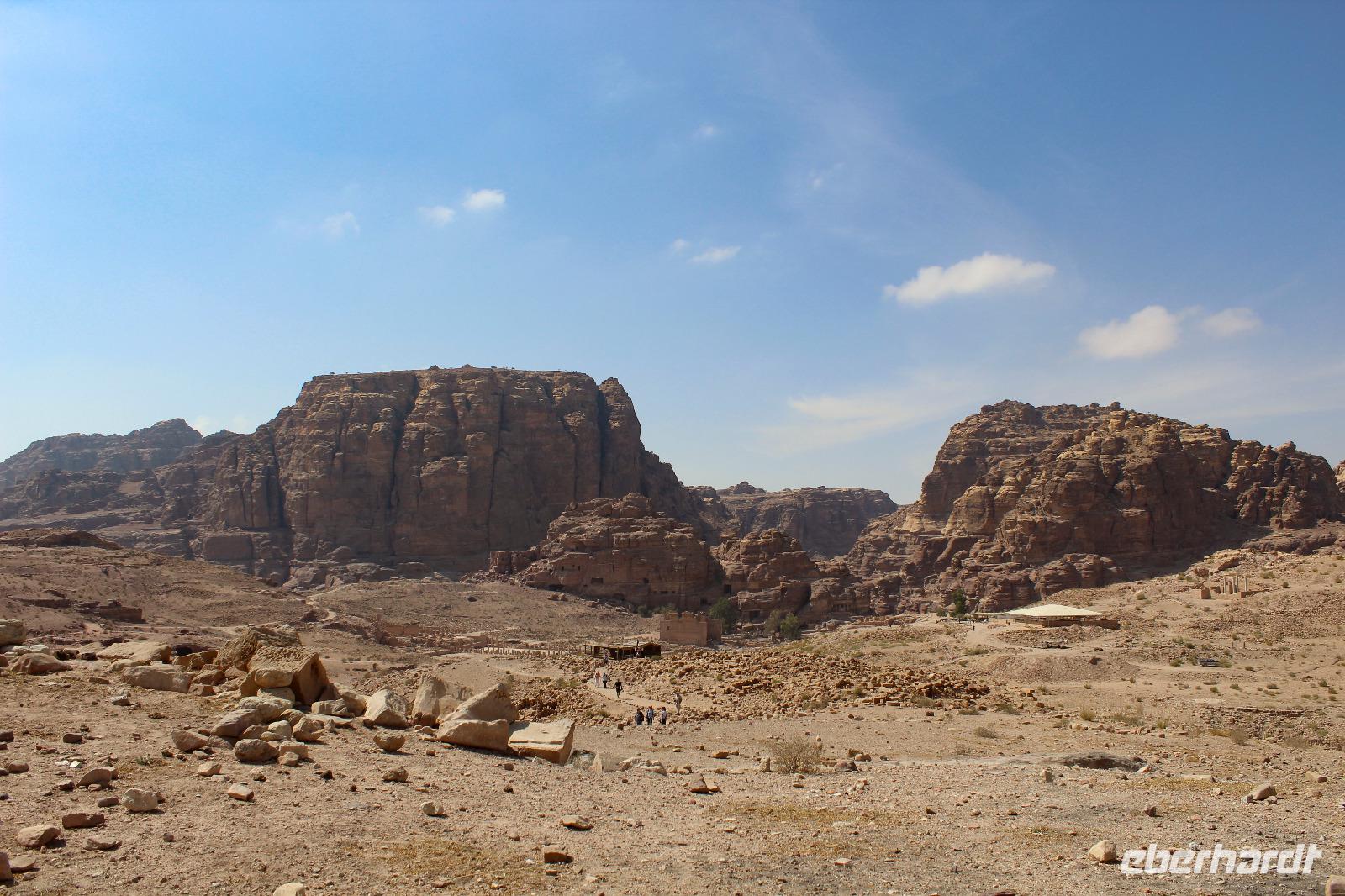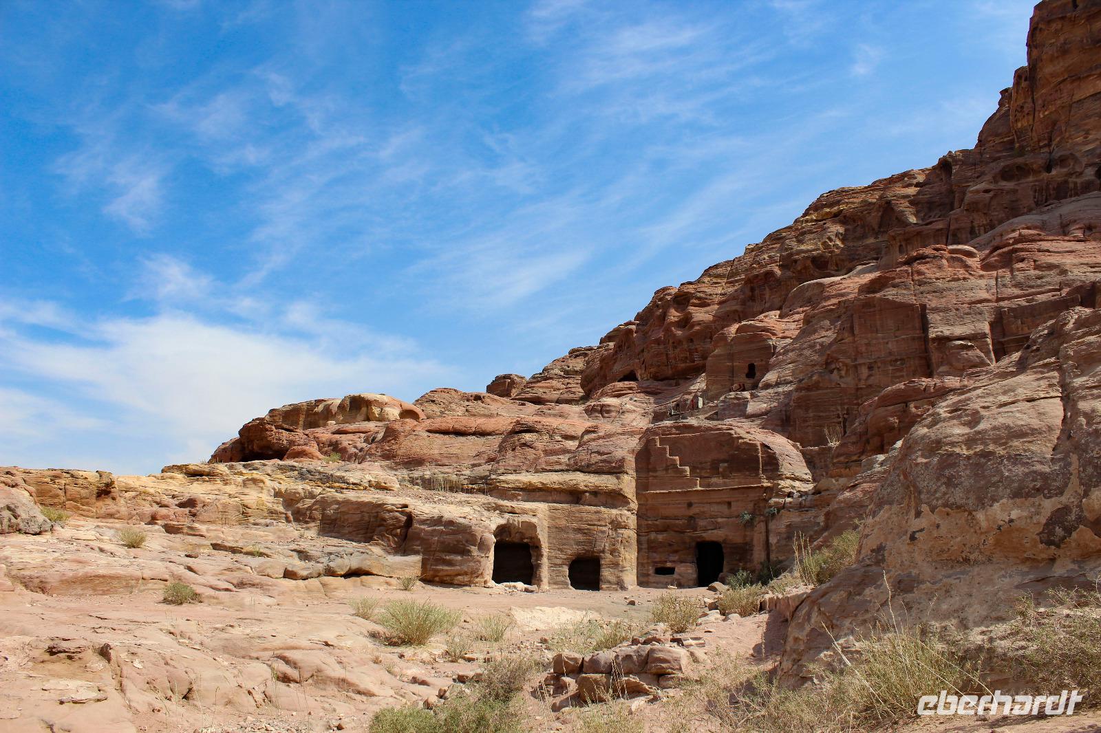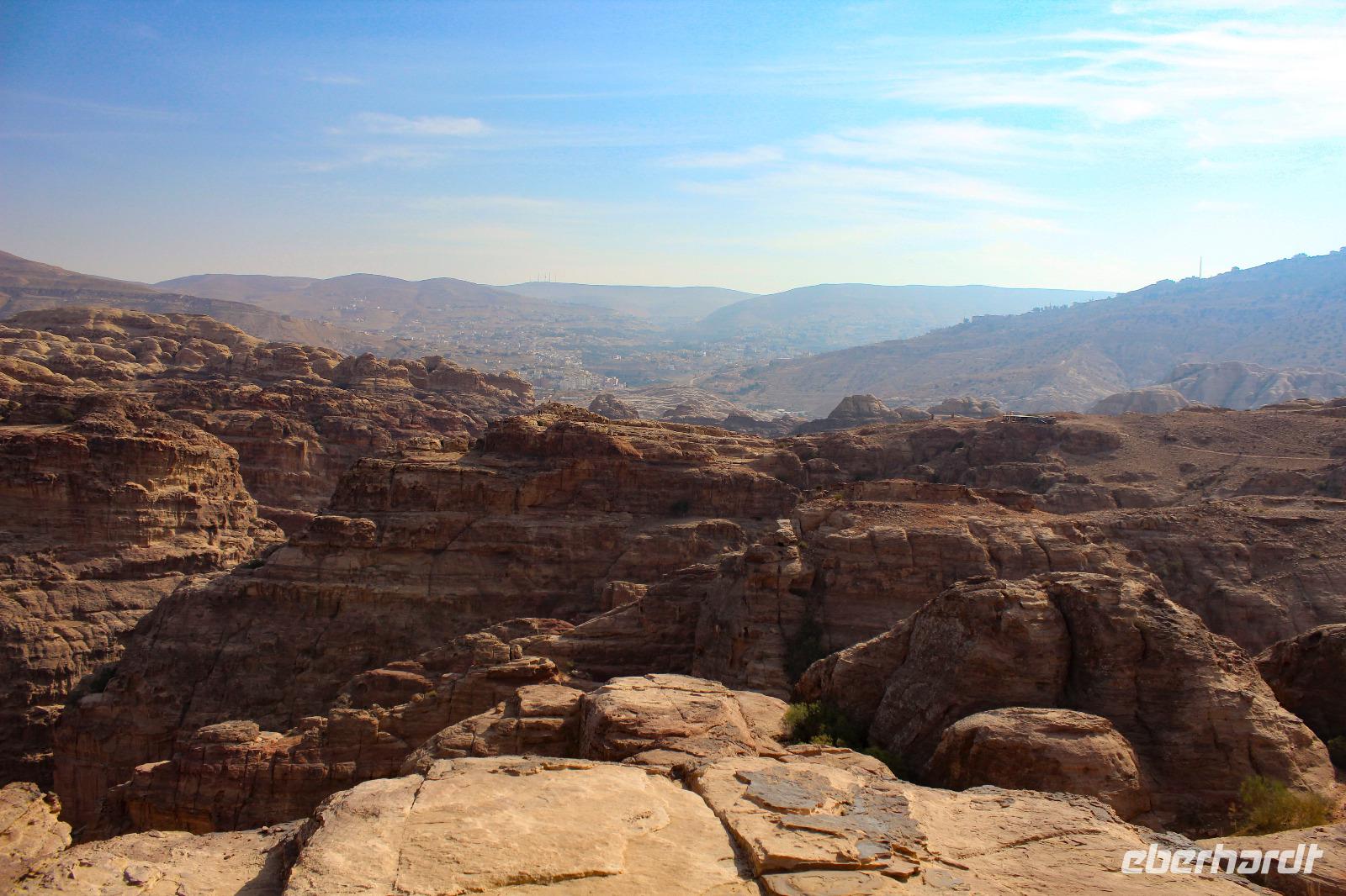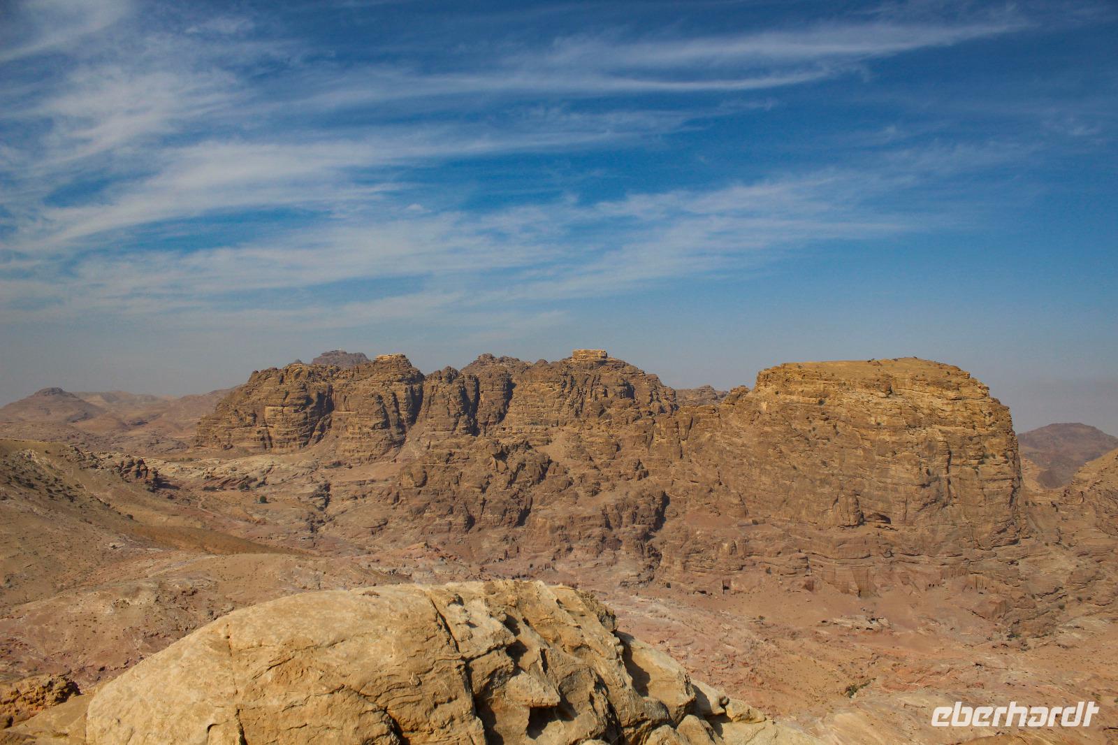 Auch den zweiten Tag in der Felsenstadt Petra verbringen wir bei strahlendem Sonnenschein. Wer möchte begleitet Mahmoud mit auf den Opferberg. Über 800 Stufen führen uns auf eine tolle Aussichtsplattform von welcher aus wir einen schönen Ausblick über die Landschaft von Petra haben. Auf der anderen Seite des Berges geht es wieder hinunter und es tun sich uns immer mehr in den Fels gehauene Gräber auf. Wer noch ganz viel Puste hat begibt sich noch einmal 800 Stufen hinauf zum Kloster und macht schöne Fotos. Bei den Händlern in Petra kann man noch das ein oder andere Souvenir kaufen. Am Abend sind wir alle gut ausgelastet und genießen unser gemeinsames Abendessen.