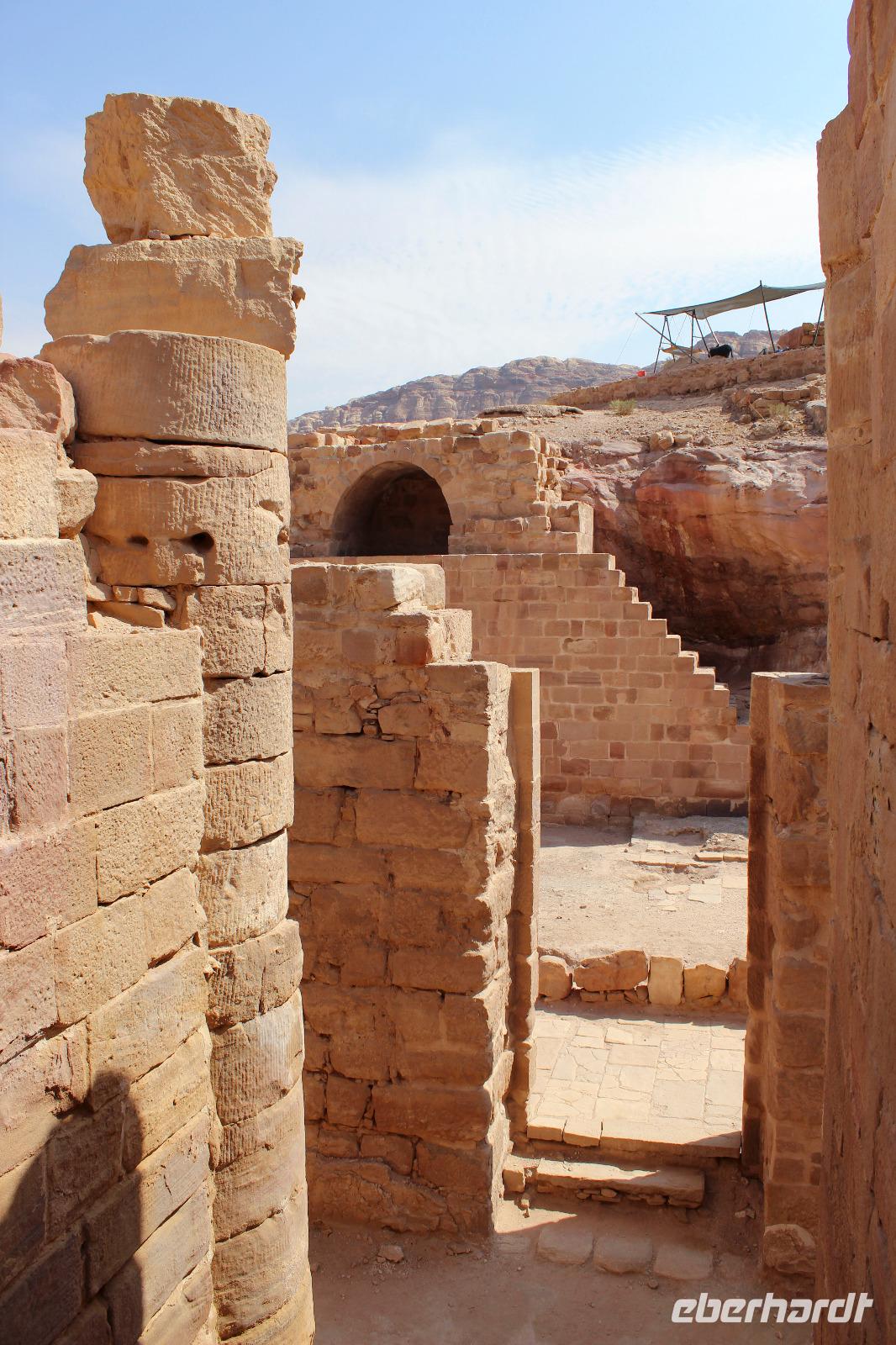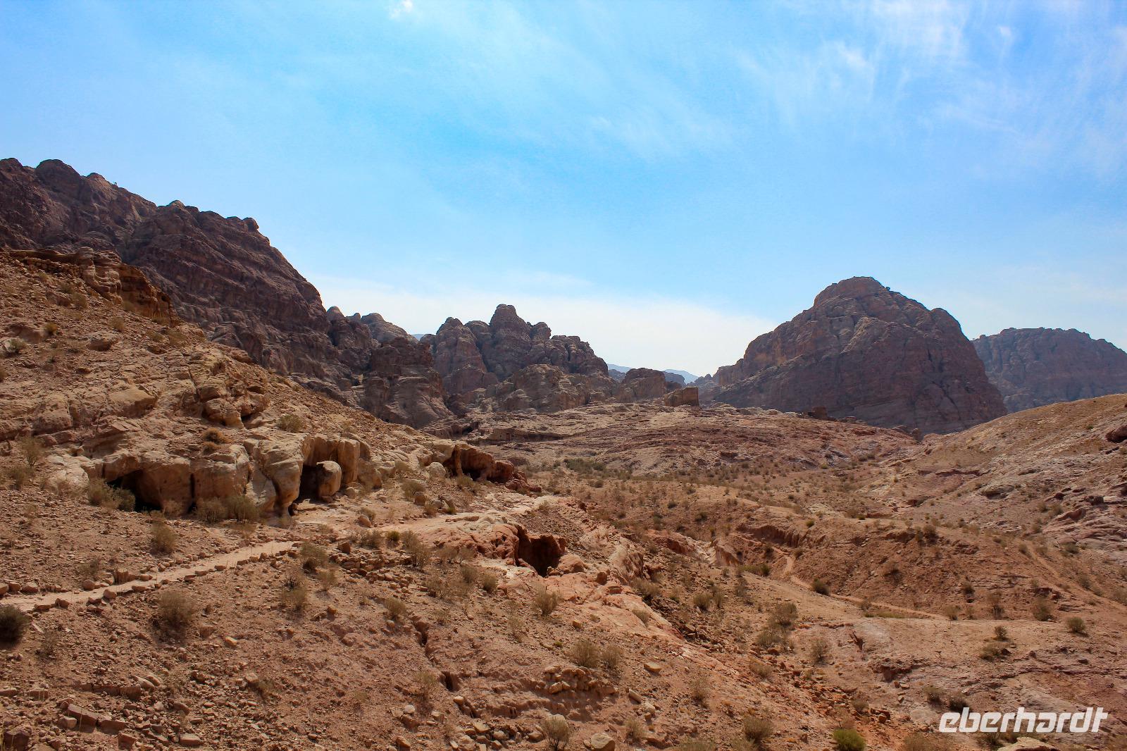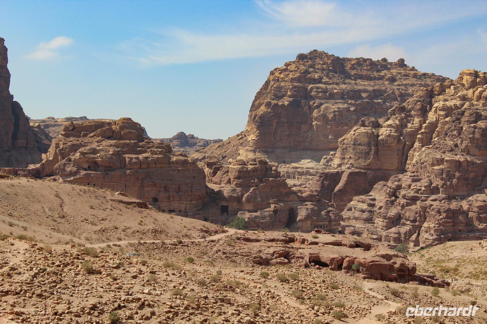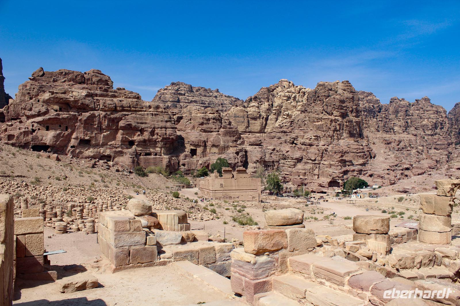 Auch den zweiten Tag in der Felsenstadt Petra verbringen wir bei strahlendem Sonnenschein. Wer möchte begleitet Mahmoud mit auf den Opferberg. Über 800 Stufen führen uns auf eine tolle Aussichtsplattform von welcher aus wir einen schönen Ausblick über die Landschaft von Petra haben. Auf der anderen Seite des Berges geht es wieder hinunter und es tun sich uns immer mehr in den Fels gehauene Gräber auf. Wer noch ganz viel Puste hat begibt sich noch einmal 800 Stufen hinauf zum Kloster und macht schöne Fotos. Bei den Händlern in Petra kann man noch das ein oder andere Souvenir kaufen. Am Abend sind wir alle gut ausgelastet und genießen unser gemeinsames Abendessen.