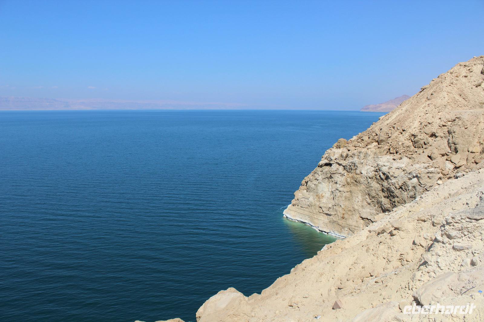 An unserem letzten Programmtag geht es wieder zurück Richtung Amman. Am Toten Meer entlang geht es zum Jordan und der Taufstelle Jesus. Nach ca. 3 Stunden können wir schon ein paar erste Blicke auf das Tote Meer werfen. Der Salzgehalt liegt bei über 30% und die Wasseroberfläche befindet sich auf ca. 400 Metern unter dem Meeresspiegel. Bei einem Fotostopp merken wir auch gleich, dass es hier viel wärmer als im Rest des Landes ist. Fürs erste fahren wir an unserem Hotel, dem Marriott am Toten Meer, vorbei und folgen der Hauptstraße, welche übrigens auch die gesamte Nacht komplett beleuchtet ist, und gelangen schließlich zur Taufstelle von Jesus. Erst im Jahre 2000 haben Ausgrabungen gezeigt, dass Jesus wahrscheinlich am jordanischen Ufer des Flusses Jordan getauft wurde. Da der Jordan im Laufe der Zeit den eigenen Lauf geändert hat müssen wir noch ein paar Schritte von der Taufstelle bis zum Wasser laufen. Hier angekommen ist Israel zum Greifen nah. In der Flussmitte befindet sich die Grenze der beiden Länder. Schließlich geht es wieder die kurze Strecke zu unserem Hotel und wir können endlich prüfen, ob man wirklich auf der Wasseroberfläche des Toten Meeres dahinschwebt.