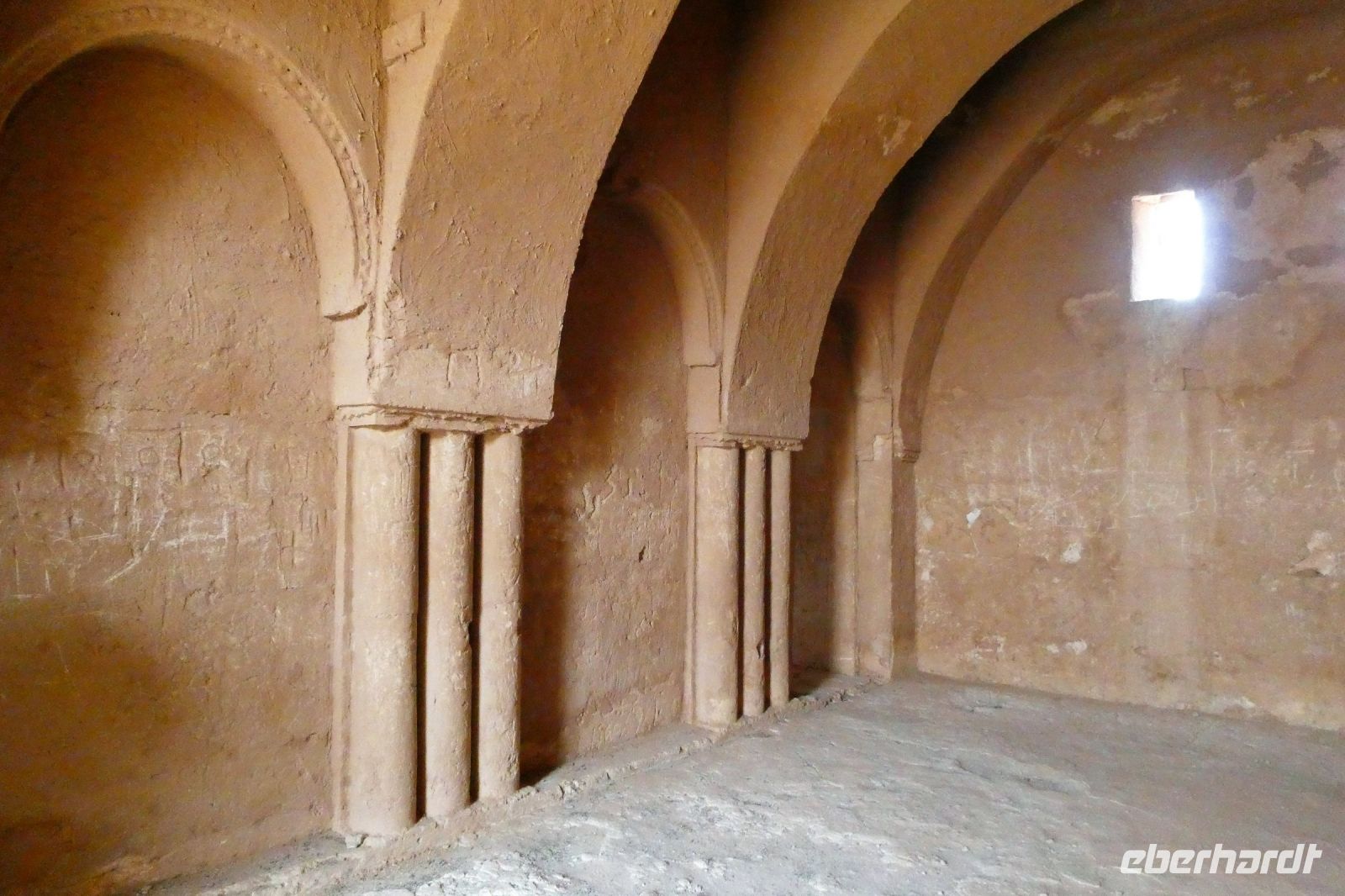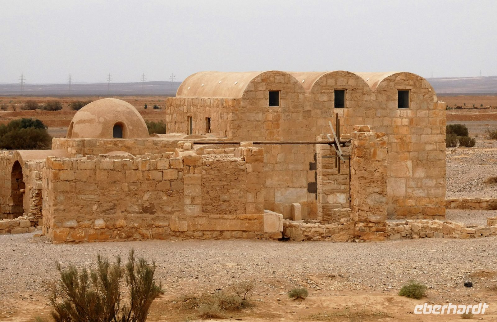 Hier in dieser Residenz ließ er ein Hamam (Badehaus) bauen, in dem wir die Reste der Fresken bewundern können. In dieser ersten Zeit des Islam zogen es die Herrscher vor, sich in den weitläufigen Gebieten um ihre Untertanen zu kümmern und auch darin vermutet man den Grund die Erbauung solcher Residenzen inmitten der Wüste. Man kümmerte sich um Wassertechniken und einige archäologische Reste künden davon.