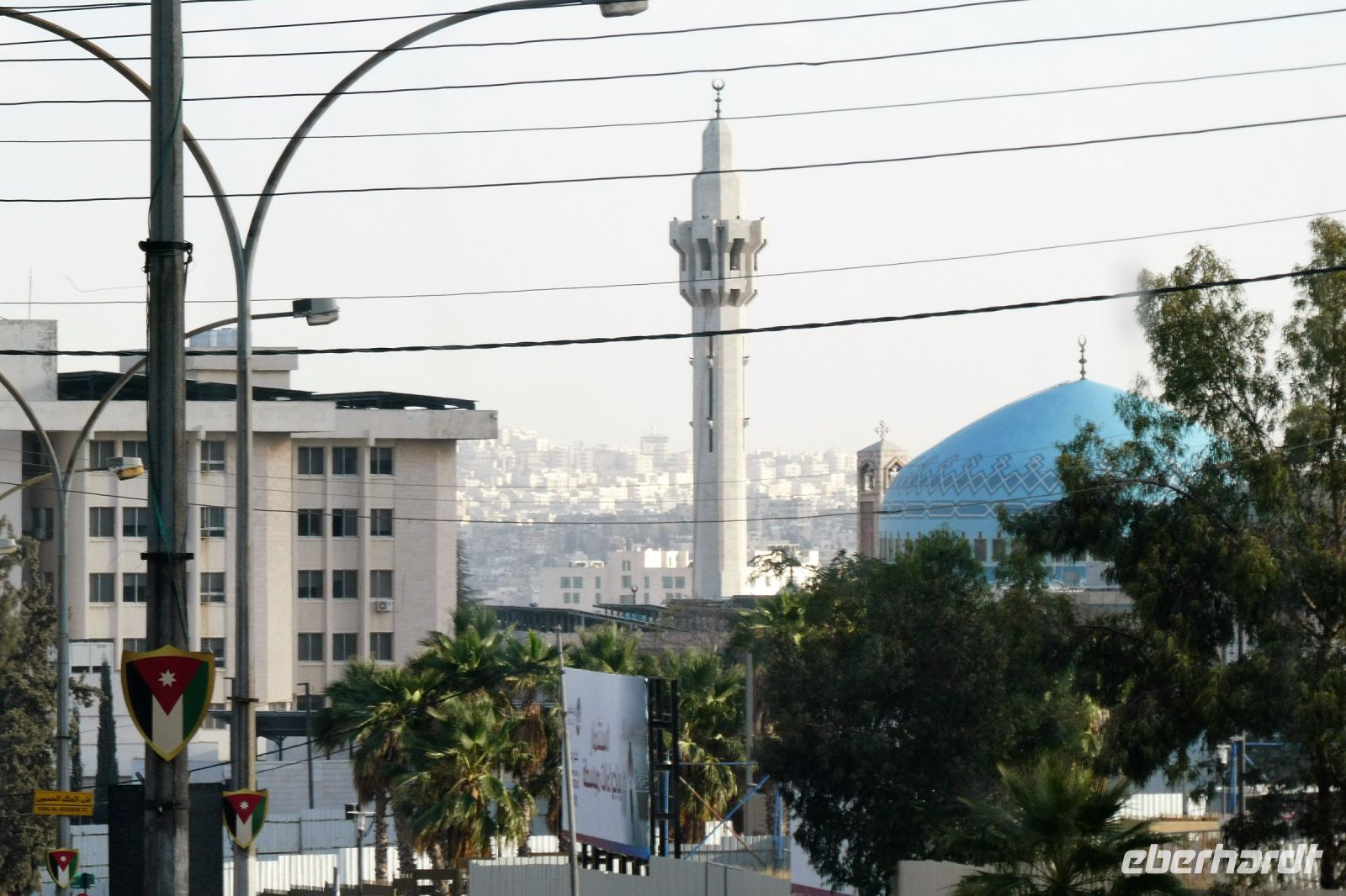 Während der Fahrt erfahren wir etwas über Jordanien im Allgemeinen und zu verschiedenen Themen welche uns interessieren. Wir freuen uns über das schöne Wetter und die angenehmen Temperaturen. Allerdings brauchen wir noch eine ganze Zeit, bis wir an unserem Ziel, der Zitadelle, ankommen. Denn zu dieser Tageszeit gibt es Stau in der Hauptstadt wie an jedem Tag. So kommen wir aber in den Genuss, uns die Skyline der Stadt mit den modernen Bauten ausgiebig zu betrachten. Vor uns erhebt sich ein hohes gerundetes Gebäude, das „Rotana-Hotel“ mit einer Höhe von 188 m. Hauptauftraggeber war ein arabisches Bauunternehmen aus Abu Dhabi. Das Hotel steht im Stadtteil "Abdali" und gehört damit zu einem 5 Milliarden Dollar Projekte zur Entwicklung von Geschäfts-, Freizeit- und Wohngebieten.