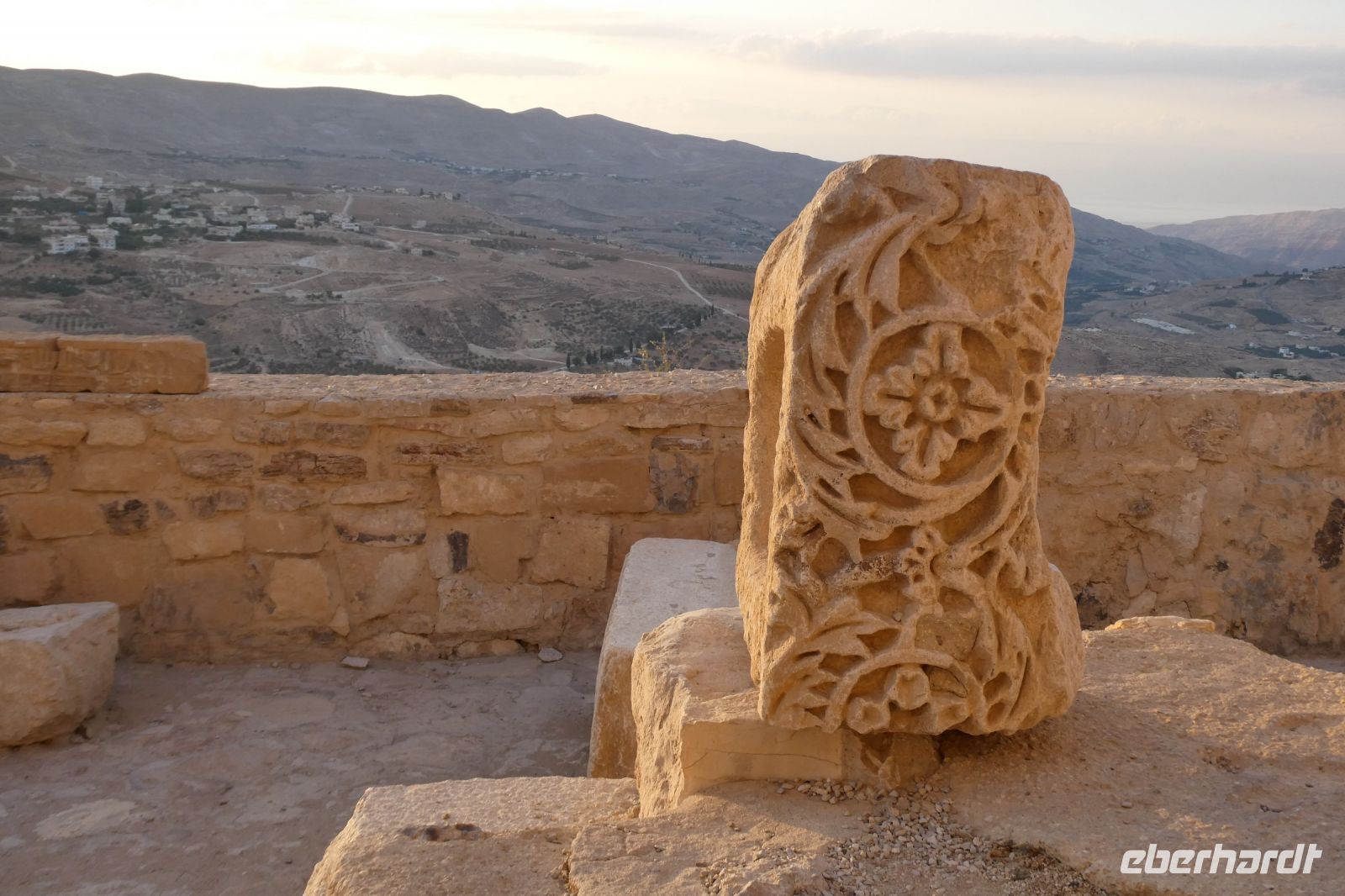 Schon früh geht es heute los, denn wir haben heute einen weiten Weg. Erst einmal fahren wir ca. 1 Stunde zum „Berg Nebo“. Hier blicken wir weit auf das Tal des Jordan bis hinüber auf die andere Seite nach Israel. Auch können wir von hier bis zum Toten Meer blicken. Hier soll Moses einst das „gelobte Land“ erblickt haben, als er nach 40jähriger Wanderung durch die Wüste hier ankam und starb. Religiös ist diese Stätte für alle monotheistischen Religionen bedeutend. Wir besuchen die Kirche welche in moderner Form wiedererrichtet wurde und betrachten den Innenraum mit seinen schönen Mosaiken und antiken Überresten. Ein Berg mit Symbolcharakter und deshalb schon seit dem 7. Jahrhundert ein beliebtes Pilgerziel. Skulpturen die einen religiös bedeutenden Hintergrund haben, aber auch ein Museum mit Artefakten von der Region sind in einem Garten vereint. Ein Rollstein, mit denen man früher Gräber verschlossen hat, gehört ebenfalls dazu.