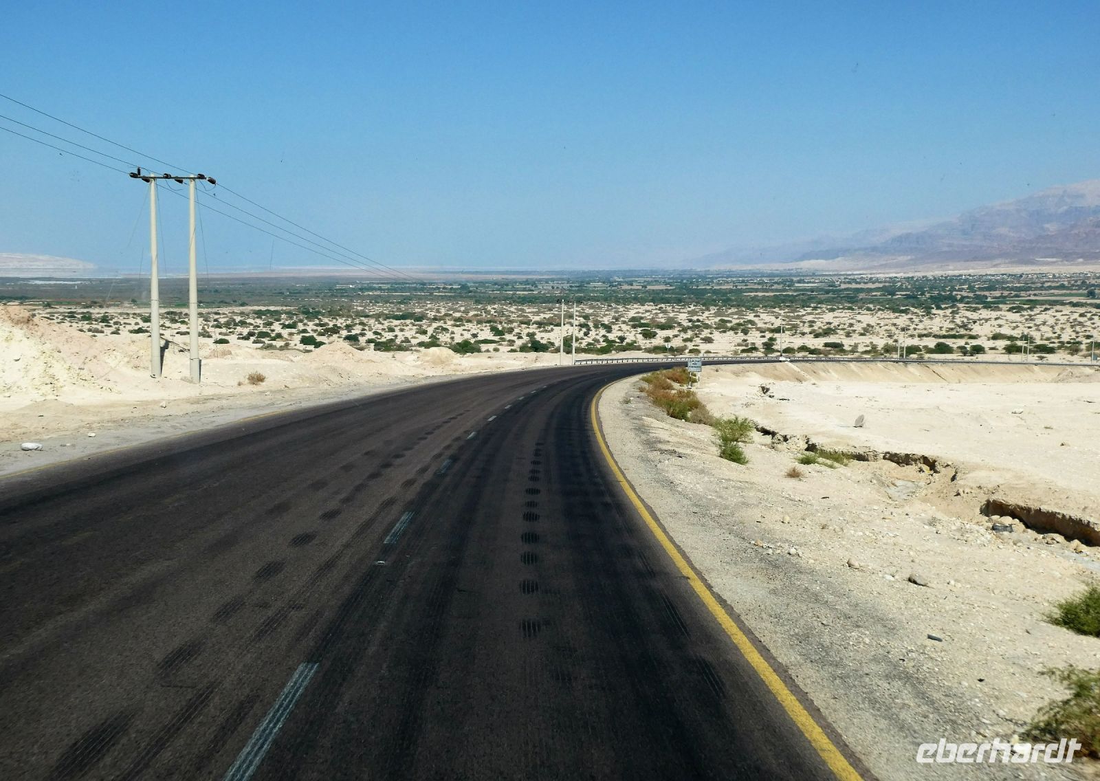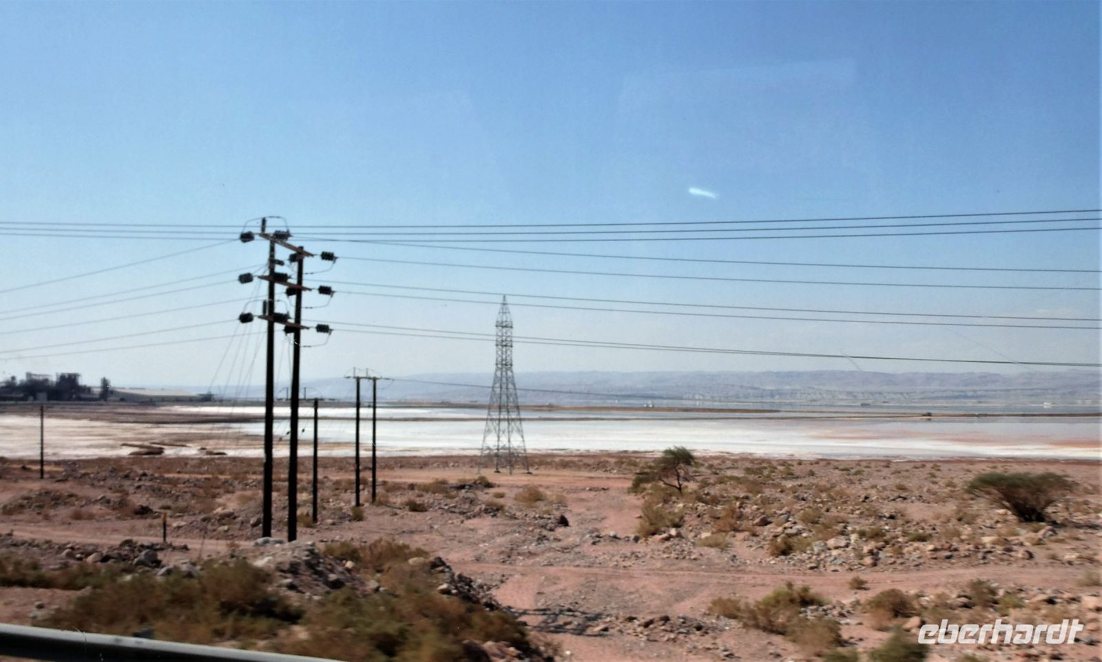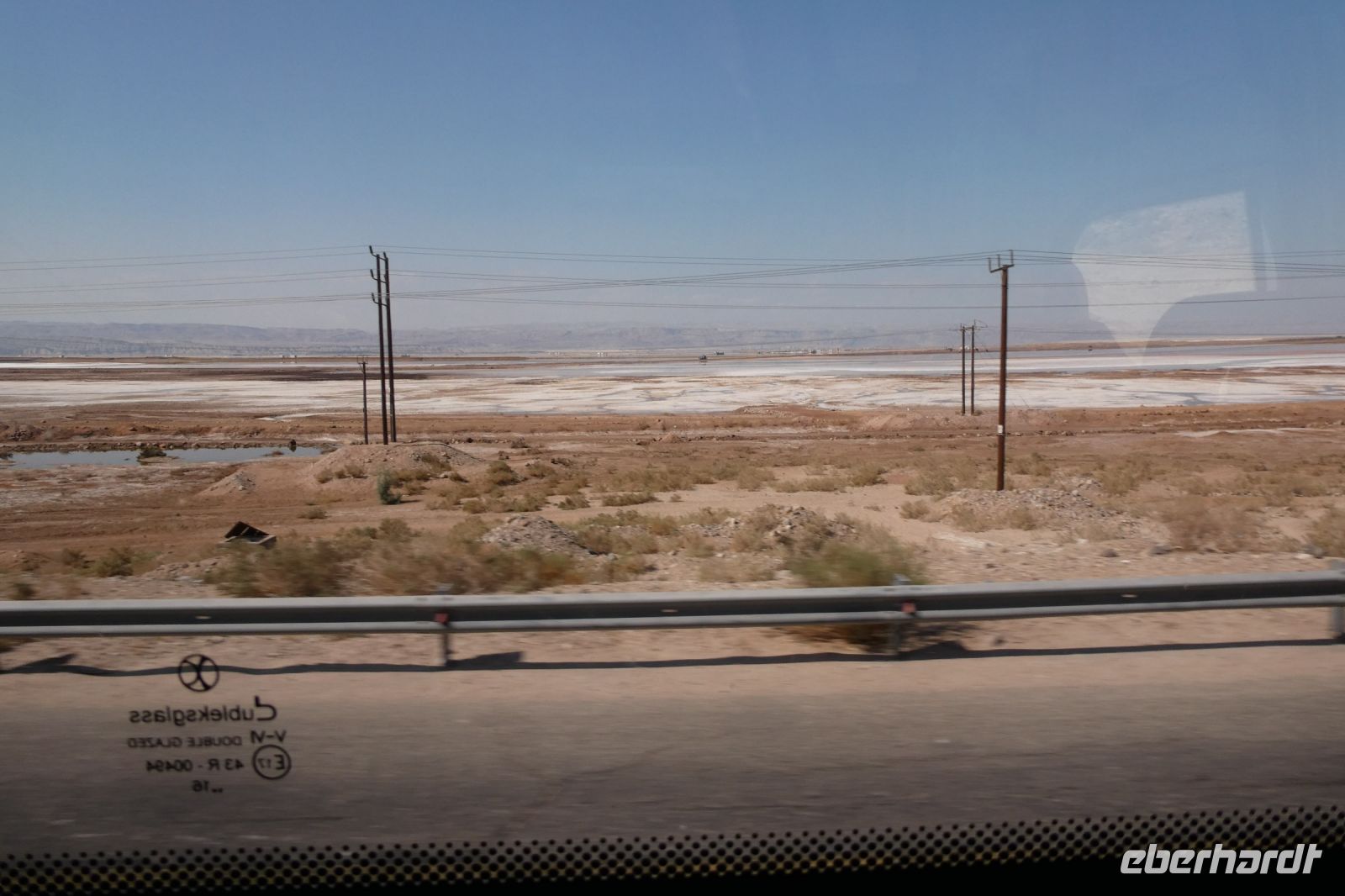 Auch dabei gab es Konflikte zwischen den beiden Staaten. Hier ist die Militärpräsenz auch heute noch verhältnismäßig hoch. Vor dem Friedensabkommen war es ein gesperrtes Gebiet, welches militärisch streng überwacht wurde. Auch verlassen wir jetzt die "zollfreie Zone" und auch wir werden auf Schmuggelware kontrolliert. Es geht entlang des "Arawatals" in Richtung Totes Meer, welches 400 m unter dem Meeresspiegel liegt. Leider hat es sich in den letzten Jahren extrem zurückgezogen und es entstehen am Rande gefährliche Krater, da sich die Bodenbeschaffenheit durch die Trockenheit verändert. Es kommt zu Einbrüchen, welche lebensgefährlich sein können.