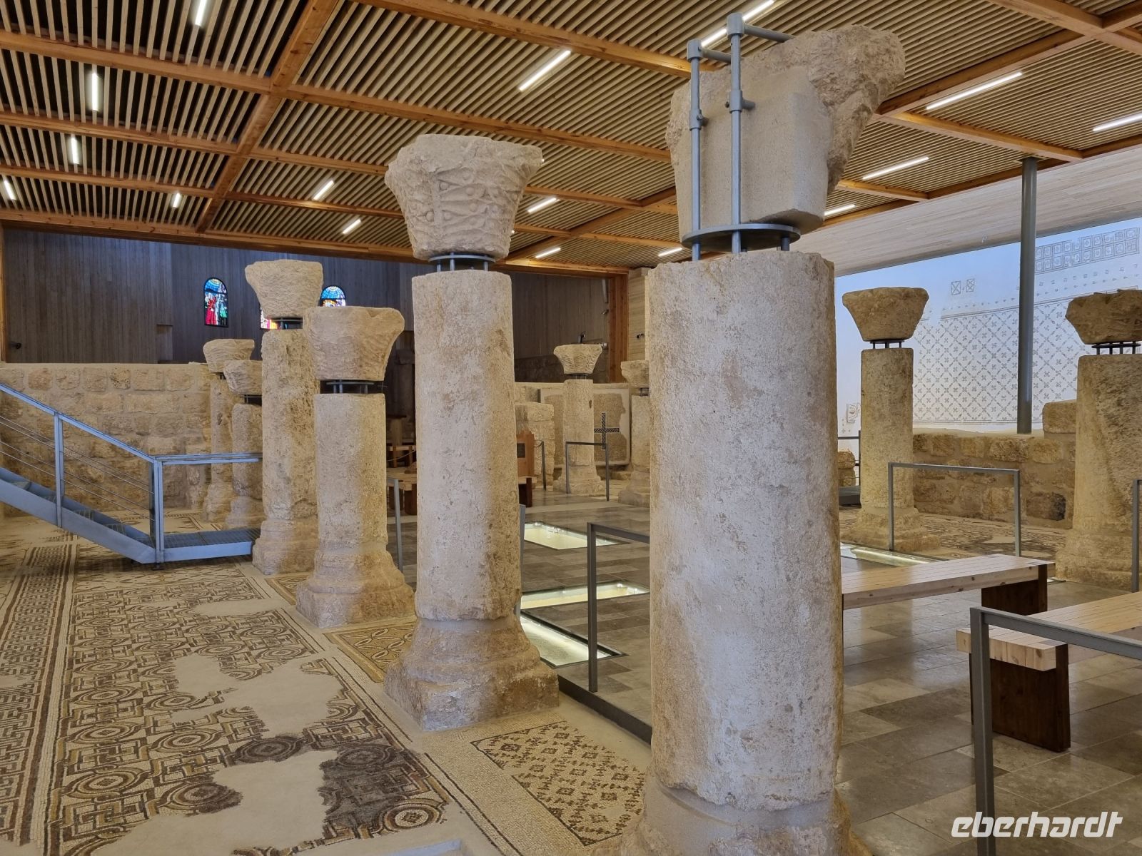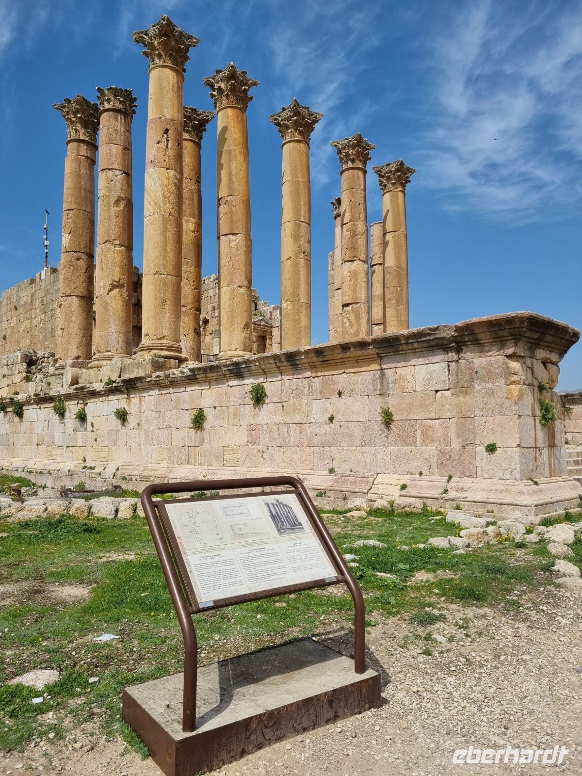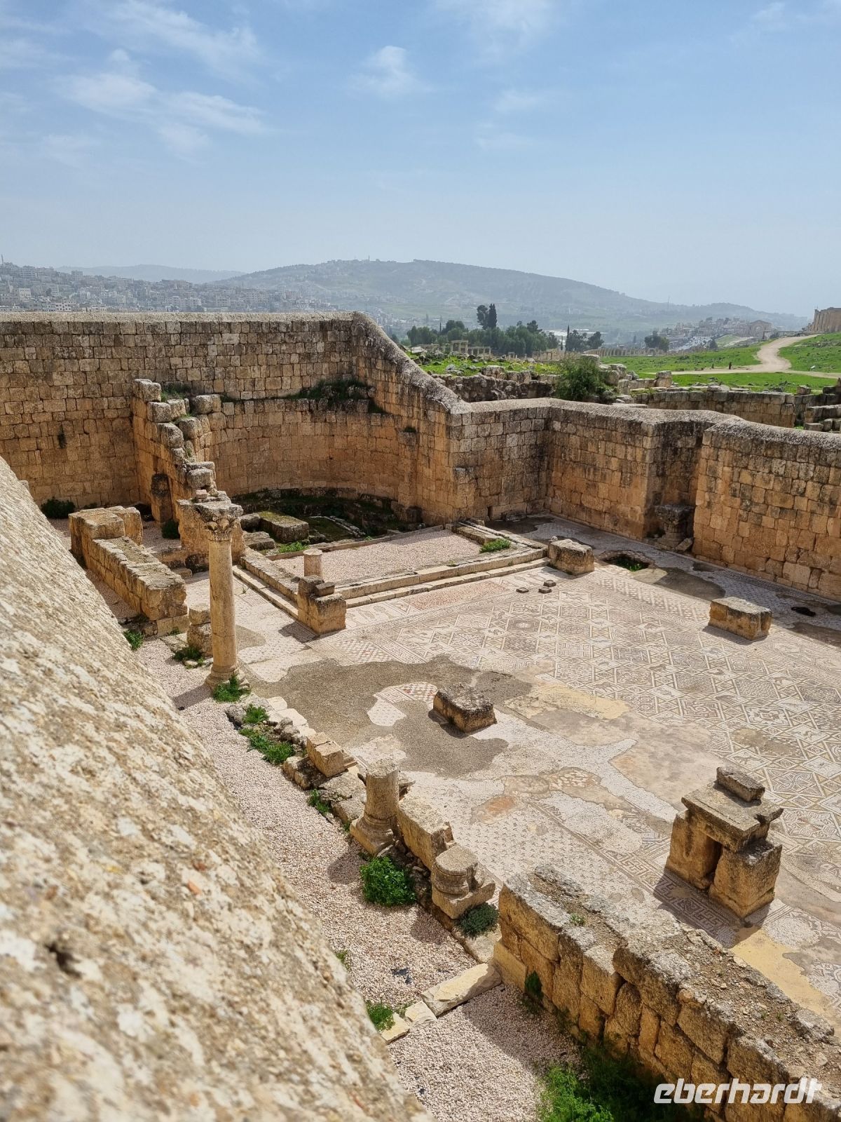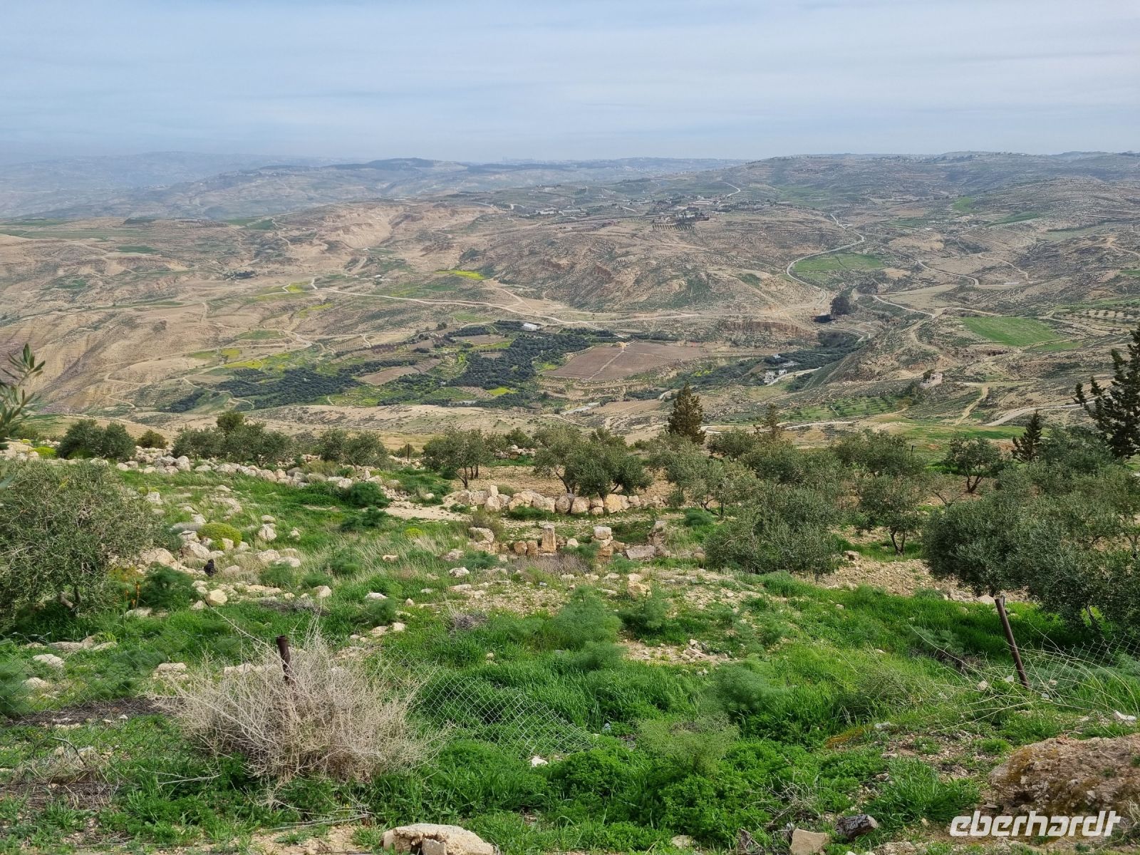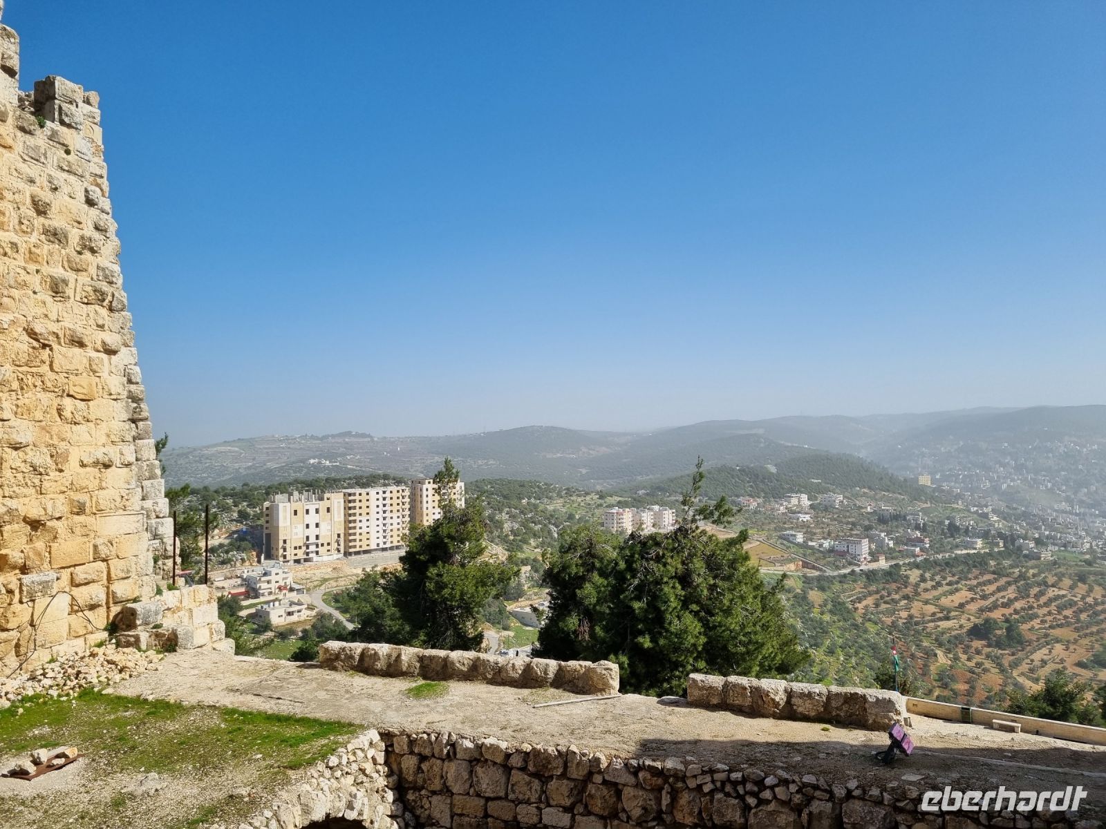 Heute ging es mit dem Bus gen Norden. Der Kontrast zum gestrigen Tag war deutlich spürbar, denn wir fuhren durch saftig grüne und hügelige Landschaften vorbei an unzähligen Steineichen-Naturwäldern bzw. Olivenhainen zunächst nach Ajlun. Hier ist es feuchter als im Rest des Landes und es fällt im Winter auch oft Schnee. Wir besuchten die oberhalb der kleinen Stadt Ajlun gelegene islamische Burg, welche im 12. Jahrhundert errichtet wurde, um die Gegend vor den Kreuzfahrer zu sichern. Bauherr war ein Neffe des großen Sultans Saladin, Izz ed-Din Usama. Genutzt hat man die Festung allerdings nie, denn bereits drei Jahre nach ihrer Fertigstellung wurden das Kreuzfahrerheer 1187 in der Schlacht bei Hittin geschlagen. Die Kreuzfahrer bezeichnet man hier übrigens nicht als solche, sondern man nennt sie Franken. Nach einer weiteren ca. 1-stündigen Fahrt erreichten wir Jerash mit der bedeutendsten römischen Ausgrabungsstätte auf jordanischem Gebiet. Kaiser Hadrian rühmte sie "als die Stadt, die alle Schönheiten in sich vereint". Und so ließ er sich auch gleich einen Triumphbogen bauen und dazu ein Hippodrom, eine Pferderennbahn. Wir traten am Südtor in die Stadt ein und gelangten als erstes zum von Säulen umrahmten ovalen Platz, welcher so genannt wird, weil er nicht rund ist. Später erreichten wir das Südtheater, welches sich neben dem Zeus-Tempel befindet. Selten hat man in einer römisch-antiken Stätte noch so viele aufrechtstehende Säulen gesehen - echt beeindruckend! Wir setzten unsere Entdeckungstour fort und besuchten u. a. auch das Nordtheater, den Artemis-Tempel und gelangten über die gepflasterte Hauptstraße des riesigen Geländes zu unserem Ausgangspunkt zurück. Tief beeindruckt machten wir uns anschließend zum nahe gelegenen Restaurant "Artemis" auf, um uns dort mit kulinarischen arabischen Köstlichkeiten zu stärken. Hier konnten wir sogar zuschauen, wie unser Brot in einem traditionellen arabischen Lehmofen gebacken wurde, bevor es direkt vom Feuer noch warm auf den Tellern ankam - ein echter Gaumenschmaus! Am Nachmittag kehrten wir schließlich nach Amman zurück.