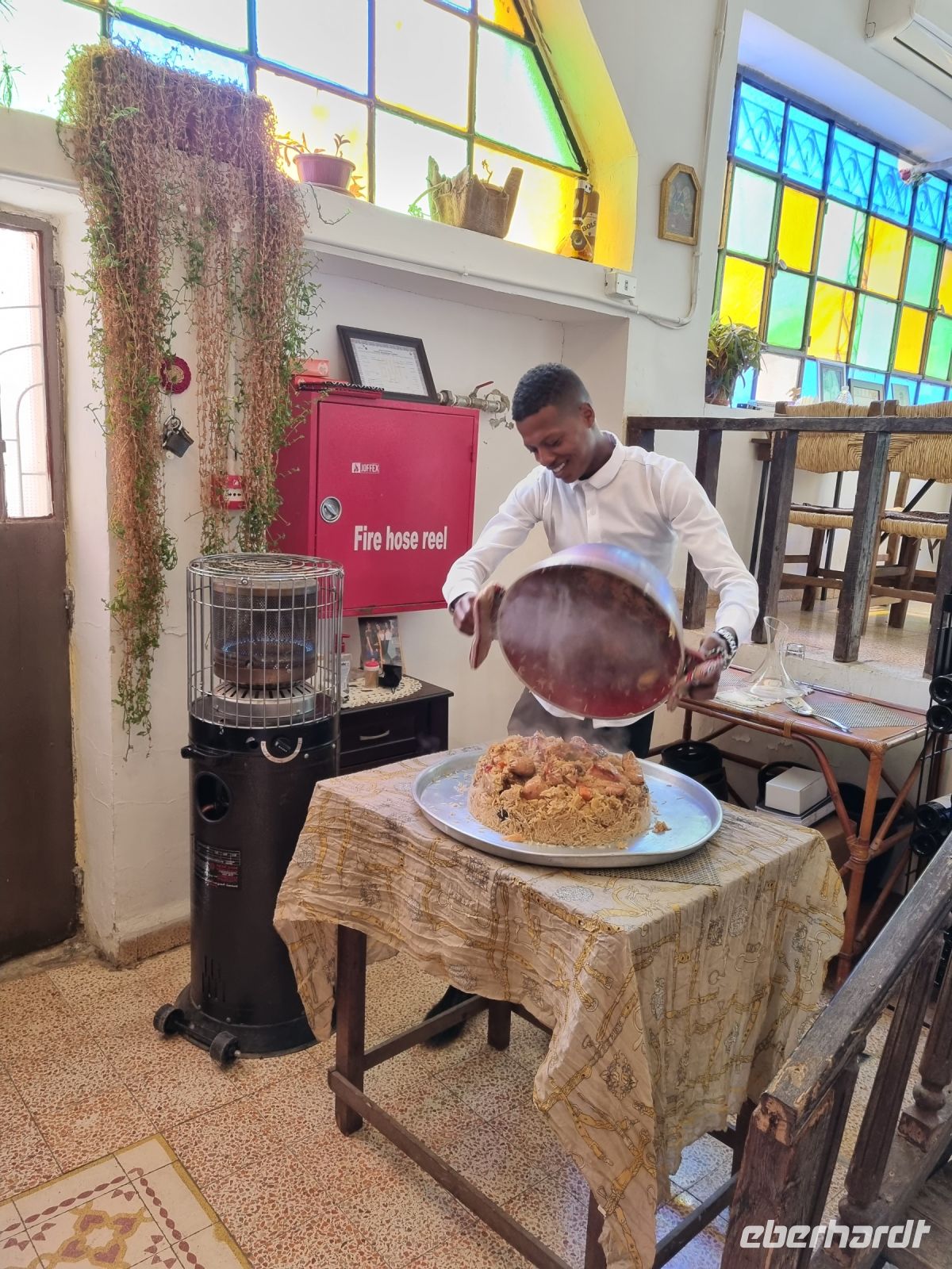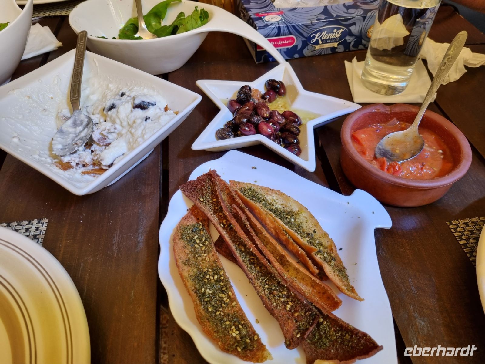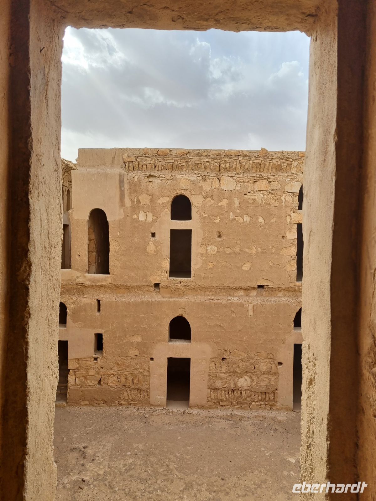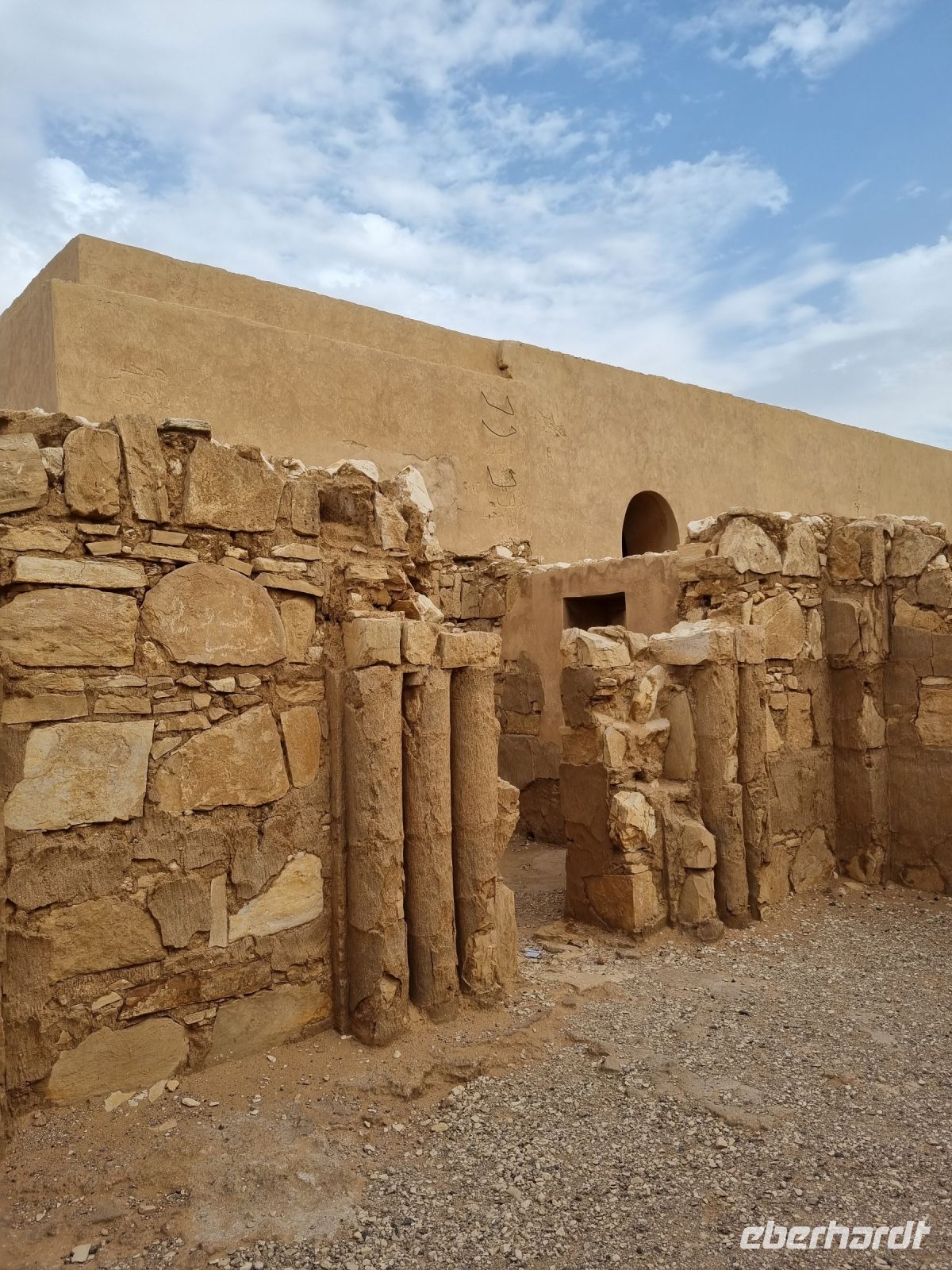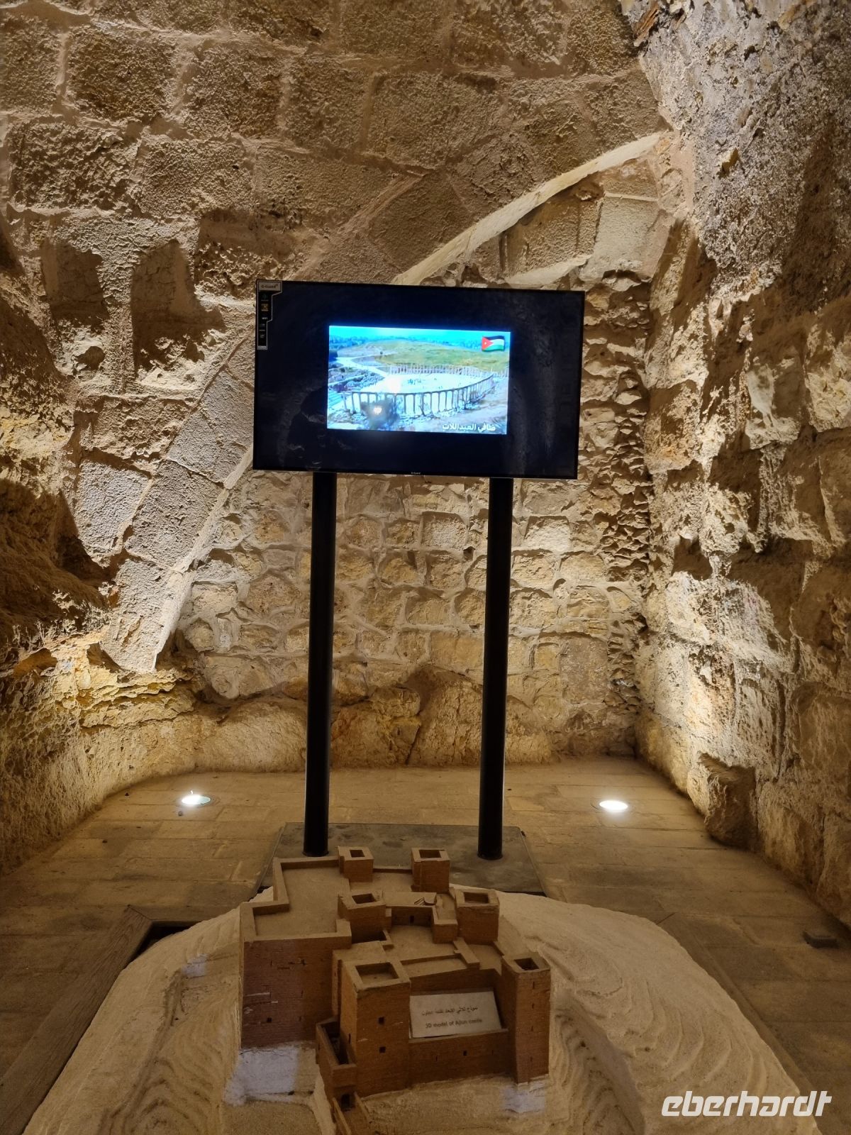 Nach einem reichhaltigen Frühstück begannen wir unsere Entdeckungstour durch Amman, der Hauptstadt des haschemitischen Königreichs. Auf dem ersten Blick wirkte die Stadt sehr einheitlich mit seinen Häusern aus weißem Kalkstein, die sich immerhin über mehrere Hügel erstrecken. Die Stadt erschien uns riesig und nicht endend, aber schließlich zählt der Großraum Amman mittlerweile über 4 Millionen Einwohner mit einer steigenden Tendenz... Dieser Ort steckt zudem voller Geschichte, denn immerhin wurde die jordanische Hauptstadt bereits vor 9.000 Jahren erwähnt. Zuerst durchfahren wir den neuen Teil Ammans, um danach die Zitadelle zu besuchen. Von dort oben hatten wir eine grandiose Aussicht über die Stadt und das aus griechischer Zeit stammende Theater. Mahmoud erklärte uns hier eine Menge zur Geschichte und zudem besuchten wir auch noch das interessante Archäologische Museum mit verschiedenen Funden aus Jordanien. Schließlich gab es hier auch 6.500 Jahre alte menschliche Darstellungen aus Ton zu bestaunen - echt beeindruckend! In diesem Zusammenhang erfuhren wir auch, dass die heutige Stadt Amman die erste auf der Welt war, welche den Namen Philadelphia trug. Aber es war auch die Hauptstadt der Ammoniter, deren alter Name Ammon hieß, von dem sich wiederum Amman ableitet. Voller erster interessanter Eindrücke führte uns unsere heutige Route anschließend in östliche Richtung und zwar in die Wüste, um die omaijadischen Wüstenschlösser zu besichtigen. Zuerst besuchten wir das Wüstenschloss Qasr al-Azraq, welches komplett aus dunklem Basalt errichtet wurde. Im Winter 1917/1918 überwinterte sogar Lawrence von Arabien hier und seine Schildwachen schlossen jeden Abend die drei Tonnen schwere, heute immer noch vorhandene, Tür aus einer Granitplatte ab. Kurze Zeit später wurde durch ein Erdbeben jedoch ein Großteil der Anlage schwer in Mitleidenschaft gezogen. Nach dieser Besichtigung legten wir eine Mittagspause bei einer eher modernen Drusenfamilie in Al Azraq ein. Wir genossen ein vorzügliches Essen, bestehend aus diversen Vorspeisen und dem Nationalgericht Jordaniens, dem "Maklube". Hierbei handelt es sich um ein köstliches Reisegericht mit verschiedenem Gemüse und zartem Hähnchen. Alle Zutaten werden in einem großen Topf gekocht und dann umgestülpt serviert. Es schmeckte hervorragend! Gut gestärkt gelangten wir zum nächsten Wüstenschloss, was wohl eher einem "Schlösschen" glich. Das recht gut erhaltene Qasr Amra war einst das Vergnügungs- und Badeschloss der jordanischen Kalifen und beeindruckt besonders durch seine zahlreichen Fresken bzw. Wandmalereien, die u. a. halbnackte Frauen darstellten. Im Islam ist es allerdings nicht gestattet, Menschen abzubilden und so kann man daraus schließen, dass die Arbeiter, die dieses Schlösschen bauten und gestalteten, keine Araber, sondern vermutlich Griechen, waren. Dem damaligen Besitzer hat es aber wohl gefallen und er hat es sich extra als Lustschlösschen bauen lassen. Heute gehört das im 8. Jahrhundert errichtete Schlösschen immerhin zum UNESCO-Weltkulturerbe. Abschließend besichtigten wir noch ein nur wenige Minuten entferntes drittes Wüstenschloss, Qasr al-Kharana. Es handelt sich hierbei um ein trutzig in der Landschaft stehendes beeindruckendes Bauwerk, welches vor allem durch seine Größe besticht. Mahmoud erklärte uns, dass es sich wohl um eine Karawanserei gehandelt hat. Im Innenhof befand sich eine riesige Zisterne zur Versorgung der Kamele mit Wasser und im Erdgeschoss des Gebäudes befanden sich Stallungen und Lagerräume. Man kann auch recht eindeutig nachweisen, aus welcher Zeit die Anlage stammt, denn ein Bewohner hat am 24.11.710 dort übernachtet und ein Graffiti hinterlassen. Zurück in Amman. lassen wir bei einem wiederum sehr schmackhaften gemeinsamen Abendessen die Erlebnisse des Tages Revue passieren.