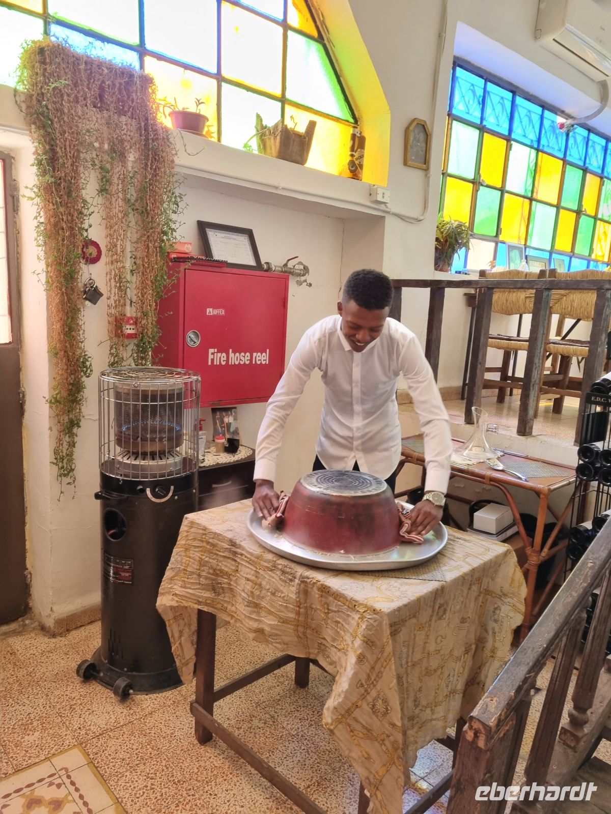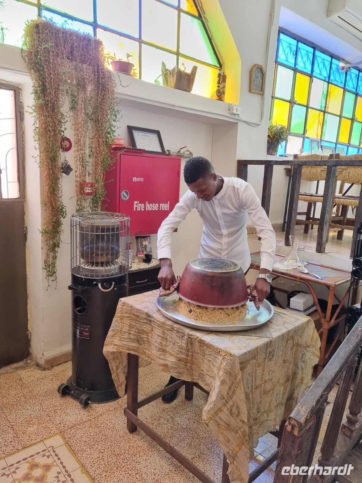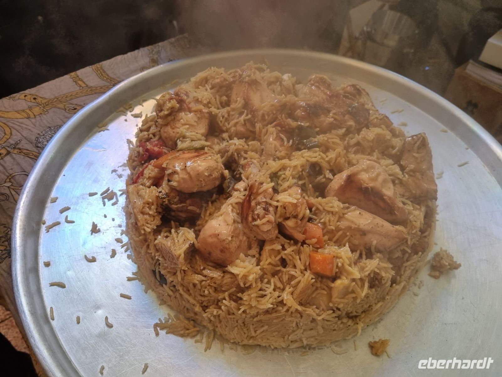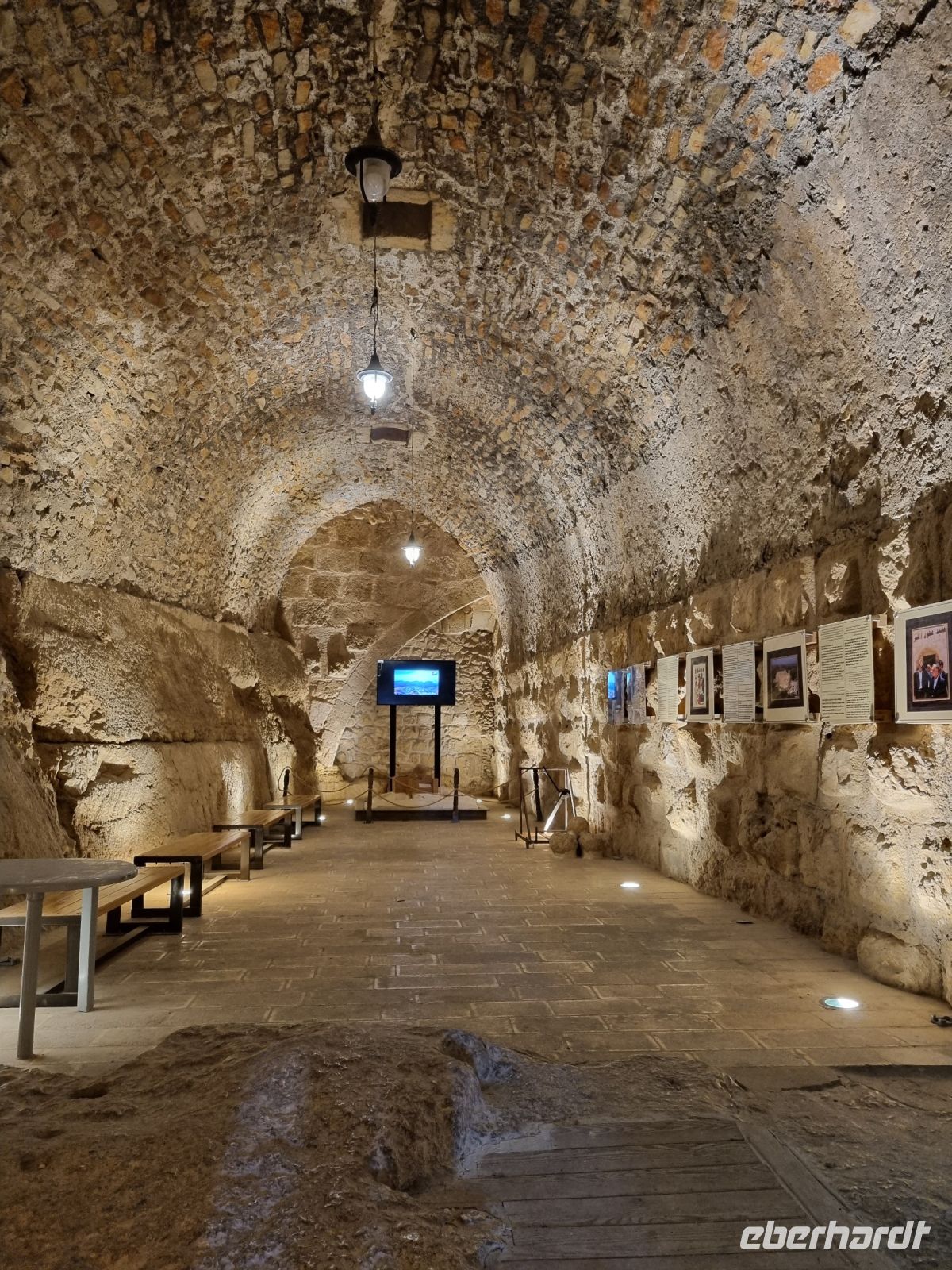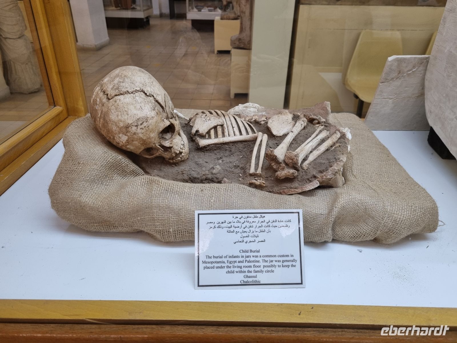 Nach einem reichhaltigen Frühstück begannen wir unsere Entdeckungstour durch Amman, der Hauptstadt des haschemitischen Königreichs. Auf dem ersten Blick wirkte die Stadt sehr einheitlich mit seinen Häusern aus weißem Kalkstein, die sich immerhin über mehrere Hügel erstrecken. Die Stadt erschien uns riesig und nicht endend, aber schließlich zählt der Großraum Amman mittlerweile über 4 Millionen Einwohner mit einer steigenden Tendenz... Dieser Ort steckt zudem voller Geschichte, denn immerhin wurde die jordanische Hauptstadt bereits vor 9.000 Jahren erwähnt. Zuerst durchfahren wir den neuen Teil Ammans, um danach die Zitadelle zu besuchen. Von dort oben hatten wir eine grandiose Aussicht über die Stadt und das aus griechischer Zeit stammende Theater. Mahmoud erklärte uns hier eine Menge zur Geschichte und zudem besuchten wir auch noch das interessante Archäologische Museum mit verschiedenen Funden aus Jordanien. Schließlich gab es hier auch 6.500 Jahre alte menschliche Darstellungen aus Ton zu bestaunen - echt beeindruckend! In diesem Zusammenhang erfuhren wir auch, dass die heutige Stadt Amman die erste auf der Welt war, welche den Namen Philadelphia trug. Aber es war auch die Hauptstadt der Ammoniter, deren alter Name Ammon hieß, von dem sich wiederum Amman ableitet. Voller erster interessanter Eindrücke führte uns unsere heutige Route anschließend in östliche Richtung und zwar in die Wüste, um die omaijadischen Wüstenschlösser zu besichtigen. Zuerst besuchten wir das Wüstenschloss Qasr al-Azraq, welches komplett aus dunklem Basalt errichtet wurde. Im Winter 1917/1918 überwinterte sogar Lawrence von Arabien hier und seine Schildwachen schlossen jeden Abend die drei Tonnen schwere, heute immer noch vorhandene, Tür aus einer Granitplatte ab. Kurze Zeit später wurde durch ein Erdbeben jedoch ein Großteil der Anlage schwer in Mitleidenschaft gezogen. Nach dieser Besichtigung legten wir eine Mittagspause bei einer eher modernen Drusenfamilie in Al Azraq ein. Wir genossen ein vorzügliches Essen, bestehend aus diversen Vorspeisen und dem Nationalgericht Jordaniens, dem "Maklube". Hierbei handelt es sich um ein köstliches Reisegericht mit verschiedenem Gemüse und zartem Hähnchen. Alle Zutaten werden in einem großen Topf gekocht und dann umgestülpt serviert. Es schmeckte hervorragend! Gut gestärkt gelangten wir zum nächsten Wüstenschloss, was wohl eher einem "Schlösschen" glich. Das recht gut erhaltene Qasr Amra war einst das Vergnügungs- und Badeschloss der jordanischen Kalifen und beeindruckt besonders durch seine zahlreichen Fresken bzw. Wandmalereien, die u. a. halbnackte Frauen darstellten. Im Islam ist es allerdings nicht gestattet, Menschen abzubilden und so kann man daraus schließen, dass die Arbeiter, die dieses Schlösschen bauten und gestalteten, keine Araber, sondern vermutlich Griechen, waren. Dem damaligen Besitzer hat es aber wohl gefallen und er hat es sich extra als Lustschlösschen bauen lassen. Heute gehört das im 8. Jahrhundert errichtete Schlösschen immerhin zum UNESCO-Weltkulturerbe. Abschließend besichtigten wir noch ein nur wenige Minuten entferntes drittes Wüstenschloss, Qasr al-Kharana. Es handelt sich hierbei um ein trutzig in der Landschaft stehendes beeindruckendes Bauwerk, welches vor allem durch seine Größe besticht. Mahmoud erklärte uns, dass es sich wohl um eine Karawanserei gehandelt hat. Im Innenhof befand sich eine riesige Zisterne zur Versorgung der Kamele mit Wasser und im Erdgeschoss des Gebäudes befanden sich Stallungen und Lagerräume. Man kann auch recht eindeutig nachweisen, aus welcher Zeit die Anlage stammt, denn ein Bewohner hat am 24.11.710 dort übernachtet und ein Graffiti hinterlassen. Zurück in Amman. lassen wir bei einem wiederum sehr schmackhaften gemeinsamen Abendessen die Erlebnisse des Tages Revue passieren.