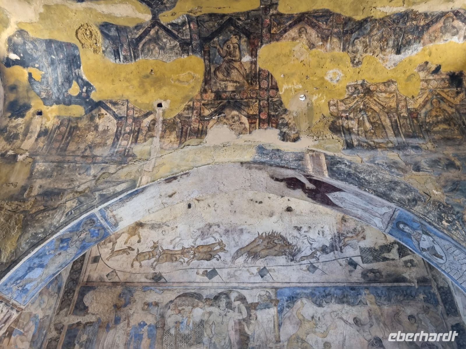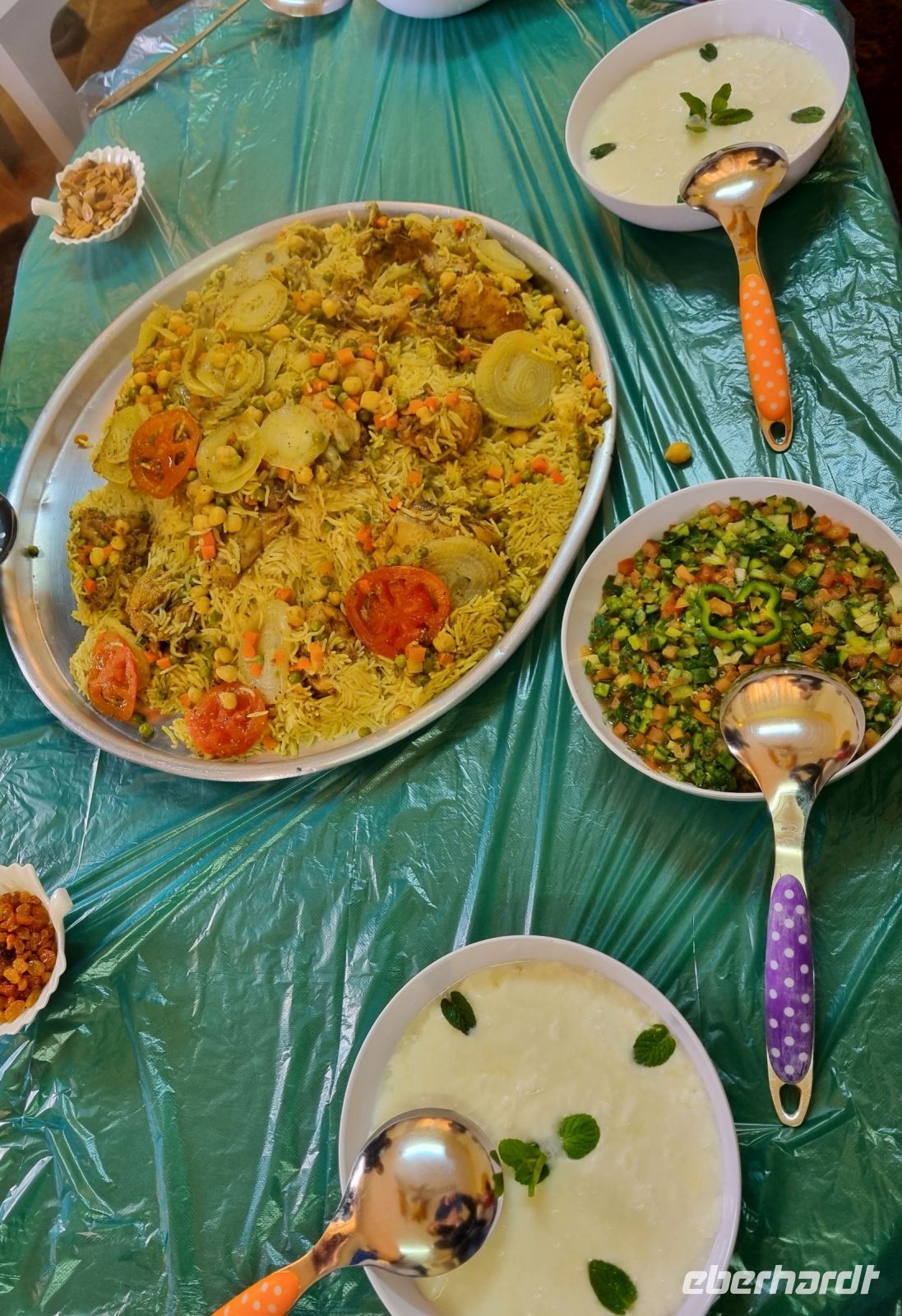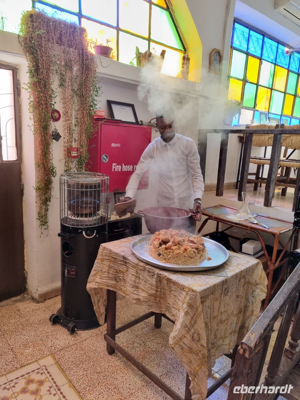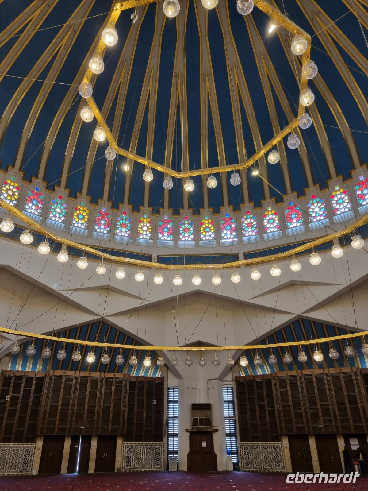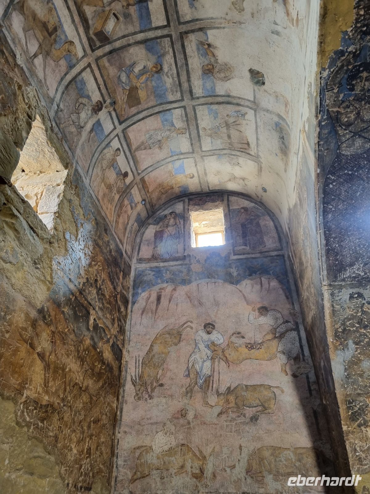 Nach einem reichhaltigen Frühstück begannen wir unsere Entdeckungstour durch Amman, der Hauptstadt des haschemitischen Königreichs. Auf dem ersten Blick wirkte die Stadt sehr einheitlich mit seinen Häusern aus weißem Kalkstein, die sich immerhin über mehrere Hügel erstrecken. Die Stadt erschien uns riesig und nicht endend, aber schließlich zählt der Großraum Amman mittlerweile über 4 Millionen Einwohner mit einer steigenden Tendenz... Dieser Ort steckt zudem voller Geschichte, denn immerhin wurde die jordanische Hauptstadt bereits vor 9.000 Jahren erwähnt. Zuerst durchfahren wir den neuen Teil Ammans, um danach die Zitadelle zu besuchen. Von dort oben hatten wir eine grandiose Aussicht über die Stadt und das aus griechischer Zeit stammende Theater. Mahmoud erklärte uns hier eine Menge zur Geschichte und zudem besuchten wir auch noch das interessante Archäologische Museum mit verschiedenen Funden aus Jordanien. Schließlich gab es hier auch 6.500 Jahre alte menschliche Darstellungen aus Ton zu bestaunen - echt beeindruckend! In diesem Zusammenhang erfuhren wir auch, dass die heutige Stadt Amman die erste auf der Welt war, welche den Namen Philadelphia trug. Aber es war auch die Hauptstadt der Ammoniter, deren alter Name Ammon hieß, von dem sich wiederum Amman ableitet. Voller erster interessanter Eindrücke führte uns unsere heutige Route anschließend in östliche Richtung und zwar in die Wüste, um die omaijadischen Wüstenschlösser zu besichtigen. Zuerst besuchten wir das Wüstenschloss Qasr al-Azraq, welches komplett aus dunklem Basalt errichtet wurde. Im Winter 1917/1918 überwinterte sogar Lawrence von Arabien hier und seine Schildwachen schlossen jeden Abend die drei Tonnen schwere, heute immer noch vorhandene, Tür aus einer Granitplatte ab. Kurze Zeit später wurde durch ein Erdbeben jedoch ein Großteil der Anlage schwer in Mitleidenschaft gezogen. Nach dieser Besichtigung legten wir eine Mittagspause bei einer eher modernen Drusenfamilie in Al Azraq ein. Wir genossen ein vorzügliches Essen, bestehend aus diversen Vorspeisen und dem Nationalgericht Jordaniens, dem "Maklube". Hierbei handelt es sich um ein köstliches Reisegericht mit verschiedenem Gemüse und zartem Hähnchen. Alle Zutaten werden in einem großen Topf gekocht und dann umgestülpt serviert. Es schmeckte hervorragend! Gut gestärkt gelangten wir zum nächsten Wüstenschloss, was wohl eher einem "Schlösschen" glich. Das recht gut erhaltene Qasr Amra war einst das Vergnügungs- und Badeschloss der jordanischen Kalifen und beeindruckt besonders durch seine zahlreichen Fresken bzw. Wandmalereien, die u. a. halbnackte Frauen darstellten. Im Islam ist es allerdings nicht gestattet, Menschen abzubilden und so kann man daraus schließen, dass die Arbeiter, die dieses Schlösschen bauten und gestalteten, keine Araber, sondern vermutlich Griechen, waren. Dem damaligen Besitzer hat es aber wohl gefallen und er hat es sich extra als Lustschlösschen bauen lassen. Heute gehört das im 8. Jahrhundert errichtete Schlösschen immerhin zum UNESCO-Weltkulturerbe. Abschließend besichtigten wir noch ein nur wenige Minuten entferntes drittes Wüstenschloss, Qasr al-Kharana. Es handelt sich hierbei um ein trutzig in der Landschaft stehendes beeindruckendes Bauwerk, welches vor allem durch seine Größe besticht. Mahmoud erklärte uns, dass es sich wohl um eine Karawanserei gehandelt hat. Im Innenhof befand sich eine riesige Zisterne zur Versorgung der Kamele mit Wasser und im Erdgeschoss des Gebäudes befanden sich Stallungen und Lagerräume. Man kann auch recht eindeutig nachweisen, aus welcher Zeit die Anlage stammt, denn ein Bewohner hat am 24.11.710 dort übernachtet und ein Graffiti hinterlassen. Zurück in Amman. lassen wir bei einem wiederum sehr schmackhaften gemeinsamen Abendessen die Erlebnisse des Tages Revue passieren.