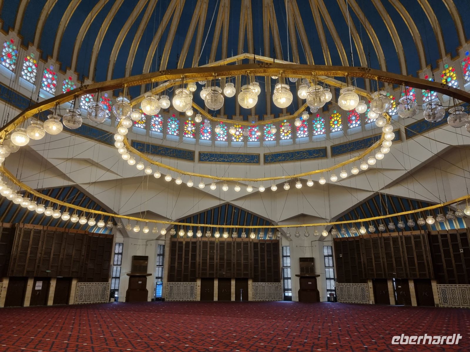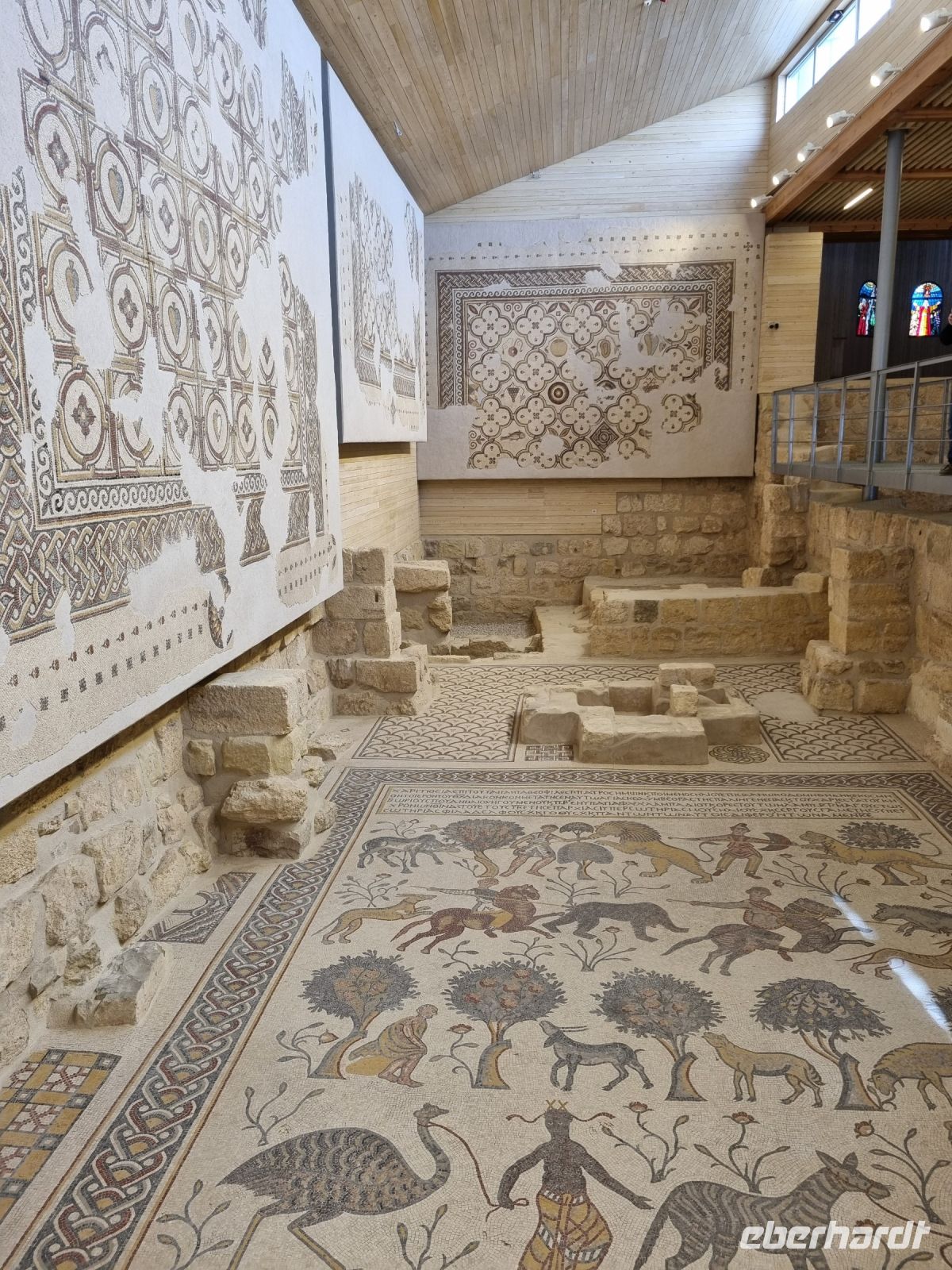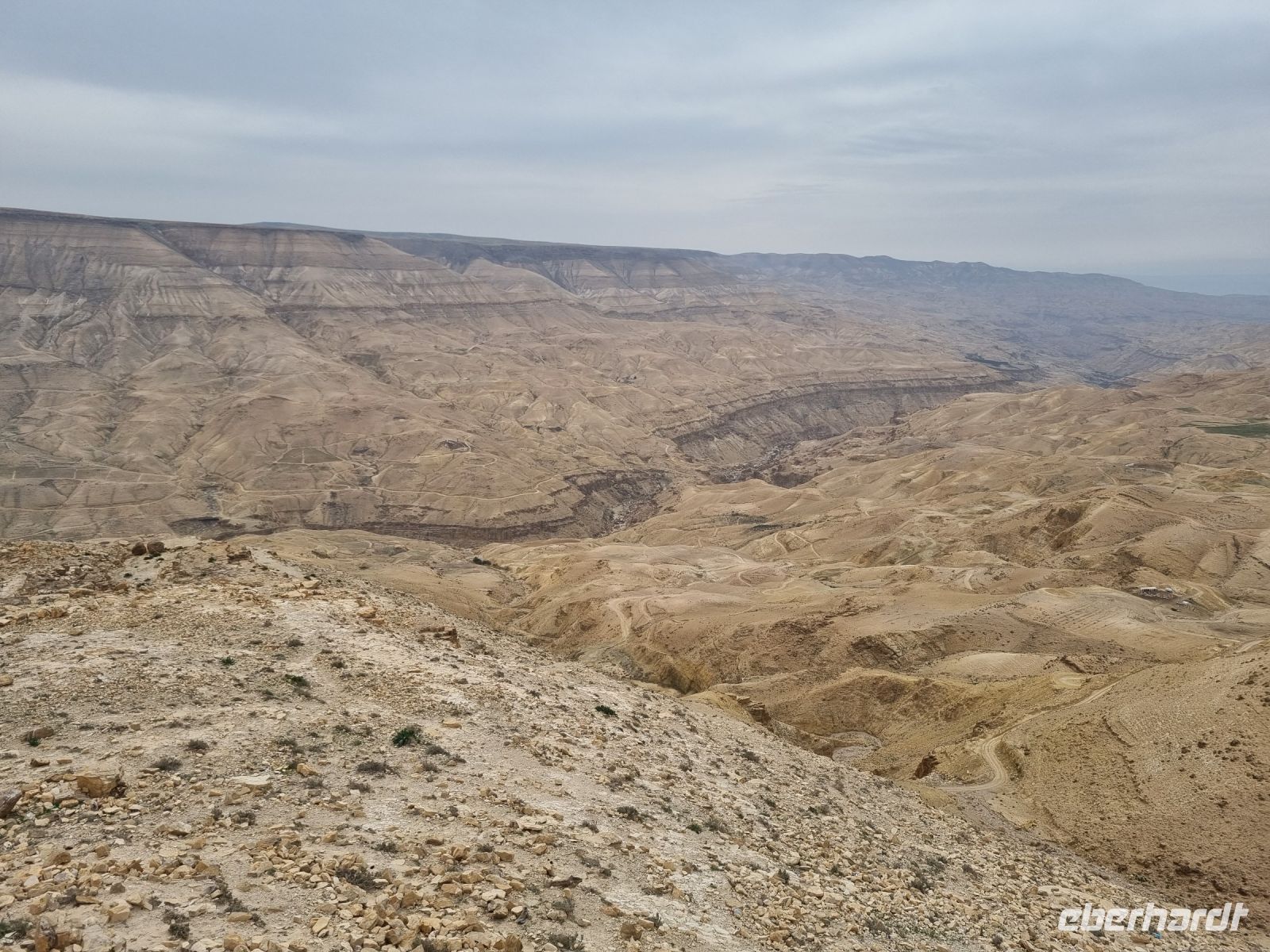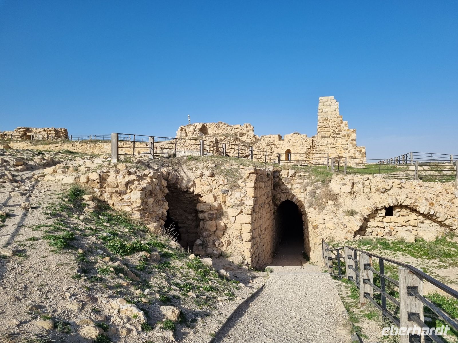 Der heutige Tag stand im Zeichen unserer Frauen, denn schließlich war es der Internationale Frauentag. Alle Damen unserer Gruppe erhielten im Namen von Eberhardt TRAVEL ein kleines Geschenk in Form einer kosmetischen Gesichtsmaske mit den heilenden Kräften des Toten Meeres. Von unserem Hotel in Amman mussten wir uns nun verabschieden, aber bevor wir die Stadt Amman verließen, legten wir noch einen Stopp an der König Abdullah-Moschee oder auch sogenannten "Blauen Moschee" ein. Diese wurde im Jahre 1988 im Auftrag von König Hussein fertiggestellt und ist die größte und auch schönste Moschee des Landes. Wir Frauen mussten ein schwarzes Gewand anziehen und die Männer blieben wie sie sind, nur kurze Hosen waren verboten. Staunend betraten wir den riesigen Gebetsraum und Mahmoud erklärte uns hier vor Ort die Grundlagen des islamischen Glaubens bzw. sprach natürlich auch über den Koran. Die Frauen unserer Gruppe besuchen dann auch noch den Gebetsraum für Frauen, die Männer durften da nicht mit hinein - alles strikt getrennt! Nach diesem kleinen Islam-Exkurs verabschiedeten wir uns von Amman und setzten unsere Fahrt in Richtung Süden fort. Wir fuhren zum Berg Nebo - hier soll Moses das gelobte Land erblickt haben! Betreten konnte er es allerdings nicht mehr, da er auf dem Berg starb. Allerdings wurde sein Grab bis heute nicht gefunden. Wir bestaunten die berühmten Mosaike der Kirche und erfreuten uns an grandiosen Ausblicken hinunter ins Jordan-Tal. Nach nur wenigen Kilometern erreichten wir die Stadt Madaba, das Zentrum der jordanischen Mosaikkunst. Das berühmteste Mosaik besichtigten wir in der Kirche St. Georg, einer dreischiffigen griechisch-orthodoxe Basilika. Das Mosaik stellt eine Landkarte von Palästina dar und stammt vermutlich aus der zweiten Hälfte des 6. Jahrhunderts. Anschließend sind wir zu einem Mittagessen eingeladen, wo es wiederum unzählige Köstlichkeiten gibt. Nach einer weiteren ca. 2-stündigen Busfahrt erreichten wir die Burg Kerak. Über der Altstadt befindet sich die teilweise restaurierte Kreuzritter-Burg, die im 12. Jahrhundert errichtet wurde, um den Handels- und Pilgerverkehr zwischen Damaskus und Mekka zu kontrollieren. Die Überfälle des Burgherrn auf die Karawanen und die Entführung einer seiner Schwestern erregten den Zorn Saladins und er ließ die Burg mehrfach belagern. Schließlich fiel die Burg im Jahre 1188 nach 8-monatiger Belagerung und Saladin enthauptete den Burgherrn eigenhändig. Mit einer kurzen Pause unterwegs fuhren wir dann nach Petra weiter, wo wir die nächsten drei Nächte verbrachten.