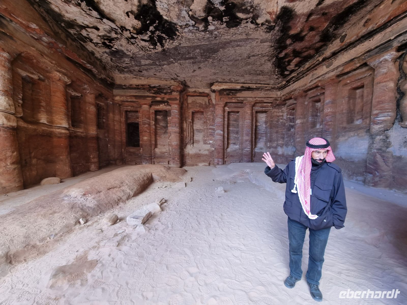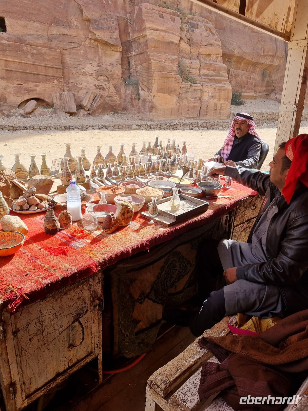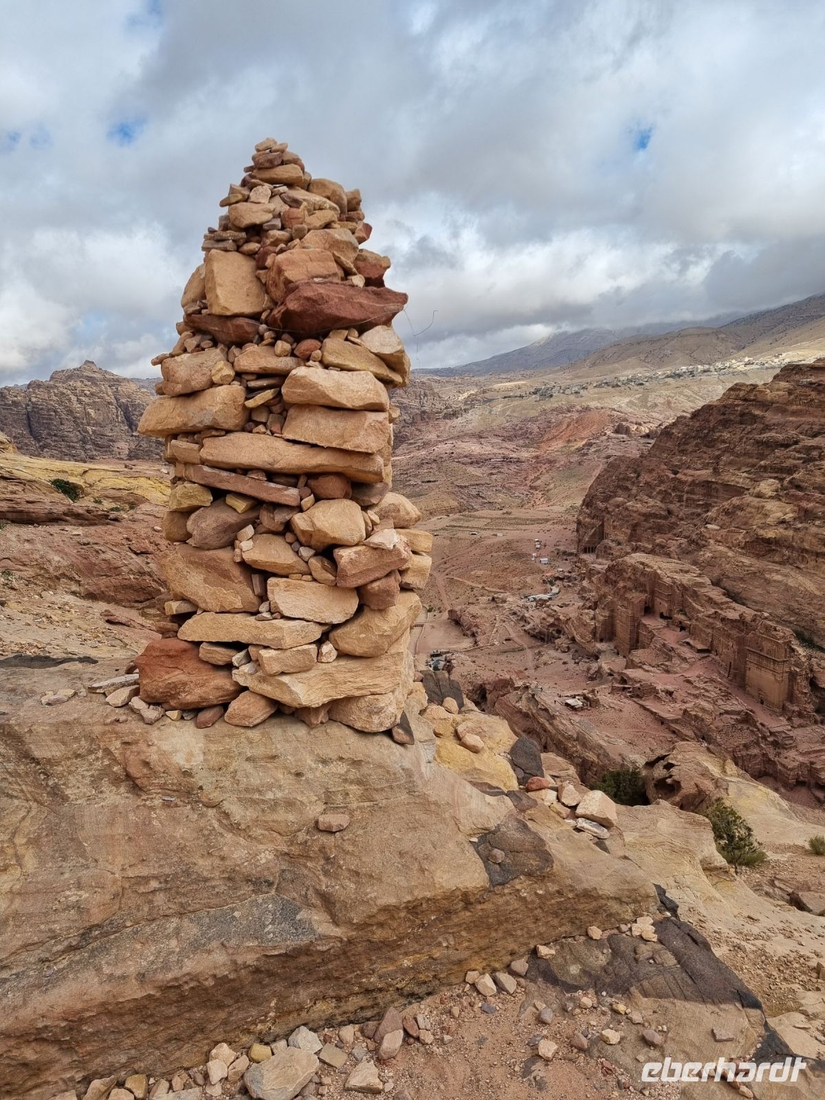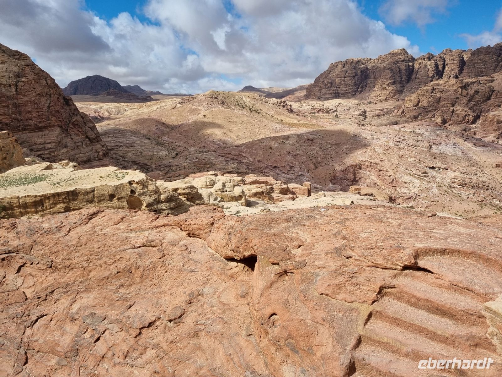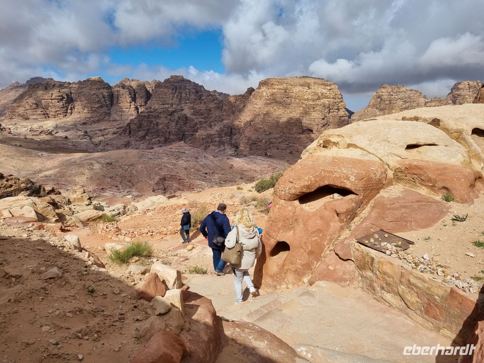 Am heutigen Tag hatten wir die Wahl - entweder auf eigene Faust die Felsenstadt Petra erkunden oder an einer geführten Wandertour mit Mahmoud und mir teilnehmen... Die meisten unserer Gäste entschieden sich für die gemeinsame ca. 10 Kilometer lange Wanderung durch die Felsenstadt. Wir starten erneut durch den Siq bis zum Schatzhaus und später in Richtung Opferplatz. Es waren zwar sehr viele Stufen, aber unsere Anstrengungen wurden mit überaus herrlichen Ausblicken über die Stadt belohnt. Wir stiegen über den Wadi Farash-Trail ab und kamen vorbei an der Löwenkaskade, dem Gartentempel mit dem Bunten Saal und auch am Grab des römischen Soldaten vorbei, bis wir schließlich Nahe des Theaters wieder die Hauptstraße erreichten. Die Tour endete am frühen Nachmittag mit einer Teepause. Den Rest des Tages konnten wir ganz individuell gestalten und am Abend trafen wir uns alle zu einem gemeinsamen Abendessen wieder, um uns über die unterschiedlichen Erlebnisse des Tages auszutauschen.