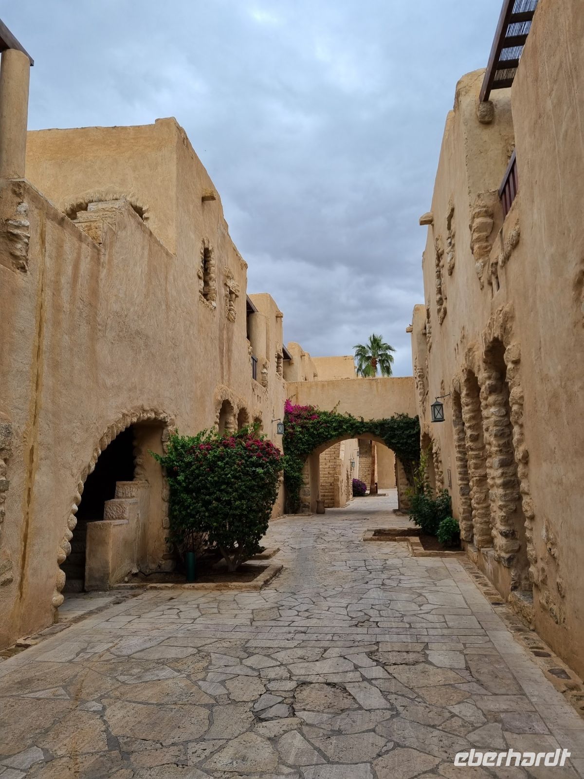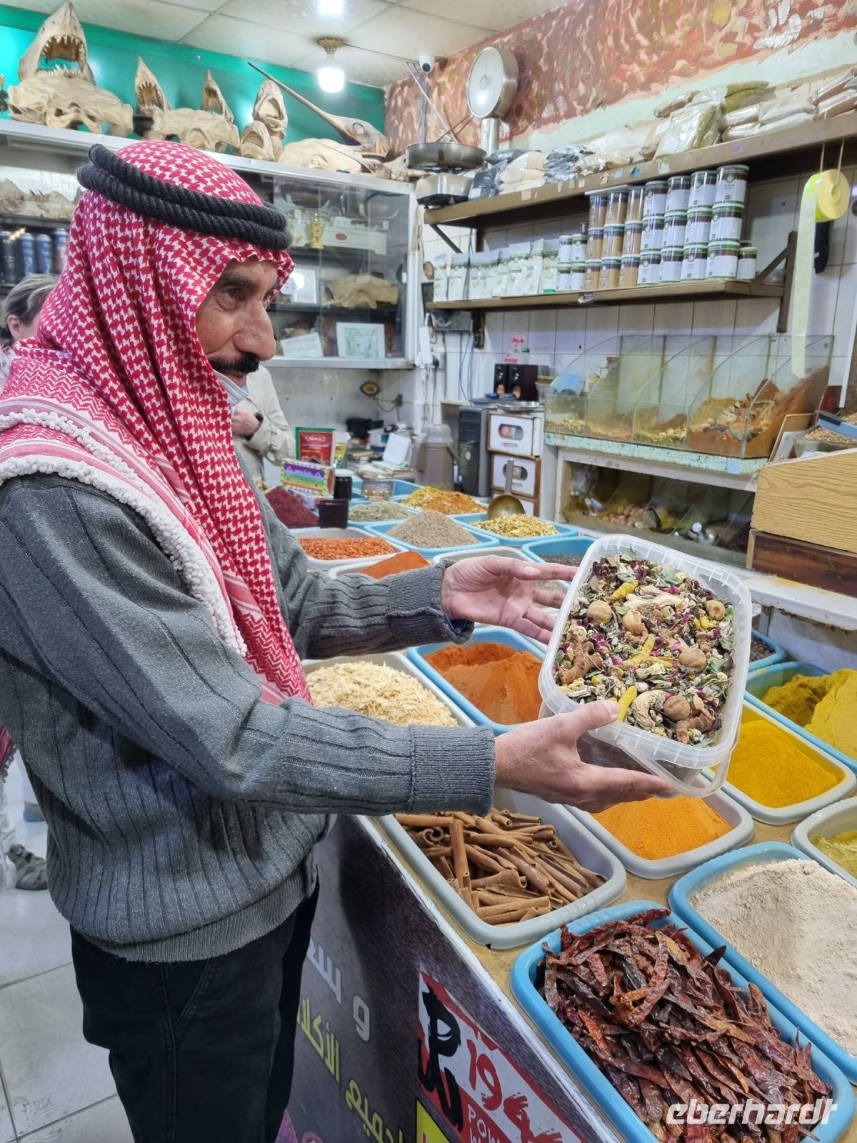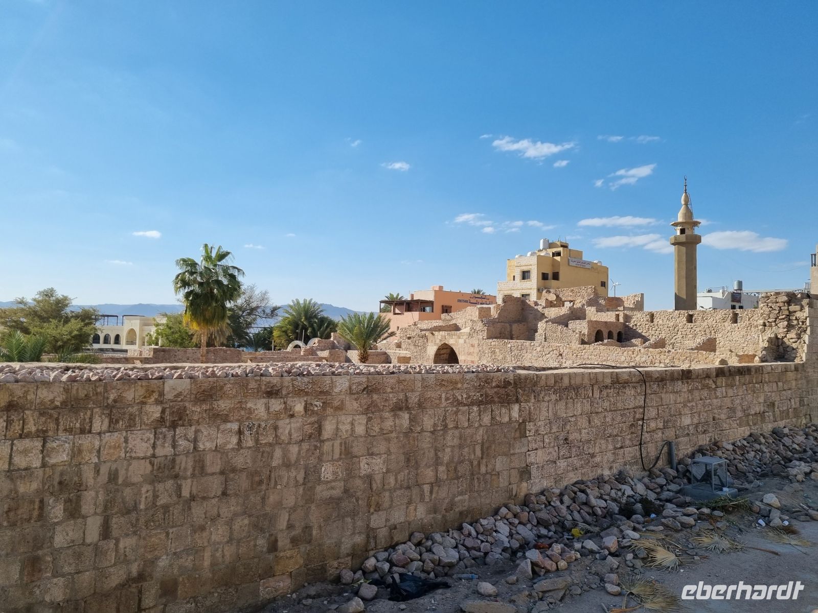 Mit vielen fantastischen Eindrücken der Felsenstadt Petra im Gepäck machten wir uns weiter gen Süden auf - unser heutiges Ziel hieß Aqaba am Roten Meer. Unterwegs steht allerdings noch ein Naturwunder namens Wadi Rum auf unserem Programm. Hierbei handelt es sich weniger um ein einzelnes Wadi, sondern um eine ganze Landschaft, welche durch Erosion geformt wurde. Archäologische Funde bewiesen, dass die Gegend nicht immer Wüste war, sondern in der Steinzeit hier sogar Ackerbau und Viehzucht betrieben wurde. Das zeigt sich vor allem im Siq al Khazali, einer engen Schlucht als Sackgasse, in der wir uralte Steinritzungen von Menschen, Tieren und noch nicht entschlüsselter Schriftzeichen bestaunen konnten. Doch erst einmal bestiegen wir die offenen Ladeflächen der Toyota-Vans, welche uns zunächst zur Lawrence-Quelle brachten, wo Lawrence von Arabien gebadet hat. Er fand diese Gegend dermaßen faszinierend, dass er sie in seinem Roman „Die sieben Säulen der Weisheit" unsterblich gemacht hat. Wem es übrigens auf der offenen Ladefläche durch den Fahrtwind zwischenzeitlich zu kalt wurde, der konnte auch im Innenraum der Fahrzeuge Platz nehmen. Nach dem Besuch der schon erwähnten al Khazali-Schlucht wurden wir in einem Beduinenzelt zum Tee eingeladen. Hier duftete es gut nach Weihrauch, den man auch käuflich erwerben konnte. Zu guter Letzt begaben wir uns noch zur Steinernen Brücke, wo Wind und Wetter einen Steinbogen geschaffen haben, über den man auch hinüberlaufen kann, sofern man schwindelfrei ist. Eine kleine Mittagspause bzw. noch ein letztes Bild von der Felsformation der "7 Säulen der Weisheit" und schon fuhren wir weiter nach Aqaba, dem südlichsten Punkt unserer Reise. Am Nachmittag erreichten wir die Stadt und bezogen unser Hotel "Mövenpick Resort". Nach der Erkundung der wunderschönen Anlage nahm so manch ein Reisegast ein Bad im Roten Meer. Unser Abendessen nahmen wir später im Restaurant "Suzana" ein, wo wir erneut mit leckeren arabischen Köstlichkeiten kulinarisch verwöhnt wurden. Abschließend unternahmen wir einen Verdauungsspaziergang zum unweit entfernten Souk, wo wir u. a. die verschiedensten orientalischen Gewürze näher kennenlernen und ggfs. auch letzte Mitbringsel erwerben konnten. Dieser abendliche Bummel rundete schließlich den Tag ab.