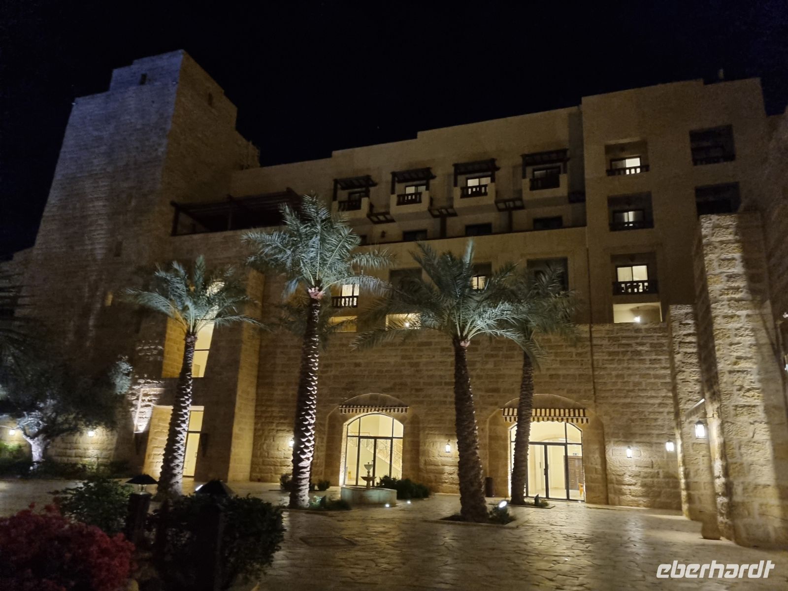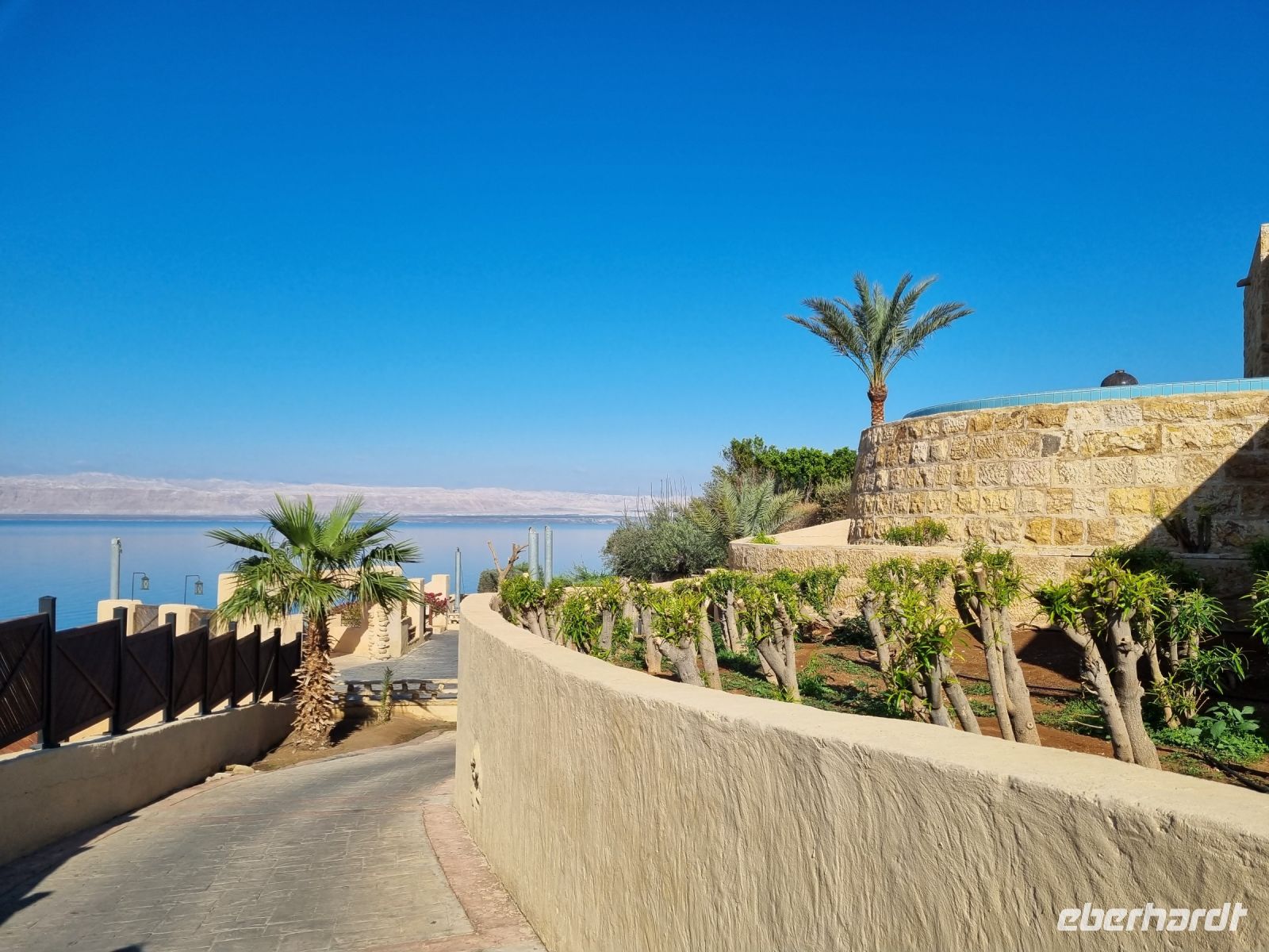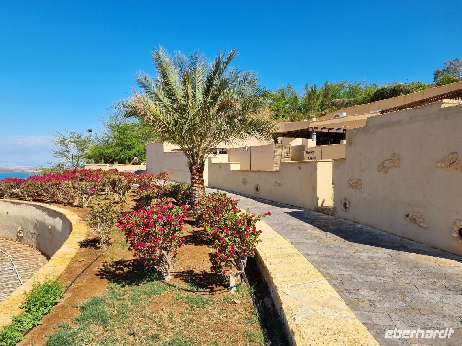 Bereits am Morgen reisen wir in Richtung Norden ab und fahren parallel zur israelischen Grenze zum Toten Meer. Es geht durch das Wadi Aqaba. Hier begegnete uns eine Art Halbwüste, die mit wilden Akazien überwuchert ist. Hin und wieder passierten wir Beduinenzelte, die in einigem Abstand zur Straße errichtet sind. Am späten Vormittag erreichen wir den südlichen Teil des Toten Meeres, welches die Fortsetzung des Ostafrikanischen Grabenbruchs bildet und ist so tief abgesunken ist, dass wir uns plötzlich über 400 Meter unter dem Meeresspiegel wiederfanden. Die Luft hier ist dementsprechend Sauerstoffreich. Gespeist wird es nur vom Wasser des Jordans. Dem wird aber so viel Wasser entnommen, dass er das Meer nicht mehr auffüllen kann und der Wasserspiegel jedes Jahr um ungefähr einen Meter sinkt. Somit steigt aber auch der Salzgehalt immer weiter und liegt derzeit bei 33 Prozent. Das ist dreimal mehr als in allen anderen Meeren und wir erkennen das auch bei einem Fotostopp. Dicke Salzkrusten bilden hier verschiedenfarbig die Uferlandschaft und gegenüber ragt eine Steinsäule einsam in die Luft. Es soll sich hier angeblich um die zur Säule erstarrten "Frau von Lot" handeln. Sie hatte sich entgegen des Verbots umgedreht, um den Untergang von Sodom und Gomorrha zu sehen und bekam so ihre Strafe. In der Bibel erstarrt sie jedoch zur Salzsäule. Unstillbare Neugier hat sich eben noch nie ausgezahlt...! Den Abschluss unseres ausführlichen Reiseprogrammes bildete der Besuch der Taufstelle Jesu. Seit 1994 wurde dort direkt am Jordan ausgegraben und man hat tatsächlich ein Taufbecken gefunden, das die Wirkungsstätte Johannes des Täufers gewesen sein soll. Auch alte Schriftquellen belegen diese Stelle. Drei Kirchen baute man in den folgenden Jahrhunderten daran, die man heute an den Fundamenten wieder erkennen kann. Seit Papst Johannes Paul II. im Jahr 2000 diesen Ort besucht hat, können auch Touristen eine geführte Tour unternehmen. Ein schön angelegter Weg führte uns direkt zum Jordan, der hier die Grenze zu Israel bildet. Auf der anderen Seite weht die Flagge mit dem Davidstern, in Jordanien spricht man allerdings ausschließlich von Palästina. Der Ort hat schon etwas Mystisches und sollte eigentlich eine frohe, friedliche Botschaft ausstrahlen. Es ist schon ein Widerspruch, dass dieser Landstrich so unfriedliche Zeiten erlebt. Am frühen Nachmittag checkten wir schließlich in unserem Hotel für die letzten zwei Nächte ein. Nun war es auch an der Zeit, uns von Mahmoud zu verabschieden. Wir dankten ihm für alles, denn er hat uns sein Land mit all seinen Facetten auf eine eindrucksvolle Art und Weise näher gebracht. Den restlichen Nachmittag machten wir uns mit der wunderschönen Hotel-Anlage des "Mövenpick Resort und Spa" vertraut und ein hervorragendes Abendessen krönte auch diesen Tag.