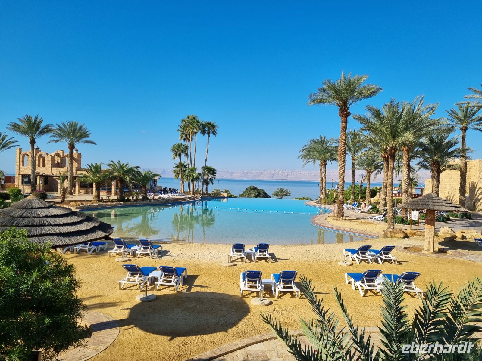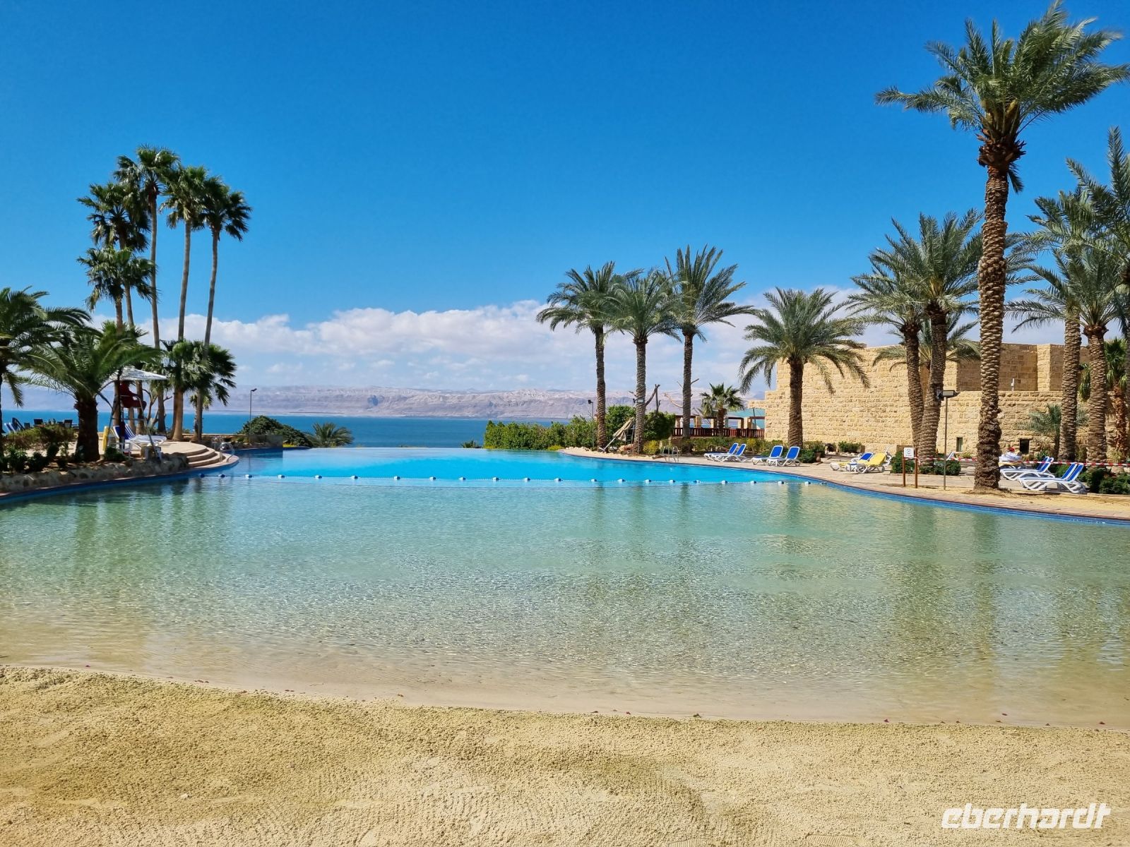 Am letzten Tag unserer ausführlichen Rundreise können wir noch einmal richtig die Seele baumeln und uns im wahrsten Sinne des Wortes auch einfach treiben lassen. Bei diesem hohen Salzgehalt fällt „das Treiben lassen" im Toten Meer leicht. Anschließend gibt es noch eine Schlammpackung und man fühlt sich direkt um die zwanzig Jahre jünger. Unser 5-Sterne-Hotel ließ zudem keine Wünsche offen und auch ein großzügiger Pool-Bereich erwartete uns. Ob ein Bad im warmen Whirlpool oder auch im nur 17 Grad kalten Sommer-Pool - für jeden von uns war etwas dabei. Schließlich war auch der Wettergott auf unserer Seite und wir hatten einen überwiegend sonnigen Tag. Ein schöner Abschluss einer erlebnisreichen Reise!